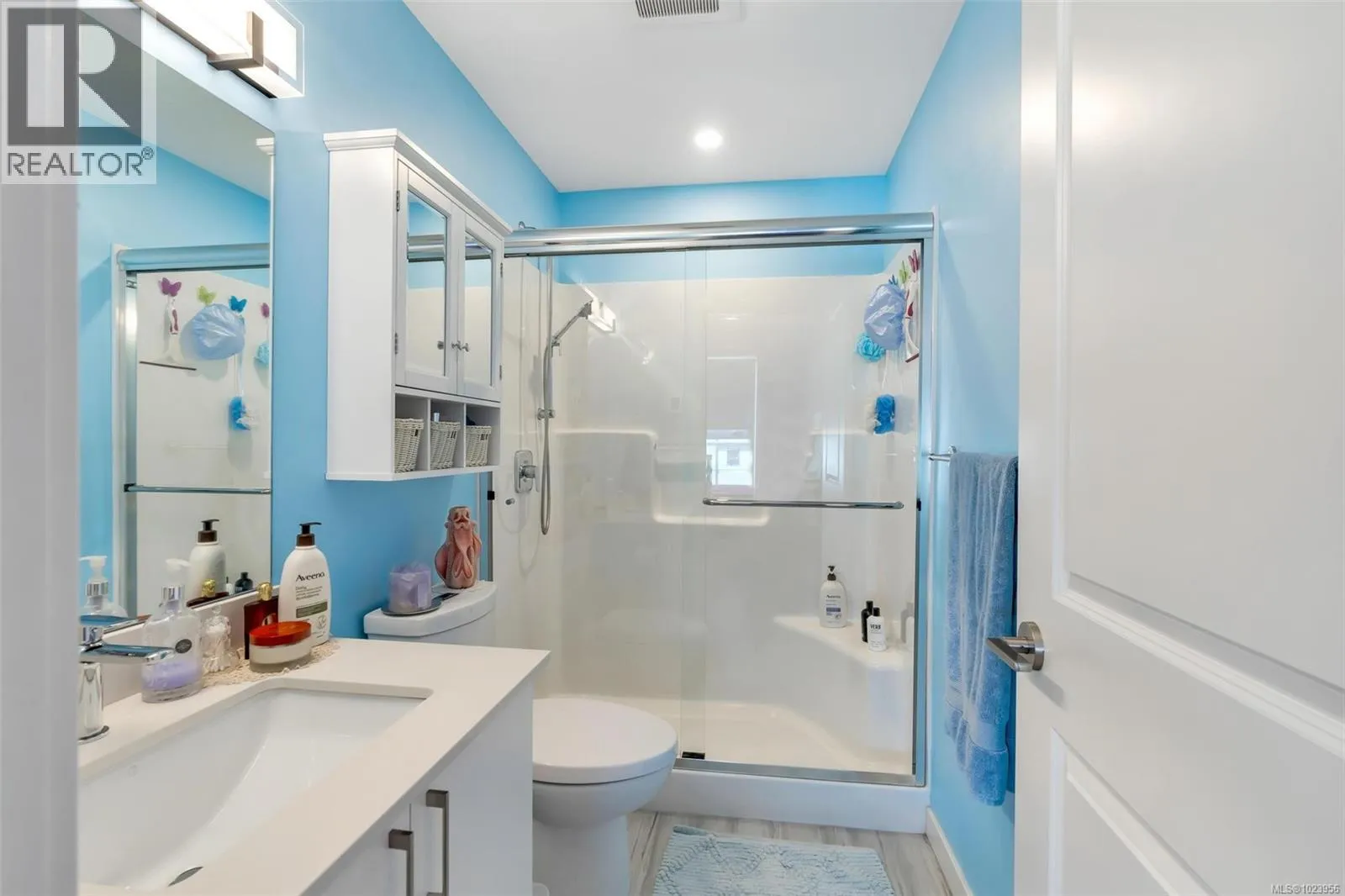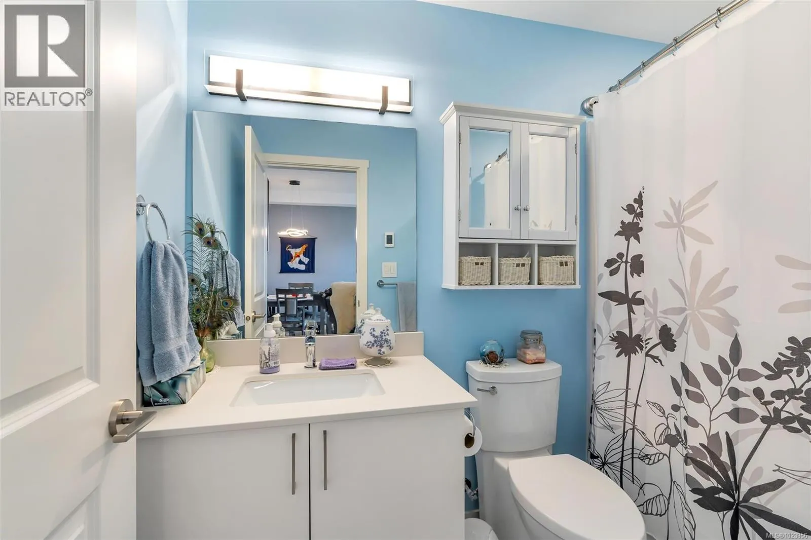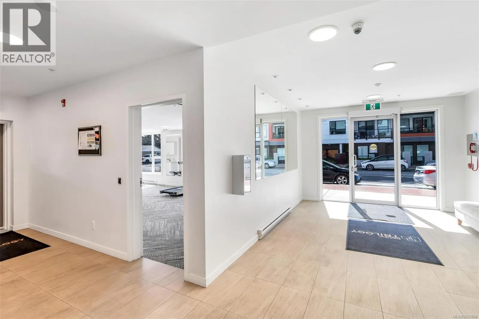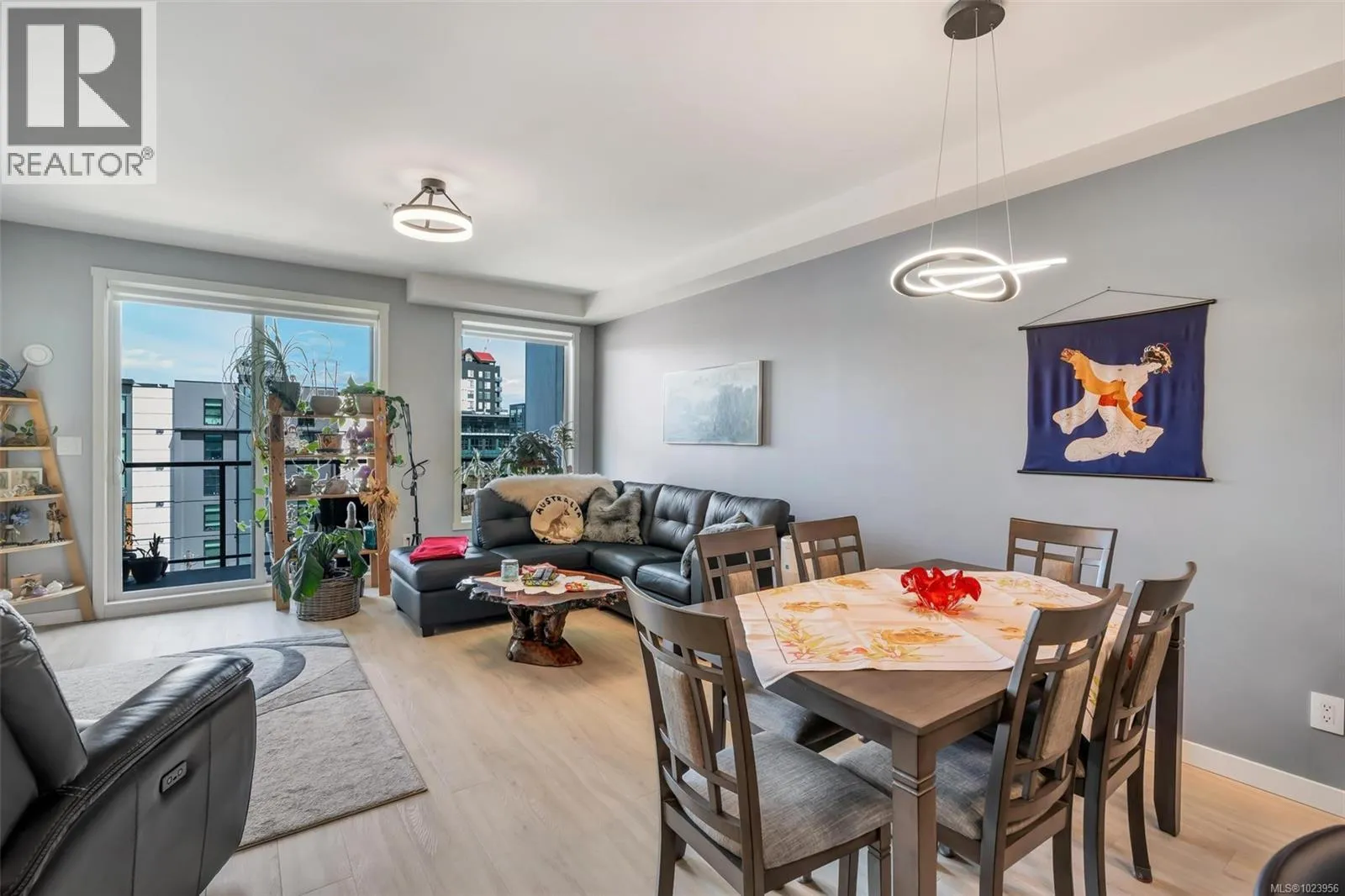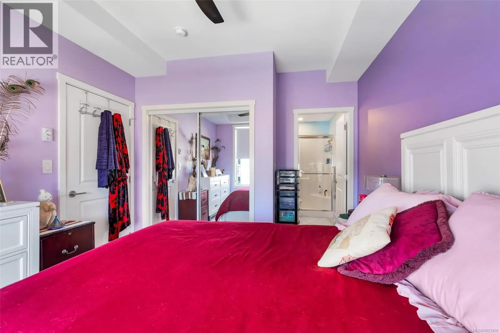 Bright and beautiful 2 bed, 2 bath condo in Pacific Trilogy Twoâa modern 6-storey building in the heart of downtown Langford. This like new home features a functional open-concept layout with 9-ft ceilings, a chefâs kitchen with quartz countertops and stainless appliances, and spacious living/dining areas with an electric fireplace and access to a sunny balconyâperfect for your morning coffee. The primary bedroom includes a 3-piece ensuite with built-in closet organizers. Comfort is ensured year-round with an efficient heat pump offering heating and air conditioning. Additional owner upgrades include heated tile floors in both bathrooms, custom Murphy bed, fresh paint, updated tile work, Lutron smart switches, and new LED lighting. Secure parking included with E/V rough in. This award-winning, pet-friendly building also offers a fitness centre, bike storage, and a 91 Walk Score -just minutes to shopping, restaurants, parks, and recreation. Vacant and available for immediate possession. (id:27476)