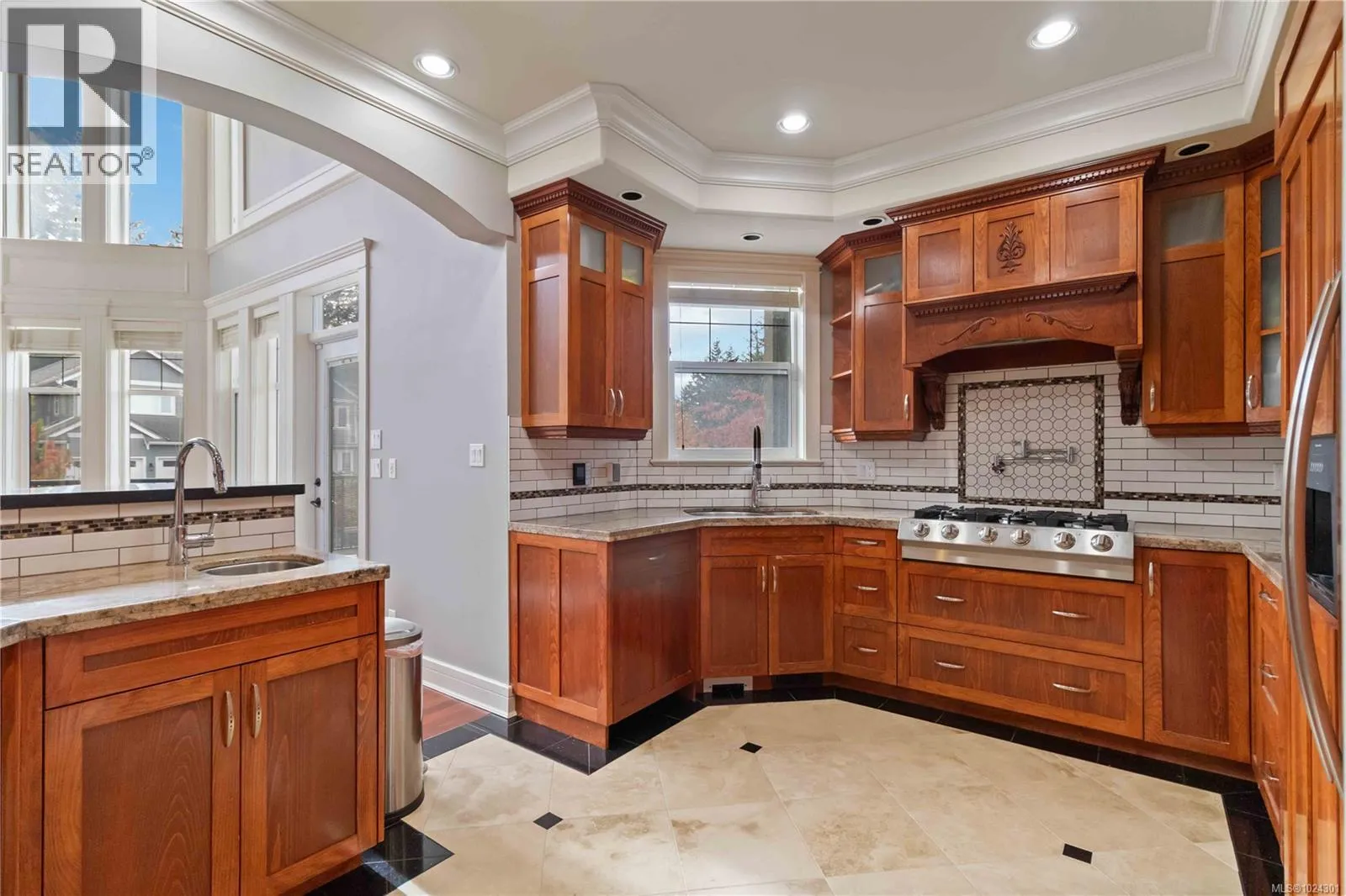 Explore this executive home on Bear Mountain, a testament to quality craftsmanship & great value in today's market. Custom-built by the original owner, this property is nestled on a tranquil cul-de-sac & encompasses over 4,300 sq ft, including a well-appointed 2-bedroom suite. Enter through a grand entrance that sets the tone for the entire home. The Great Room with its two-story windows seamlessly flows into a chef's kitchen. Main floor also features an office, powder room, dining, & two bedrooms, each with a private balcony & ensuite. Up the loft-style landing we find an additional bedroom & a large primary suite, complete with a walk-in closet, 6-piece ensuite, & a private balcony overlooking the treetops. The lower level includes a 3-car garage, ideal for recreational storage. The suite, with its high ceilings & natural light, offers versatility for tenants or family. Enjoy the Bear Mountain lifestyle with world-class golf, hiking, tennis, biking, & dining nearby. (id:27476)