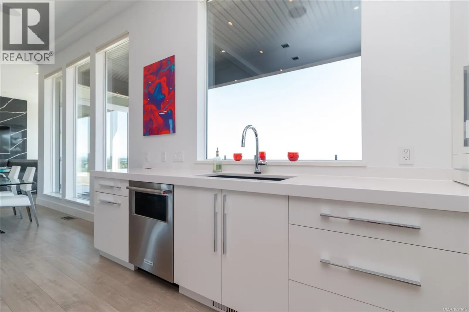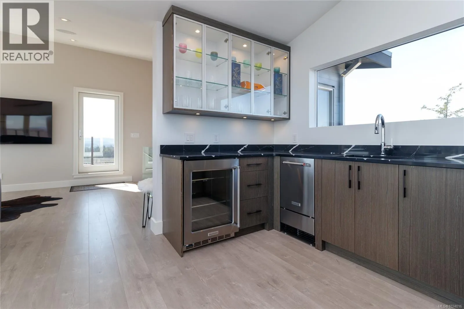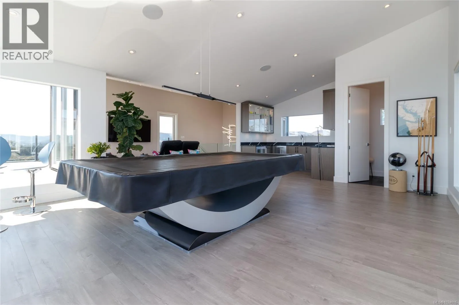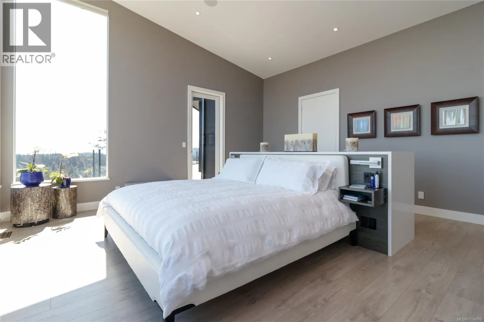 Custom-built architectural residence offering over 5,600 sq. ft. of luxury living on a rare and private 0.66-acre estate with breathtaking 360-degree views of the ocean, snow-capped Olympic Mountains, and the City of Victoria. This stunning home features soaring 12-foot ceilings, expansive floor-to-ceiling windows, and exceptional natural light throughout. The gourmet chefâs kitchen is designed for entertaining with quartz countertops, oversized breakfast bar, commercial-style refrigerator, built-in appliances, dual under-counter wine fridges, and a large walk-in pantry. The open-concept living and dining areas are highlighted by a built-in 80-inch HD TV and uninterrupted views. The primary bedroom is located on the main floor and offers a peaceful retreat with automated blinds, city-light views, and a spa-inspired ensuite featuring a deep soaker tub, oversized tiled shower, and walk-in closet. A striking glass and wood staircase leads to the upper-level sky bar and entertainment lounge with wrap-around windows showcasing panoramic views across southern Vancouver Island. Enjoy a private, theatre-style media room designed to replicate the ultimate cinematic experience. Outdoor living is equally impressive with over 700 sq. ft. of decks, a covered stainless-steel BBQ centre, and a secluded hot tub with cover and privacy screens, creating a spa-like setting under the stars. Additional features include four bedrooms, five bathrooms, office, meditation or yoga space, Sonos sound system, Hunter Douglas automated blinds, heat pump, gated entry, easy-care landscaping with micro-spray irrigation, and professionally installed brick-lock patios. Quietly positioned at the end of a private driveâjust minutes from Victoria. Open House Saturday February 7th from 1:00-3:00! (id:27476)