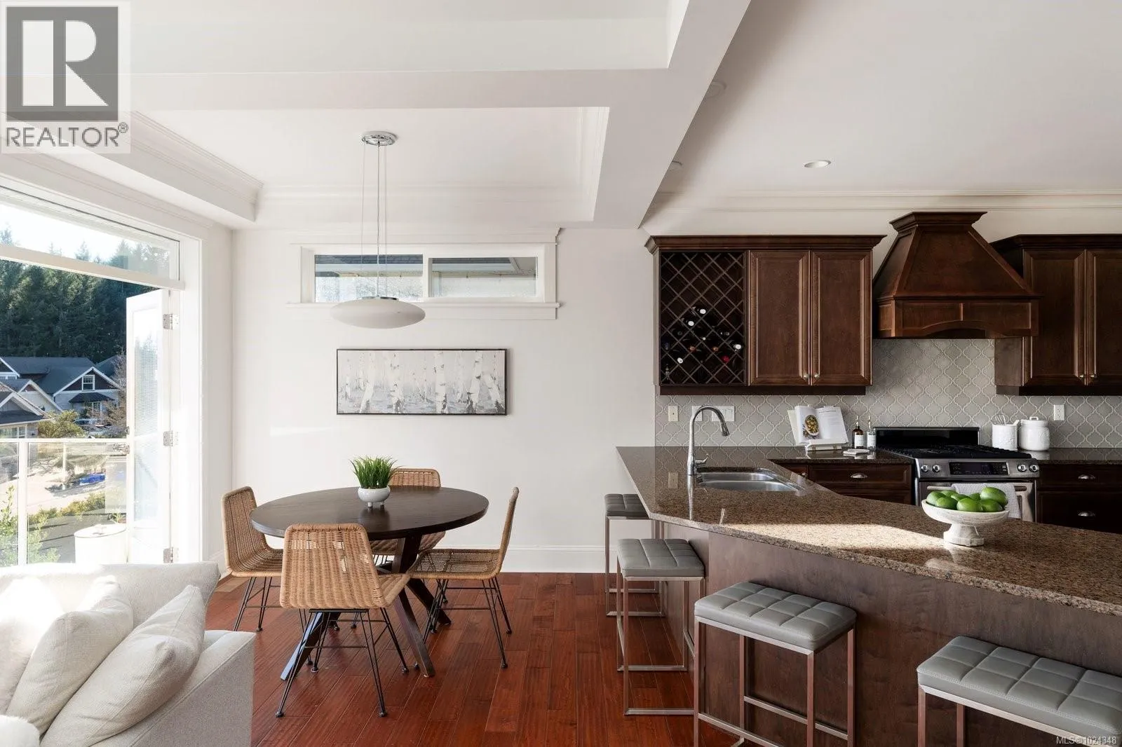 Welcome to 2145 Players Drive, a beautifully maintained home in one of Bear Mountainâs most sought-after family neighbourhoods. Offering over 3,500 sq ft of thoughtfully designed living space, this 5-bedroom, 4-bathroom residence blends quality craftsmanship with bright, functional living.A grand vaulted entry and open staircase create an inviting first impression. The upper level features a 12-foot vaulted living room with gas fireplace, a private dining room, and a stunning kitchen with granite countertops, stainless steel appliances, sit-up island, and breakfast nook. Step outside to an expansive wraparound patio, ideal for outdoor living and entertaining.The spacious primary suite offers patio access, a large walk-in closet, and a spa-inspired 5-piece ensuite. Two additional bedrooms and a 4-piece bathroom complete the upper floor. The entry level includes a cozy media room, office space, and a legal 1-bedroom suite with private entrance and separate parking,perfect for extended family or rental income. Optional GOLF MEMBERSHIP adds the finishing touch for the ultimate Bear Mountain resort lifestyle. (id:27476)