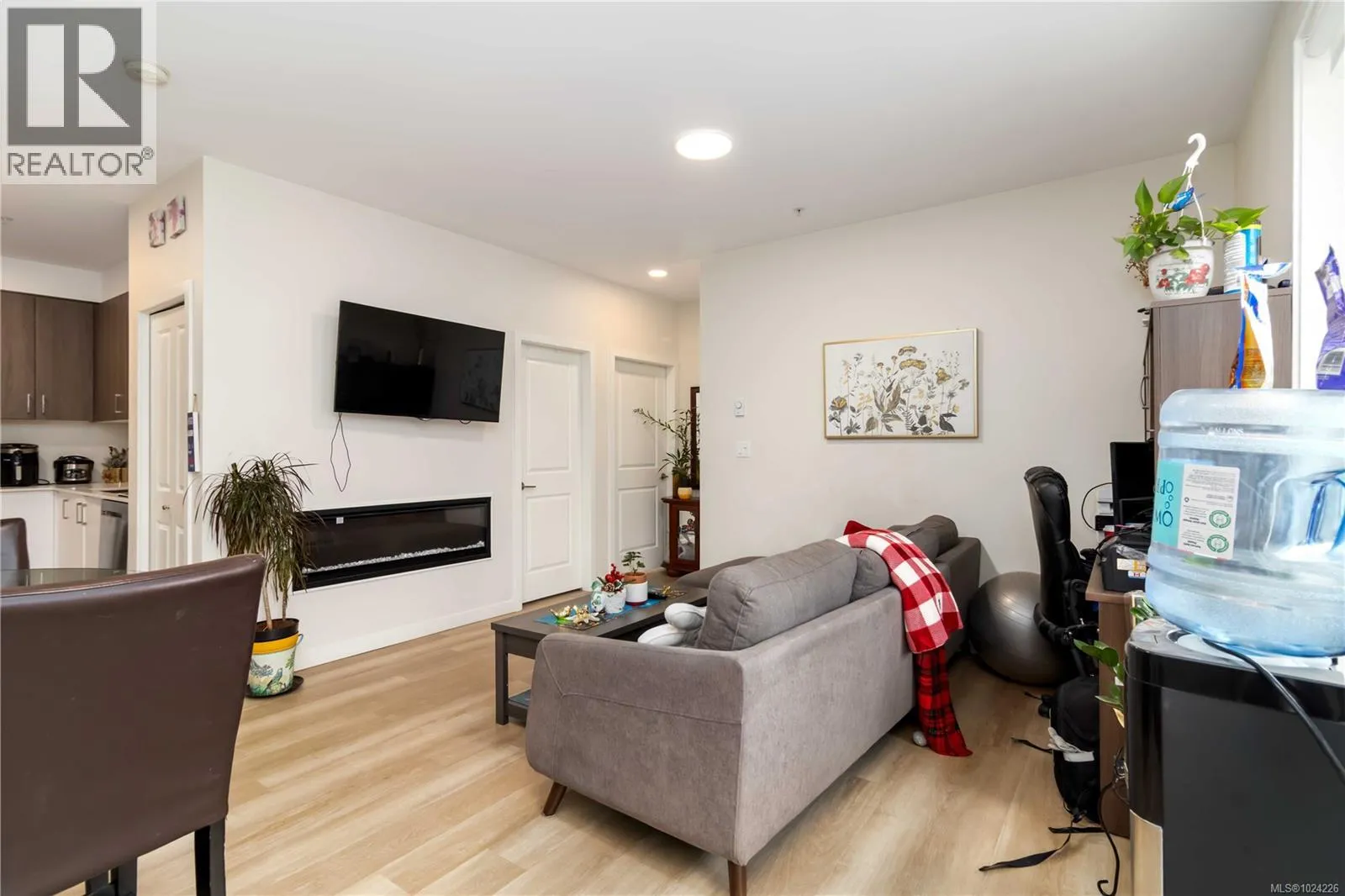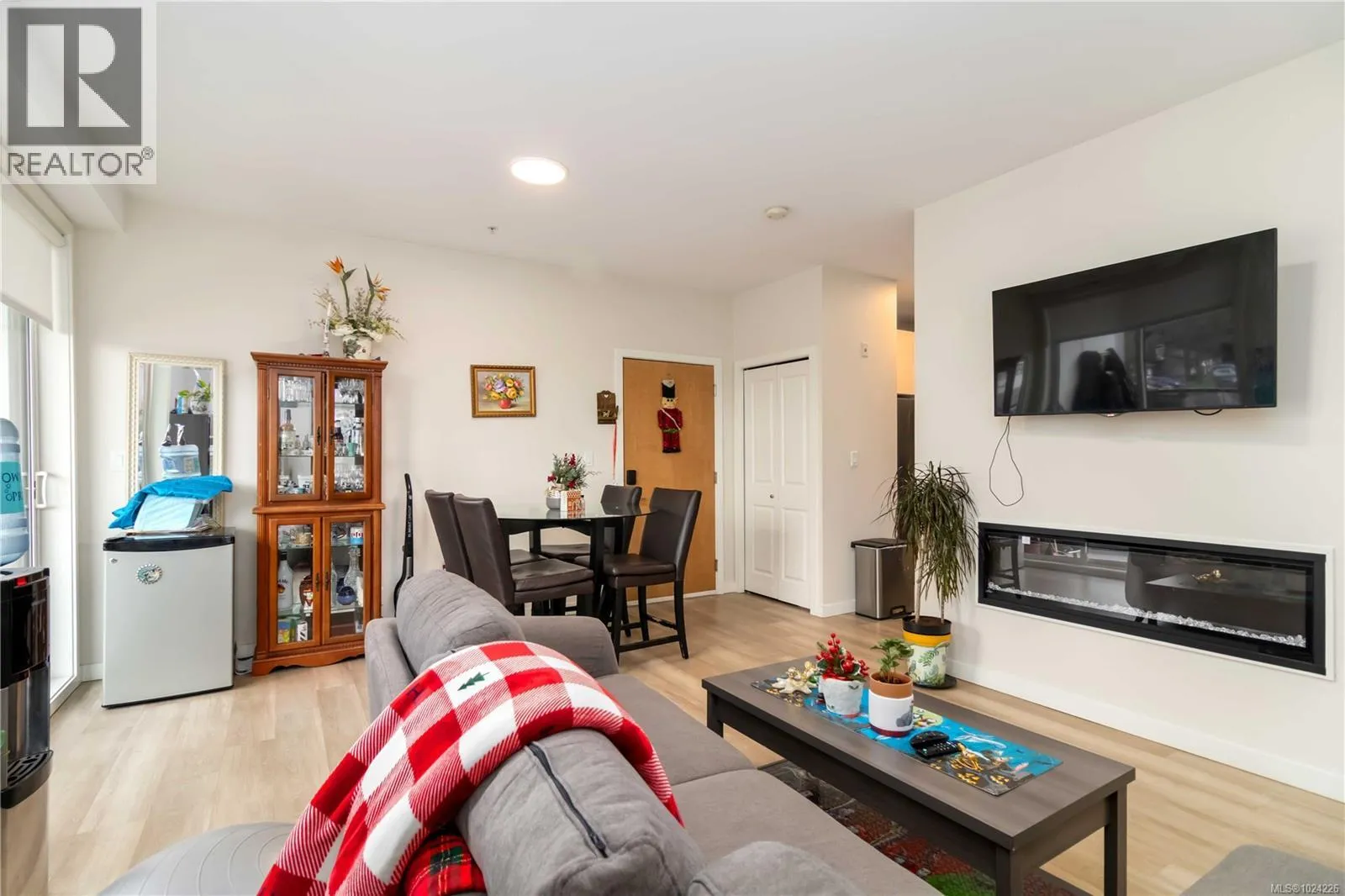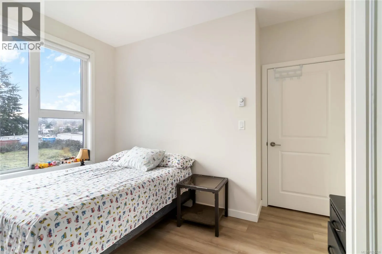 Welcome to Pacific Trilogy, a 2021 development located in the heart of Langford! This functional unit offers 821 sq.ft of open living space, 2 bedrooms with windows, and 2 full bathrooms. Enjoy 9' ceilings, large windows that fill the home with natural light, and a spacious covered balcony perfect for barbecuing. The kitchen features European-style 2-tone cabinets with soft-touch drawers and hinges and quartz countertops throughout. High-quality stainless steel appliances include fridge with ice maker, convection oven, microwave, rangehood, dishwasher, and a front-load washer and dryer. Additional perks include a stylish electric fireplace, secure bike storage, pet-friendly building, 1 secure parking stall with gate entry and fob, eco-friendly solar panels on the roof, and low strata fees. Rentals are allowed, making it a fantastic home or investment. Conveniently located within walking distance to shopping centers, recreation facilities, walking trails, and entertainment! (id:27476)