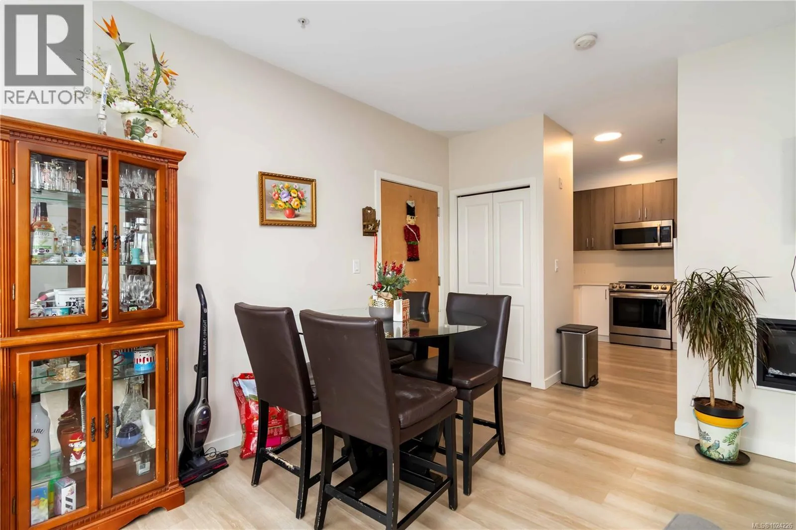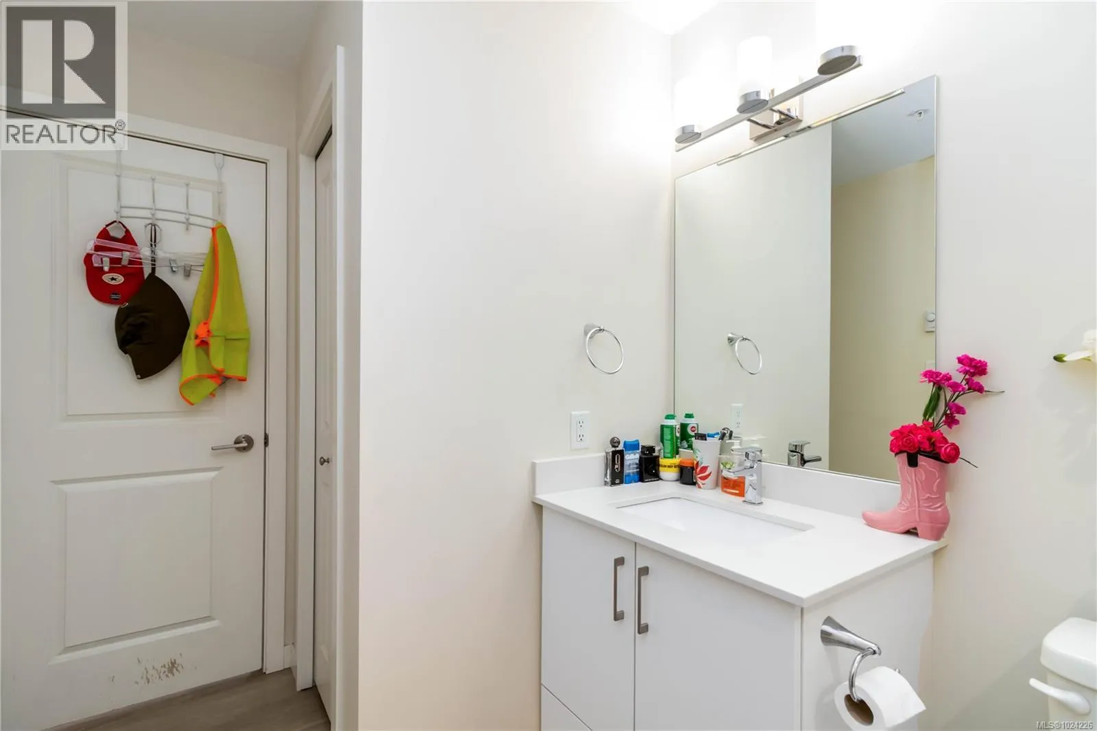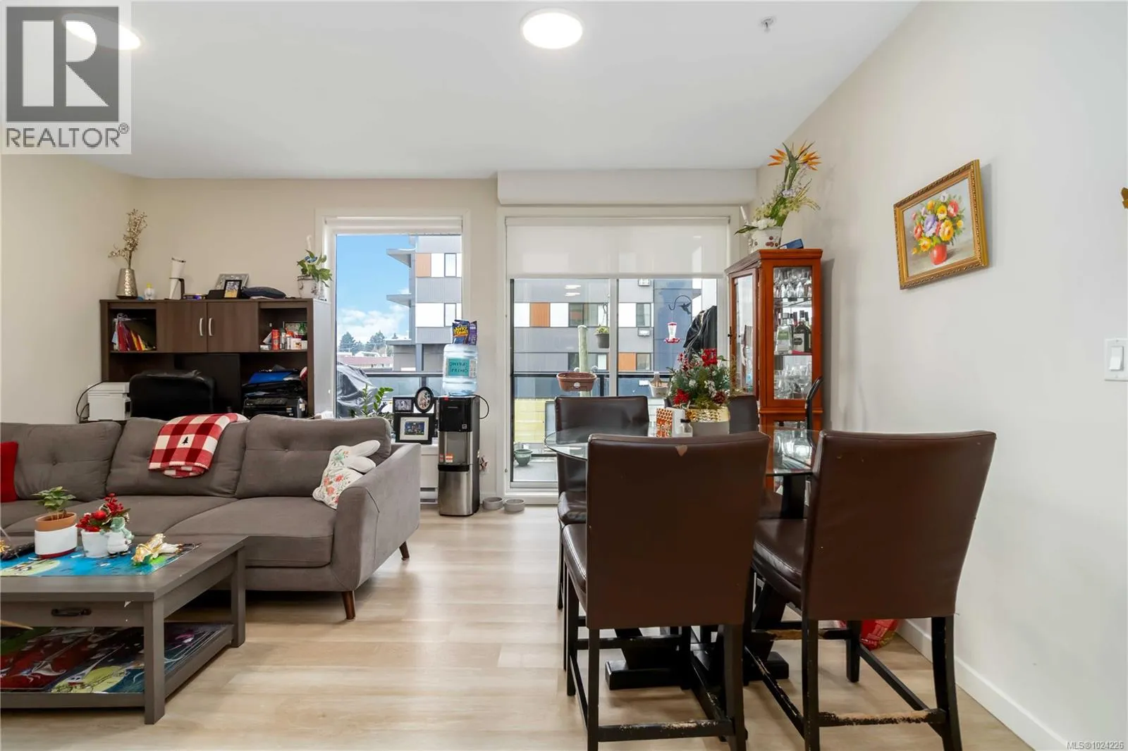 Welcome to Pacific Trilogy, a 2021 development located in the heart of Langford! This functional unit offers 821 sq.ft of open living space, 2 bedrooms with windows, and 2 full bathrooms. Enjoy 9' ceilings, large windows that fill the home with natural light, and a spacious covered balcony perfect for barbecuing. The kitchen features European-style 2-tone cabinets with soft-touch drawers and hinges and quartz countertops throughout. High-quality stainless steel appliances include fridge with ice maker, convection oven, microwave, rangehood, dishwasher, and a front-load washer and dryer. Additional perks include a stylish electric fireplace, secure bike storage, pet-friendly building, 1 secure parking stall with gate entry and fob, eco-friendly solar panels on the roof, and low strata fees. Rentals are allowed, making it a fantastic home or investment. Conveniently located within walking distance to shopping centers, recreation facilities, walking trails, and entertainment! (id:27476)