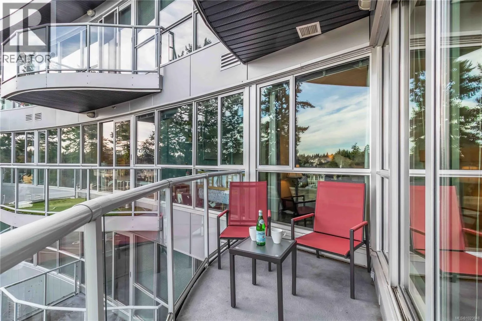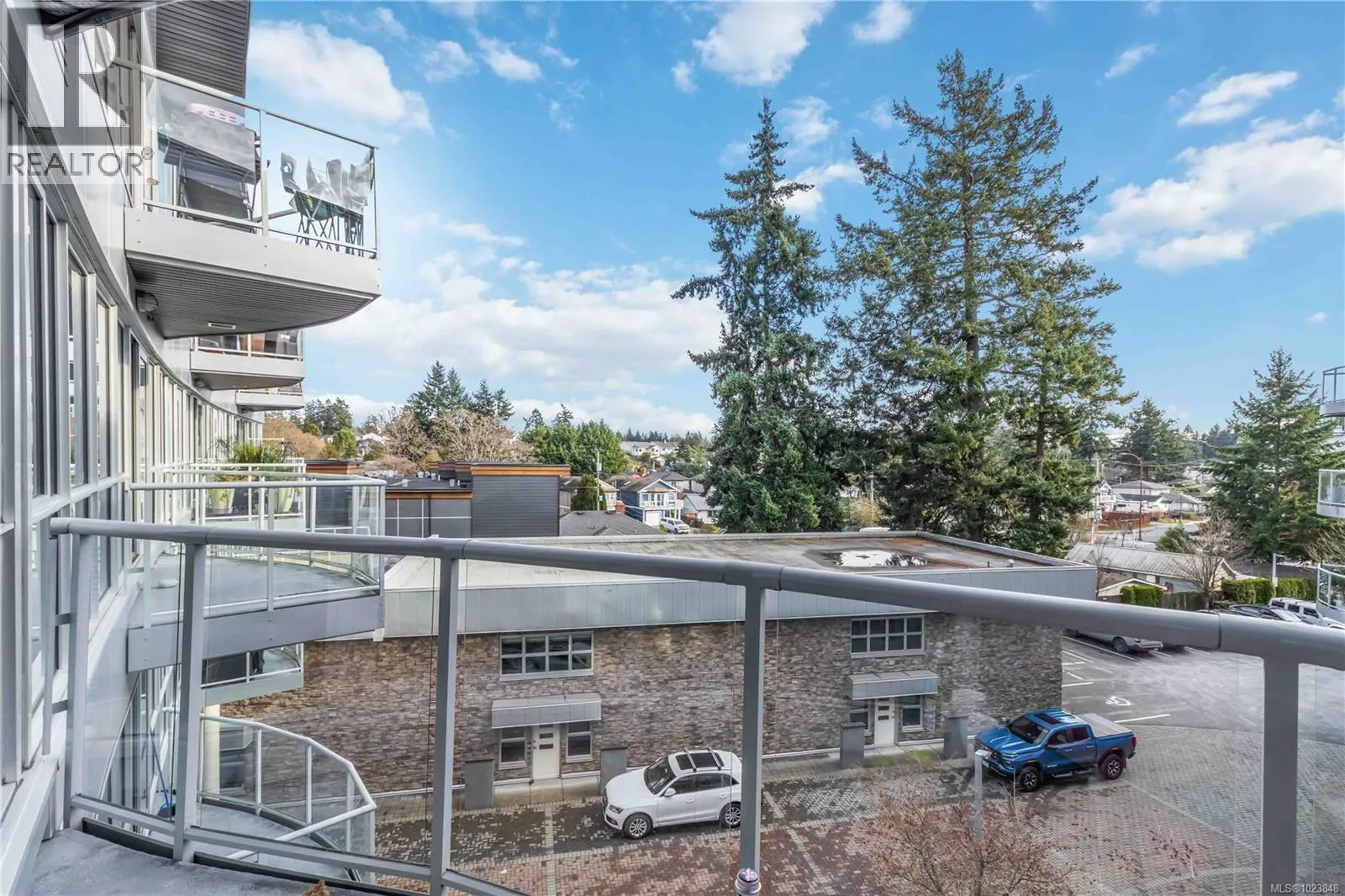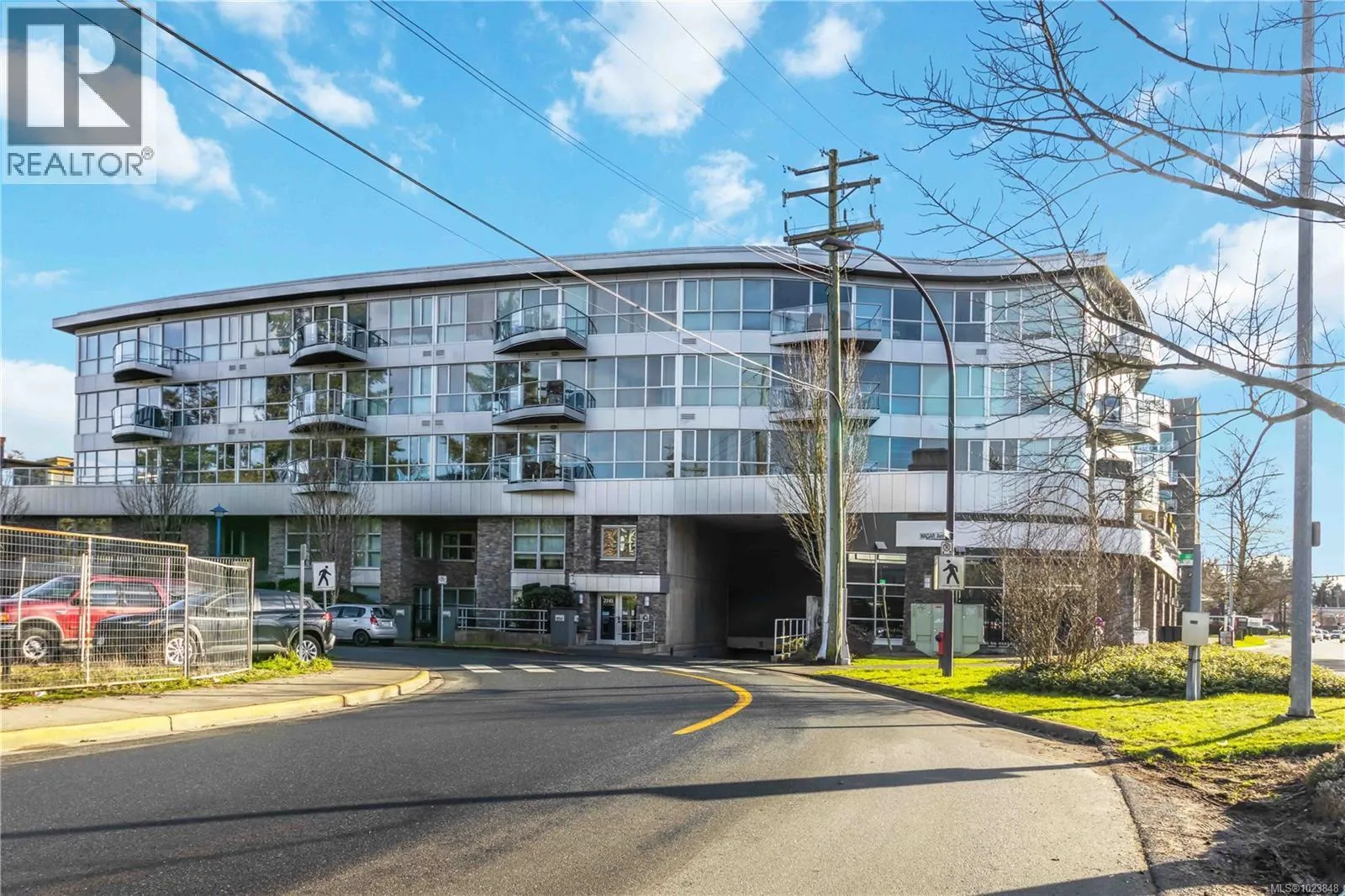 Welcome to the Reflections building, a modern and well-designed residence centrally located in Langford, just steps from the energy and convenience of Goldstream Village. This thoughtfully appointed home is positioned on the quiet side of the building and features floor-to-ceiling, south-east facing windows that allow abundant natural light while maintaining privacy. Clean lines, contemporary finishes, and polished chrome fixtures throughout reflect the buildingâs modern design and attention to detail. The spacious kitchen is both functional and stylish, equipped with a full KitchenAid appliance package, generous counter space that comfortably accommodates two cooks, and a convenient sit-up bar ideal for casual dining or entertaining. The open yet well-defined floor plan includes a separate dining area and an inviting living space anchored by a sleek electric fireplace, creating a warm and practical layout for everyday living. The bedroom easily fits a king-size bed and offers a walk-in closet with cheater ensuite, complete with a walk-in shower and modern fixtures. A separate den provides flexible space for a home office or storage, while full-size in-suite laundry adds everyday convenience. Storage is abundant, with ample in-unit storage as well as a separate storage locker. Residents enjoy access to exceptional amenities, including a rooftop patio with open viewsâperfect for sunsetsâalong with a pool and rubberized walking track. The home includes one secure underground parking space and benefits from easy highway access for commuting, while remaining within walking distance to restaurants, cafés, and groceries. A prime location in a contemporary building, offering comfort, functionality, and lifestyle all in one place. (id:27476)