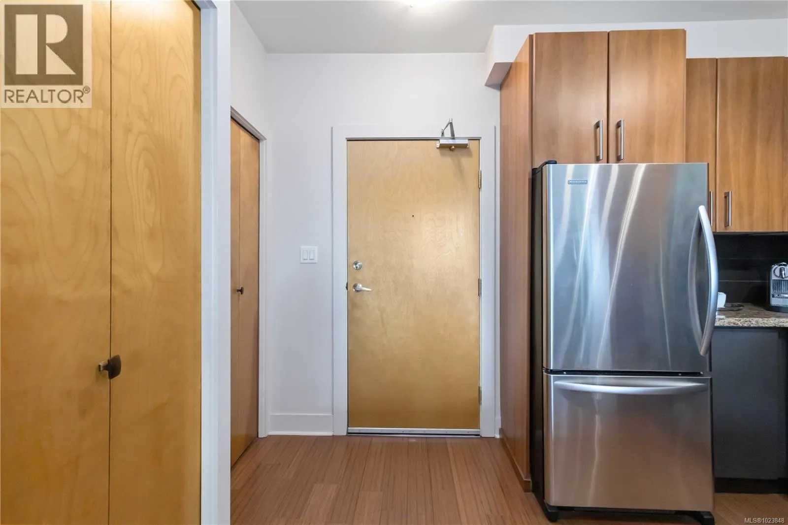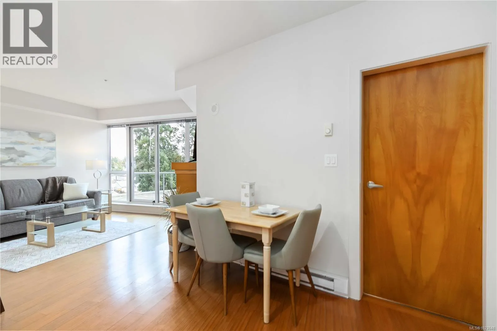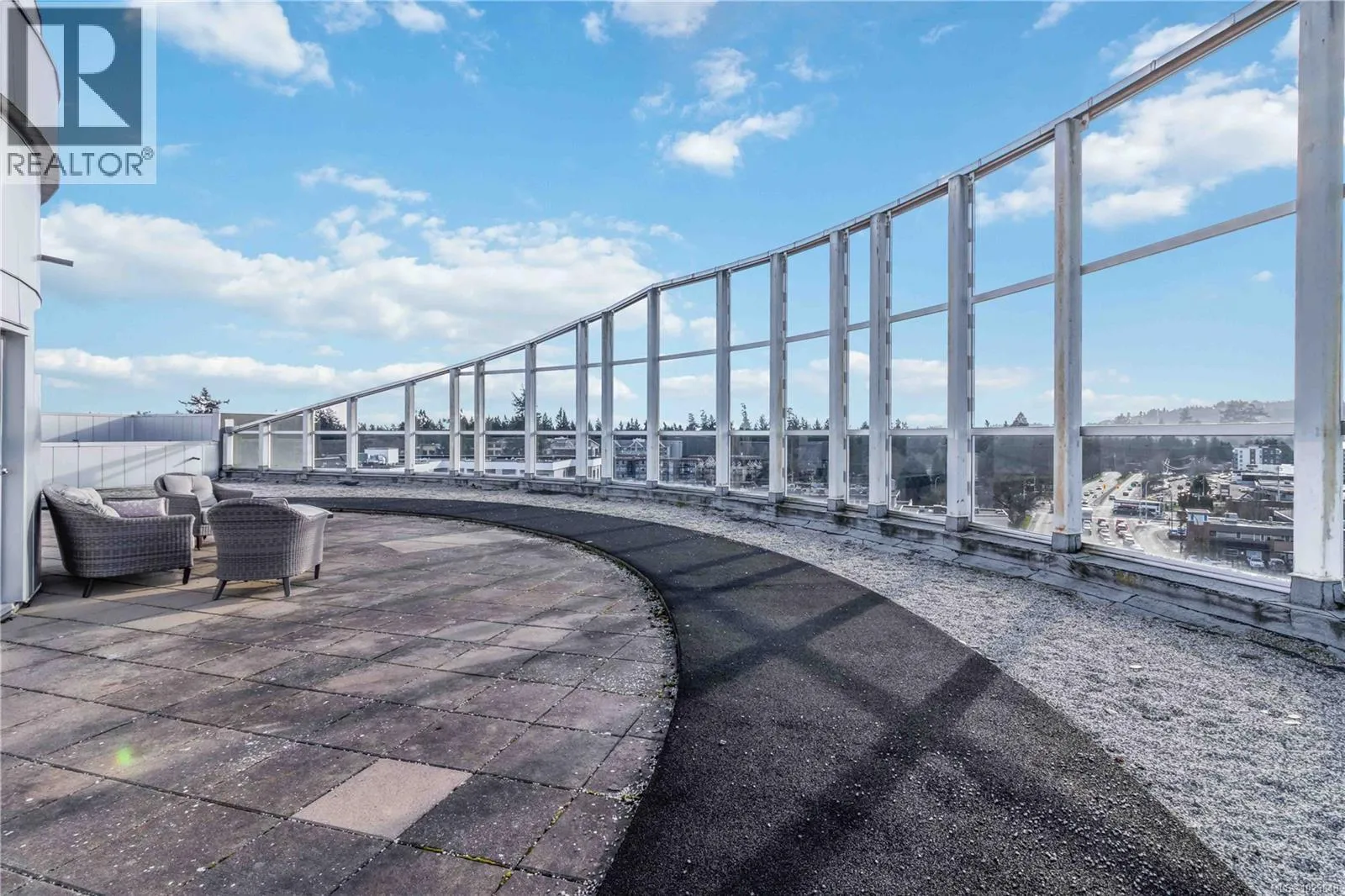 Welcome to the Reflections building, a modern and well-designed residence centrally located in Langford, just steps from the energy and convenience of Goldstream Village. This thoughtfully appointed home is positioned on the quiet side of the building and features floor-to-ceiling, south-east facing windows that allow abundant natural light while maintaining privacy. Clean lines, contemporary finishes, and polished chrome fixtures throughout reflect the buildingâs modern design and attention to detail. The spacious kitchen is both functional and stylish, equipped with a full KitchenAid appliance package, generous counter space that comfortably accommodates two cooks, and a convenient sit-up bar ideal for casual dining or entertaining. The open yet well-defined floor plan includes a separate dining area and an inviting living space anchored by a sleek electric fireplace, creating a warm and practical layout for everyday living. The bedroom easily fits a king-size bed and offers a walk-in closet with cheater ensuite, complete with a walk-in shower and modern fixtures. A separate den provides flexible space for a home office or storage, while full-size in-suite laundry adds everyday convenience. Storage is abundant, with ample in-unit storage as well as a separate storage locker. Residents enjoy access to exceptional amenities, including a rooftop patio with open viewsâperfect for sunsetsâalong with a pool and rubberized walking track. The home includes one secure underground parking space and benefits from easy highway access for commuting, while remaining within walking distance to restaurants, cafés, and groceries. A prime location in a contemporary building, offering comfort, functionality, and lifestyle all in one place. (id:27476)