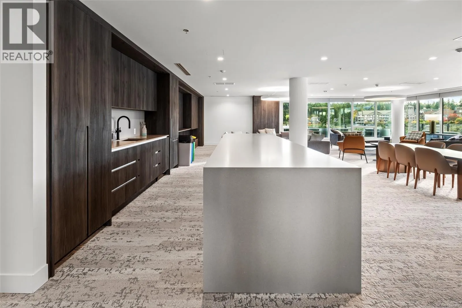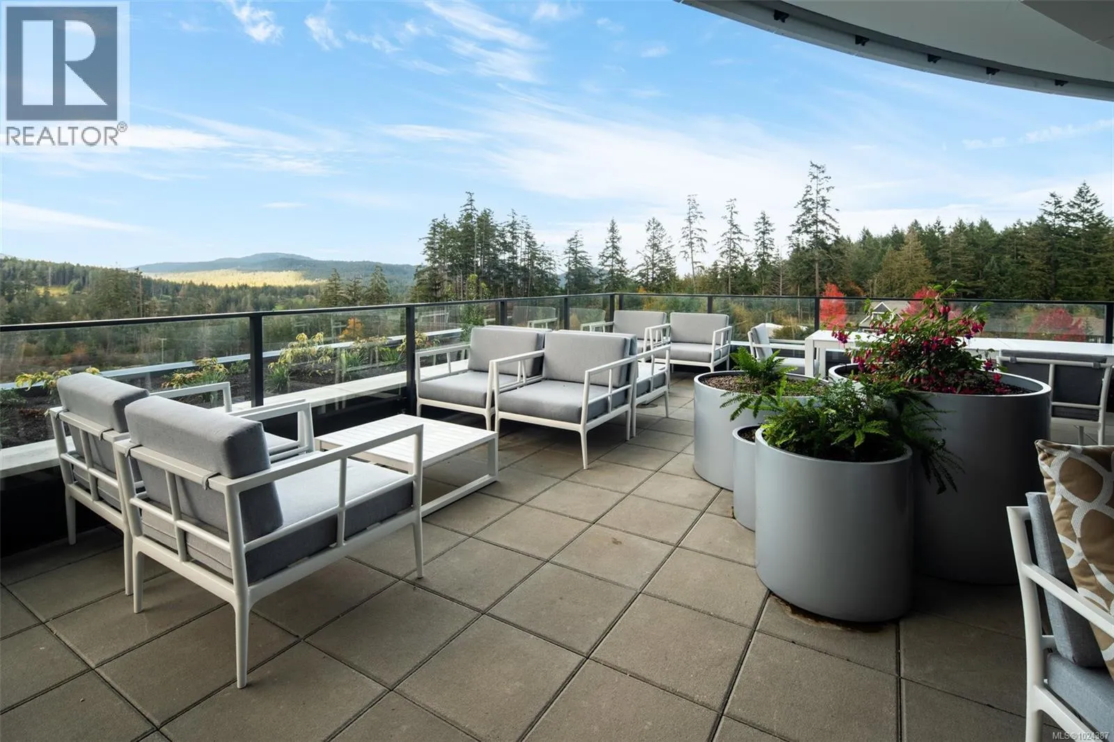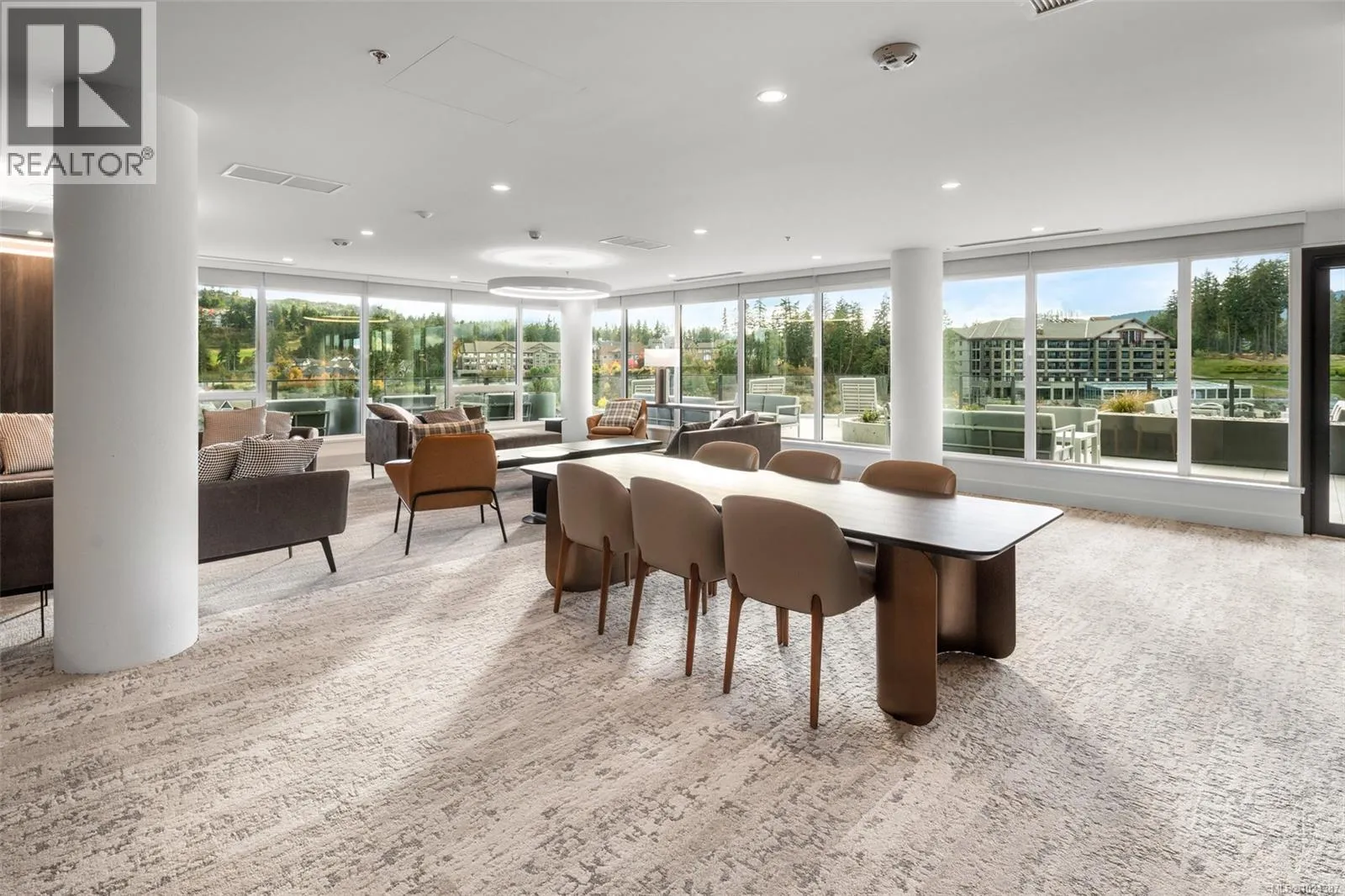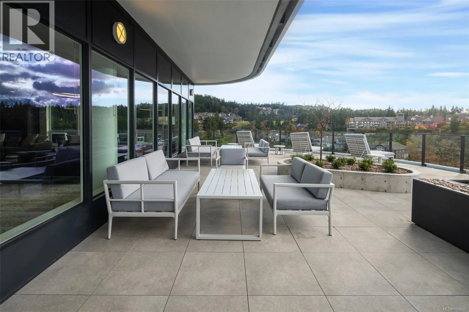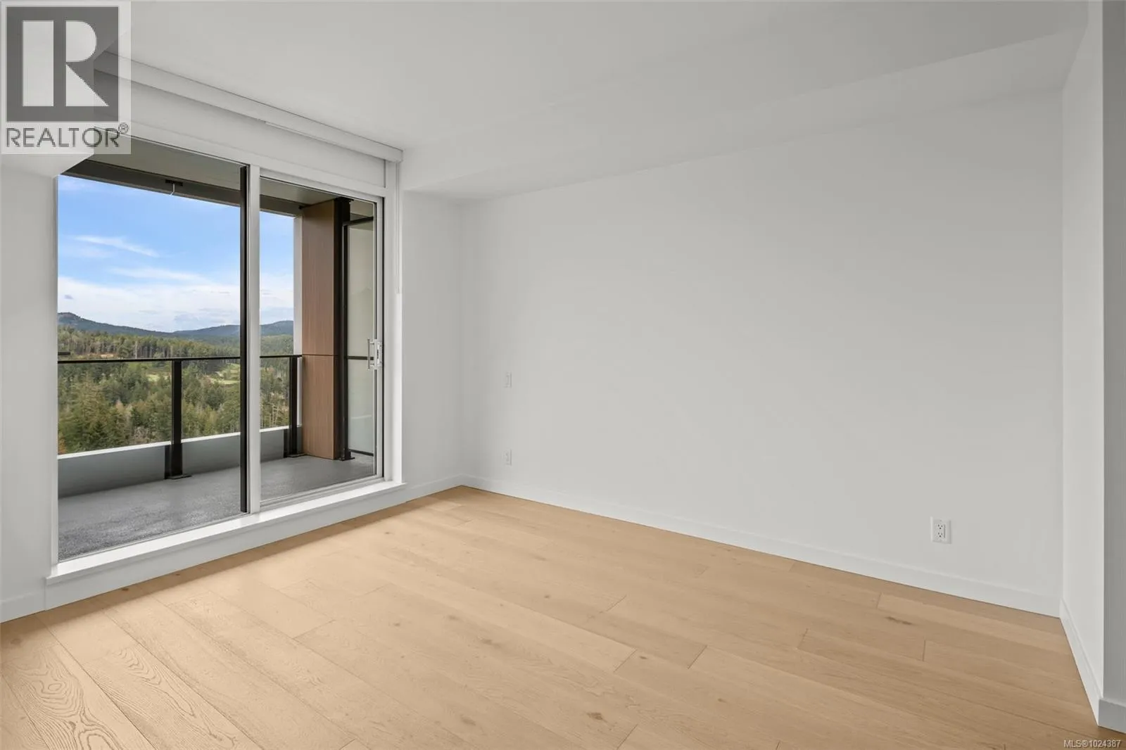 Elevated above it all on the 13th floor of the elegant One Bear Mountain, this beautifully curated two-bedroom and den residence offers a rare blend of refined interiors, expansive outdoor living, and sweeping views across the 18th fairway. Approximately 1,150 sq ft of thoughtfully designed living space is framed by floor-to-ceiling windows that draw in natural light and ever-changing views. Wide-plank hardwood floors and clean architectural lines anchor the open-concept layout, while an impressive 8' x 40' deck spans the length of the homeâideal for morning coffee, evening entertaining, or simply taking in the serene surroundings. The kitchen is both elegant and functional, featuring Italian cabinetry, quartz countertops, and a seamless integrated Bosch appliance package with gas cooktop and wall oven. The primary suite offers a custom walk-in closet, spa-inspired ensuite, and direct deck access, creating a private retreat with a strong connection to the outdoors. A well-proportioned second bedroom and versatile den provide flexibility for guests, work-from-home living, or creative space. Residents of One Bear Mountain enjoy an exceptional collection of resort-inspired amenities, including a 15th-floor outdoor infinity pool with panoramic views, a state-of-the-art fitness centre, yoga studio, business centre, and private dining spaces. Set within one of Greater Victoriaâs most sought-after lifestyle communities, Bear Mountain offers world-class golf, hiking and biking trails, and easy access to Langfordâs growing urban core and downtown Victoria. This is elevated living! (id:27476)
