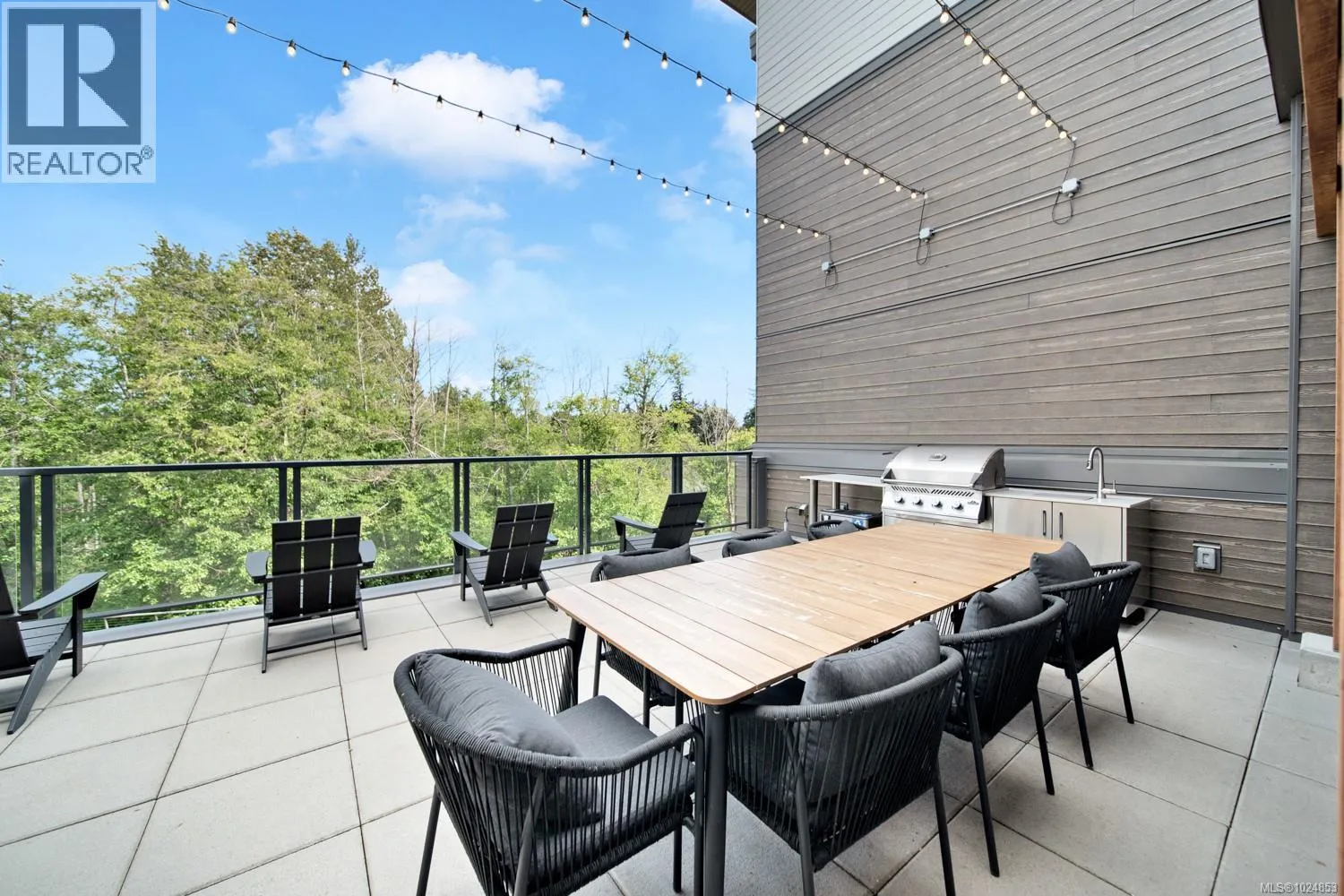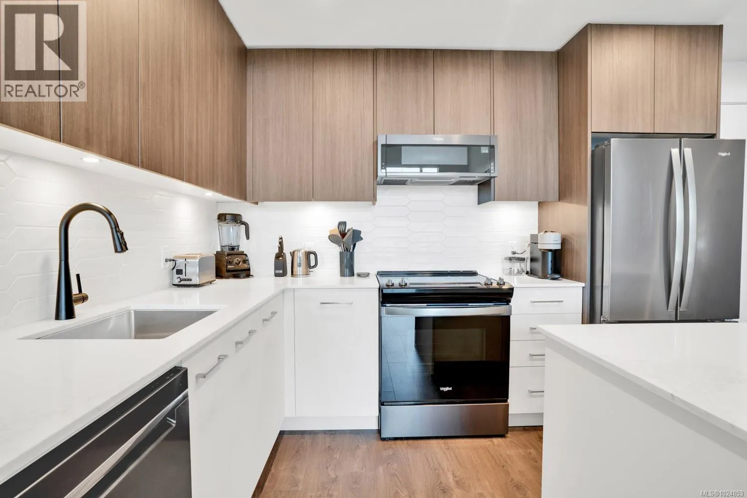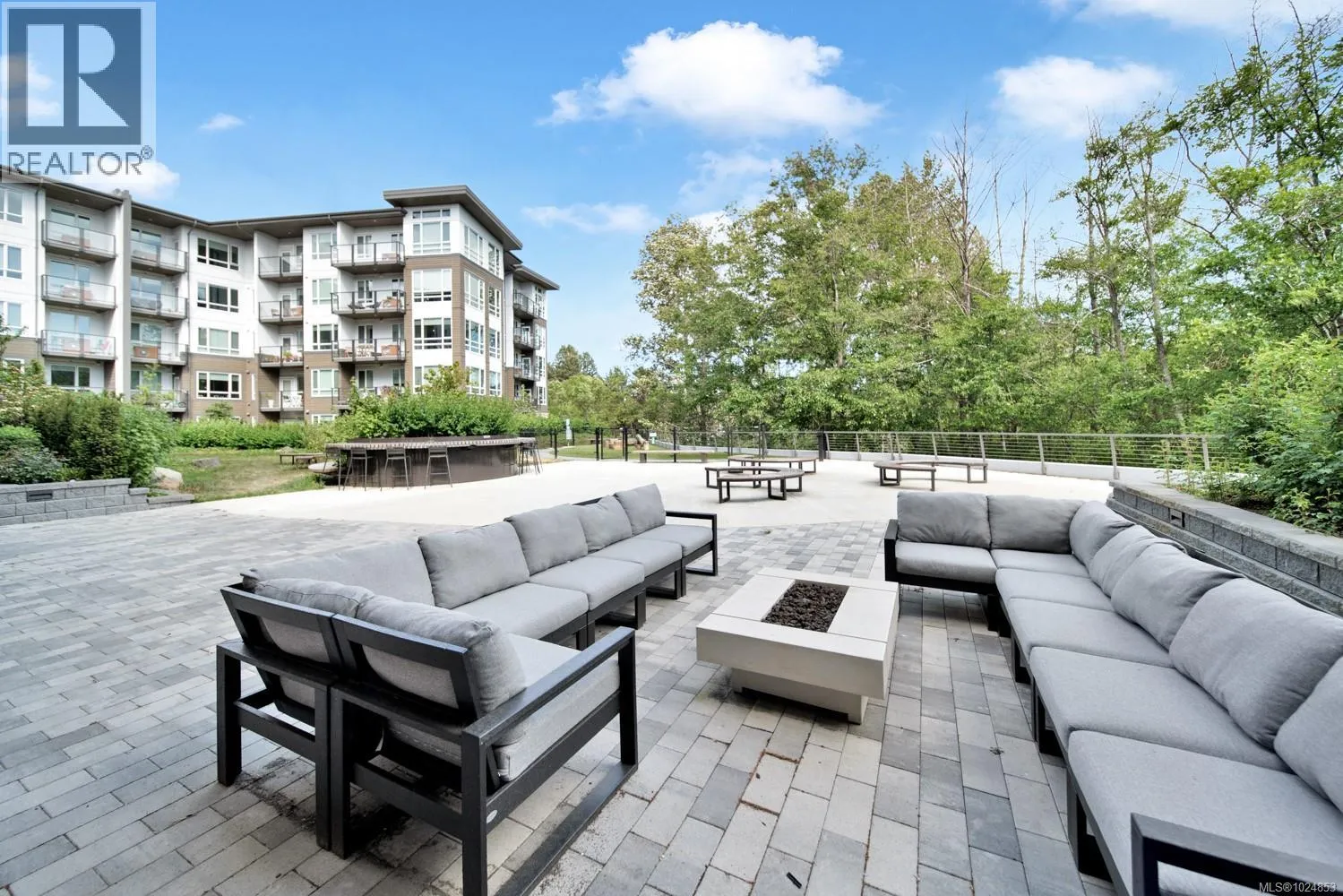Welcome to 531â920 Reunion Avenue, a bright and modern top-floor condo in Langfordâs award-winning Belmont community. This 2-bedroom, 2-bathroom home offers nearly 1,000 square feet of thoughtfully designed living space with elevated ceilings and large windows that fill the unit with natural light. The layout is ideal, with bedrooms on opposite sides for privacy, a dedicated office nook, and an open-concept main living area that feels spacious and inviting. The kitchen features full-height cabinetry, stainless Whirlpool appliances, quartz countertops, and a large island perfect for entertaining or casual meals. The primary suite includes a walk-through closet and a spa-inspired ensuite with double vanities and a frameless glass shower, while the second bedroom is bright and comfortable with its own full guest bath nearby. Step out onto your private covered balcony with treetop views and a gas BBQ hookupâperfect for evening relaxation. This pet- and rental-friendly unit includes full-sized in-suite laundry, a large pantry wall for storage, one secure underground parking stall, and a separate storage locker. Reunionâs amenities are among the best in the Westshore, including a stunning fireside lounge, a chefâs kitchen and social room, a fitness centre, an outdoor BBQ terrace and fire pit, a fenced dog run, and a modern dog wash station. Located across from Belmont Market and Westshore Town Centre, and just steps to the Galloping Goose Trail, youâre within walking distance to groceries, cafes, dining, fitness studios, and more. With lakes, parks, and Bear Mountain just minutes away, this is a prime opportunity to live in a stylish, connected, and community-driven setting. This is a must see. Book your viewing today. (id:27476)