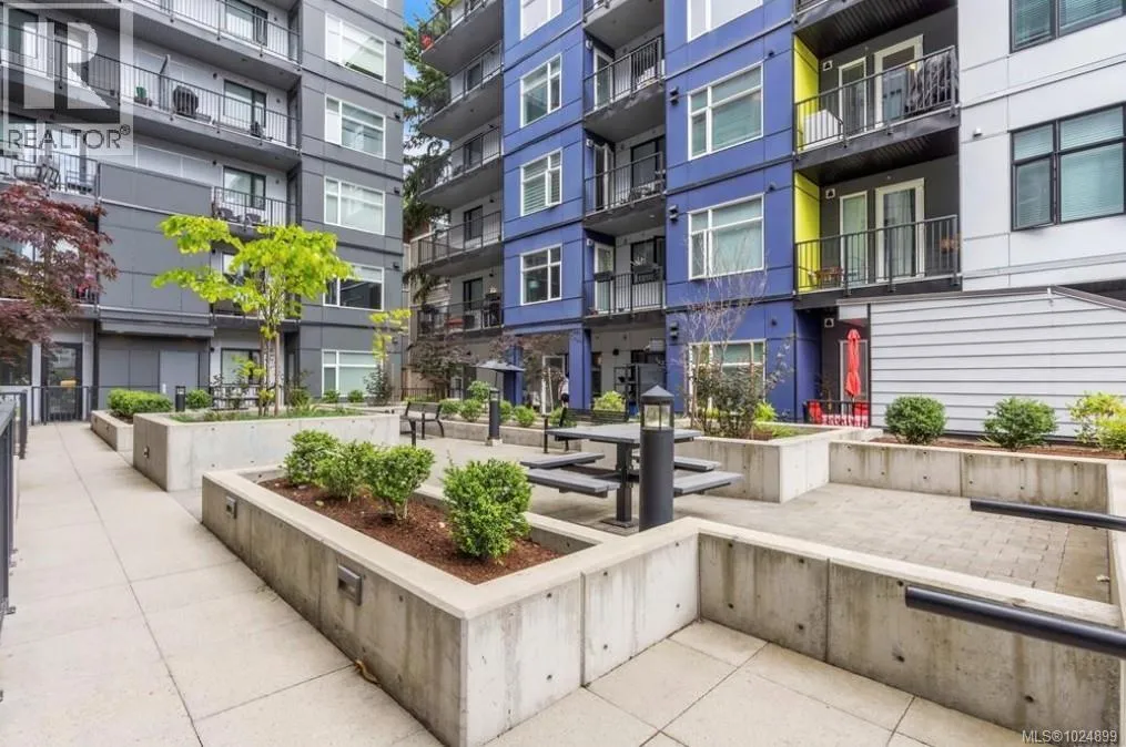 Large, affordable one-bedroom, one-bathroom condo in the heart of downtown Langford. This well-designed home features stylish vinyl flooring and convenient in-suite laundry. The spacious kitchen offers a generous island, stainless steel appliances, soft-close cabinetry, and quartz countertopsâperfect for everyday living and entertaining. Pet-friendly with approval for up to two medium-sized dogs. Additional highlights include a dedicated parking stall, visitor parking, a shared courtyard, and secure bike storage. Ideally located just steps from the newly opened UVic campus, this condo provides easy access to downtown Langfordâs shops, restaurants, parks, Langford Lake, Starlight Stadium, Westshore Town Centre, and the E&N Trail. Perfect for first-time buyers or investors, this centrally located home offers exceptional value, comfort, and a truly walkable lifestyle. (id:27476)