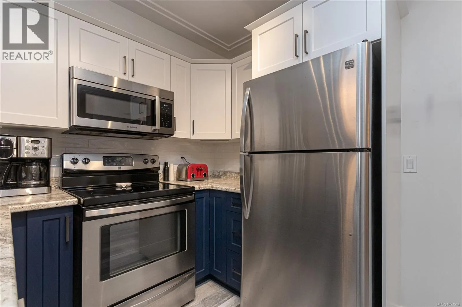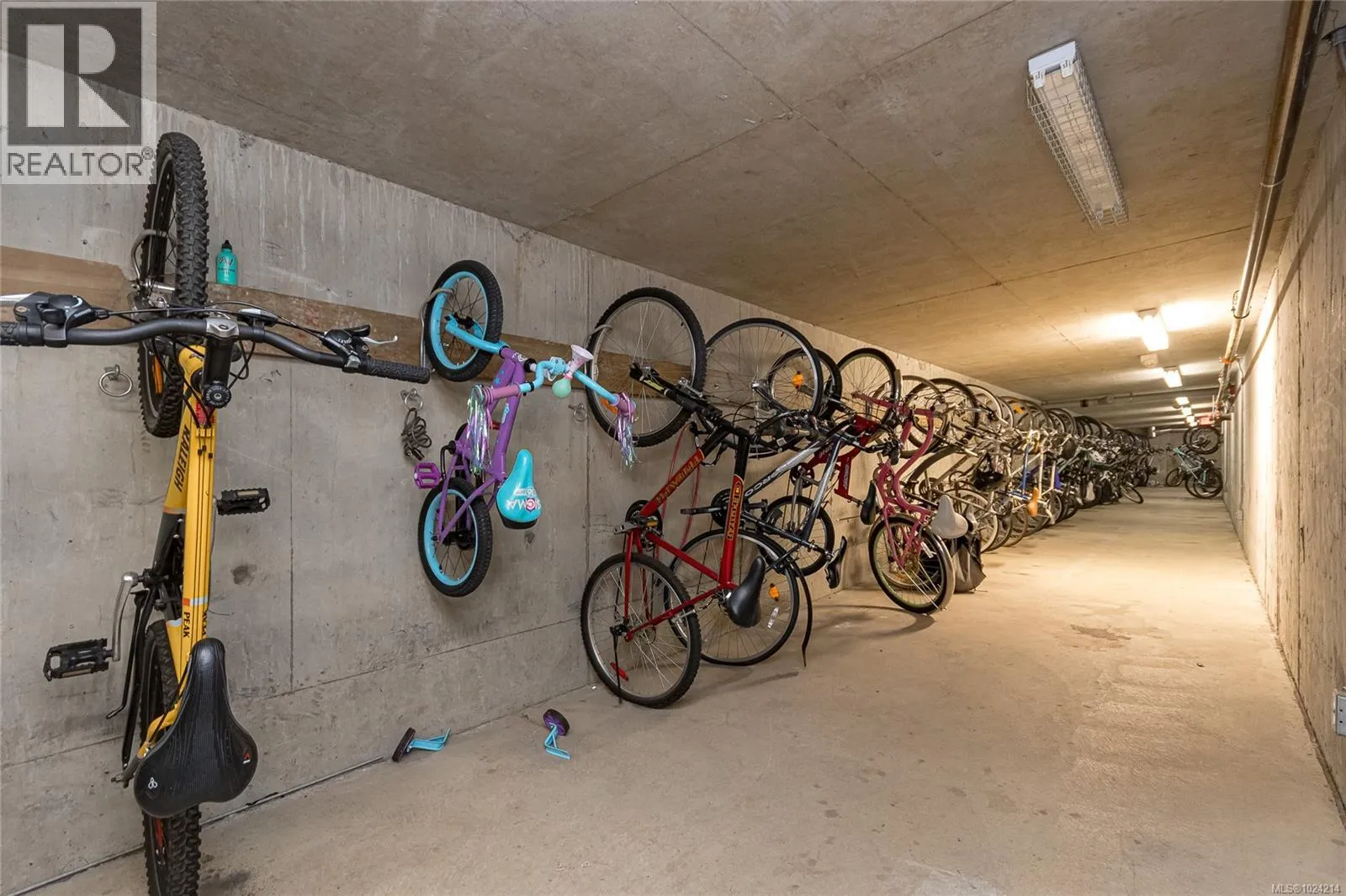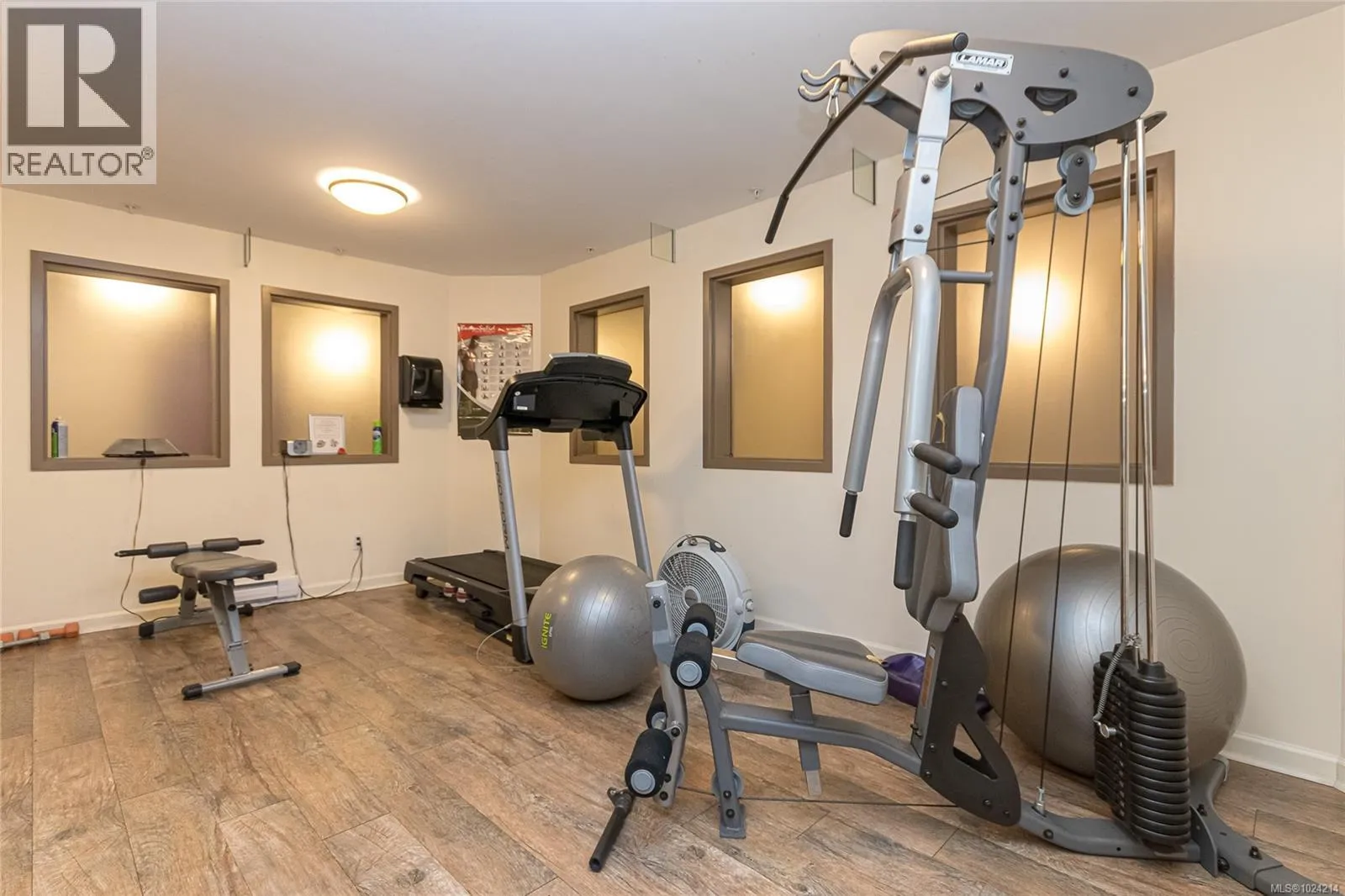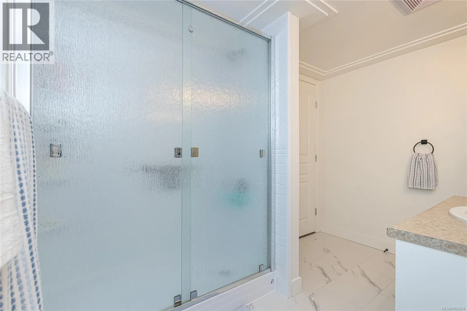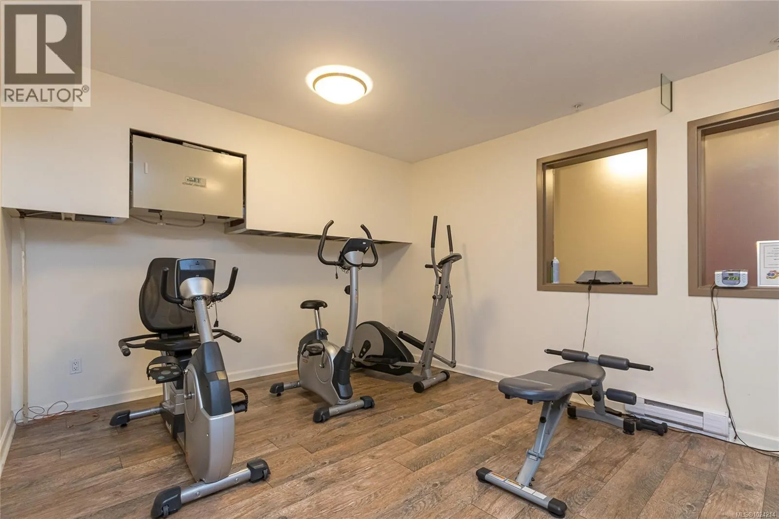Location, Location, Location in Langford Town Core! This 1 Bedroom + Den is the perfect affordable condo option! This unit faces away from the street in a quiet building, located next to the park. A stylish open concept design with a spacious kitchen, eating bar & new bright cabinet facings. New flooring & a personal balcony adjacent to the living room. The large primary bedroom accesses the main bath which has been renovated to include a new shower, toilet and vanity door facings. The versatile Den is perfect for a home office, guest room, or creative studio. In-suite laundry too! Building amenities include Bike Storage, Fitness Center, Underground Parking, Roof Top Balcony, Outdoor Gathering Space and a Meeting Room. A well cared for building with so much to offer. Close to transit, shops, dining & medical services! This condo is ideal for professionals, first-time buyers, or downsizers looking for convenience without compromise. 2 small dogs & rentals permited. (id:27476)