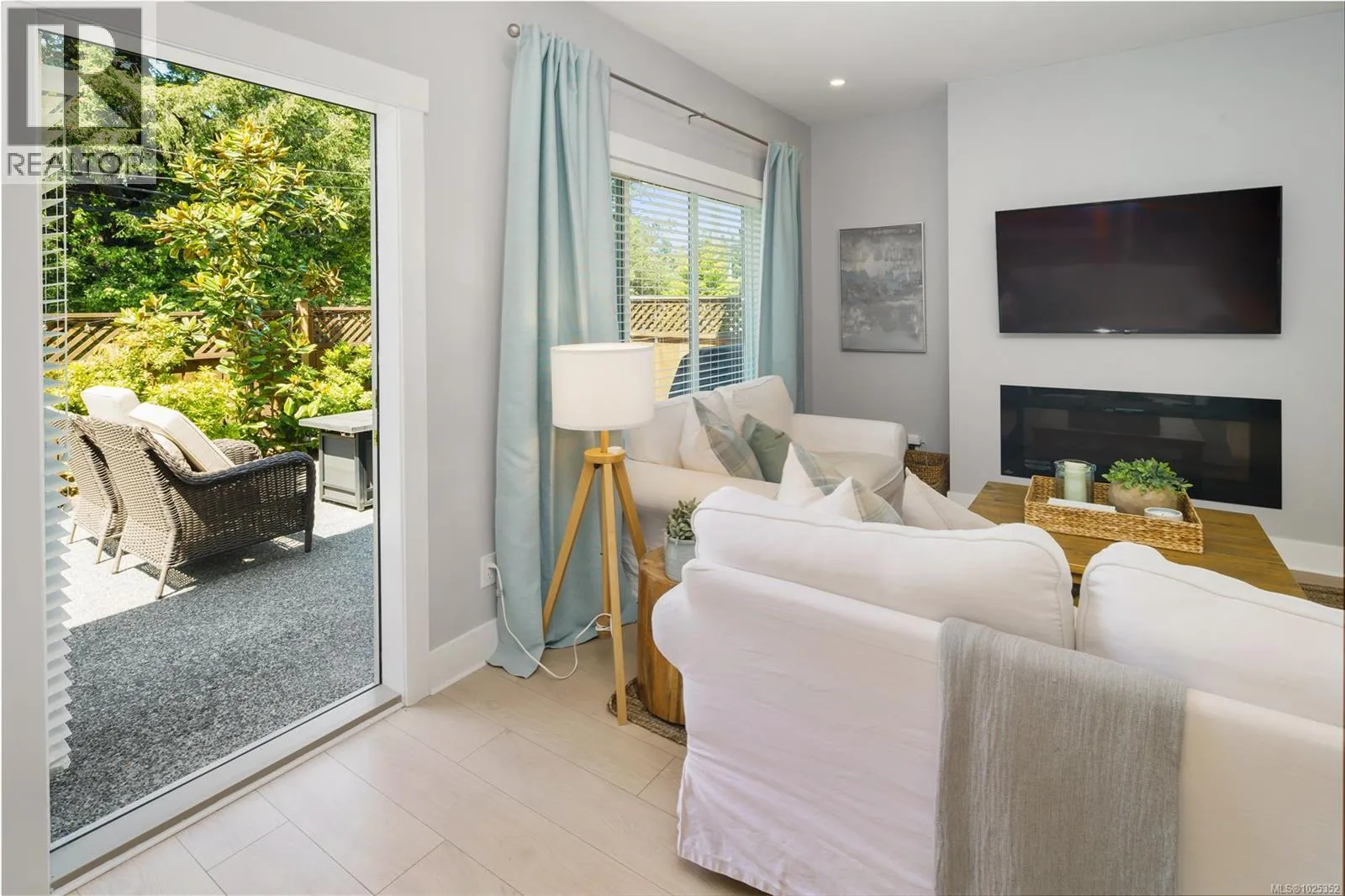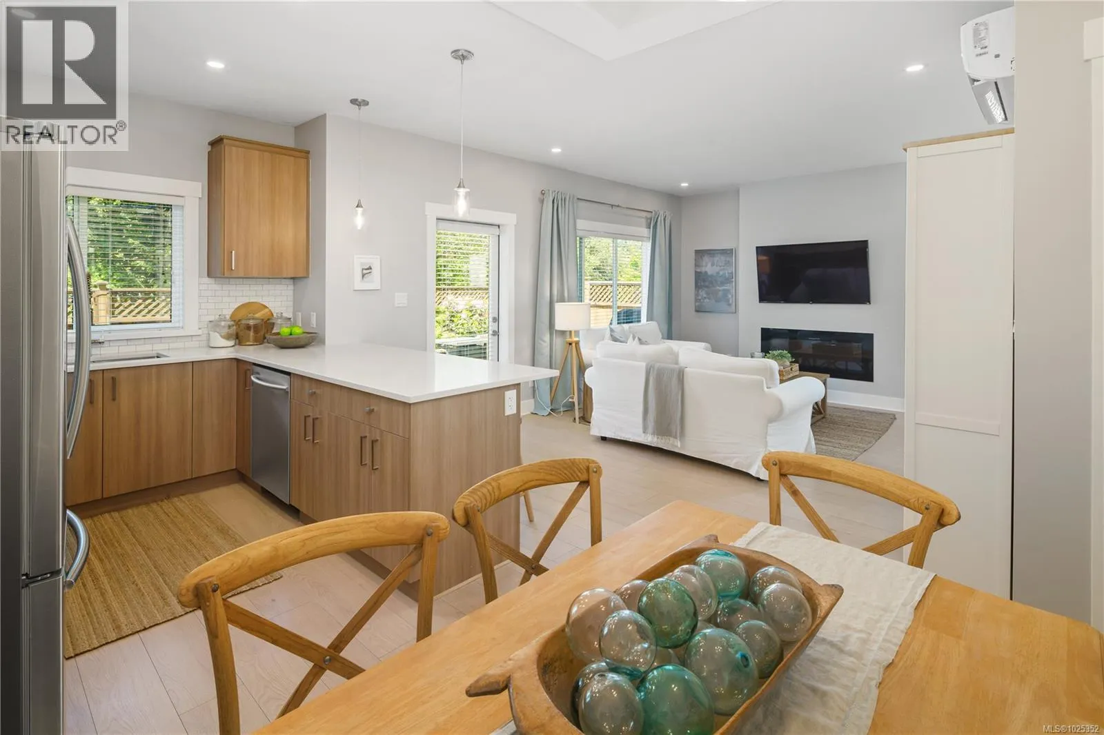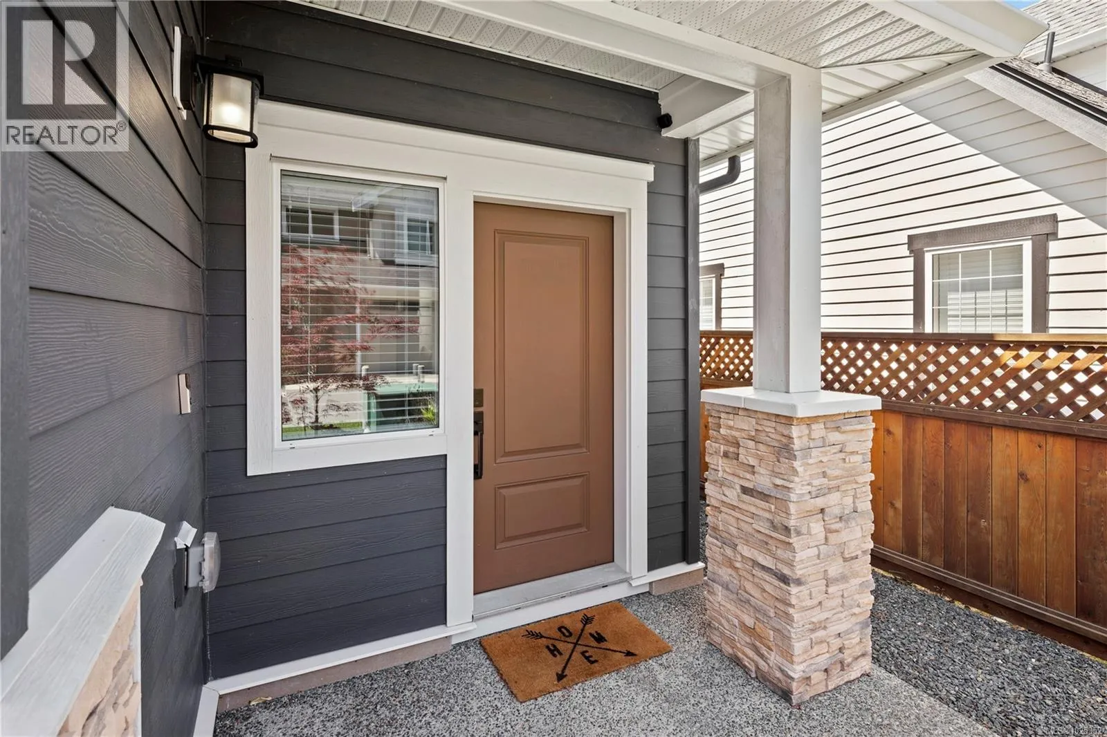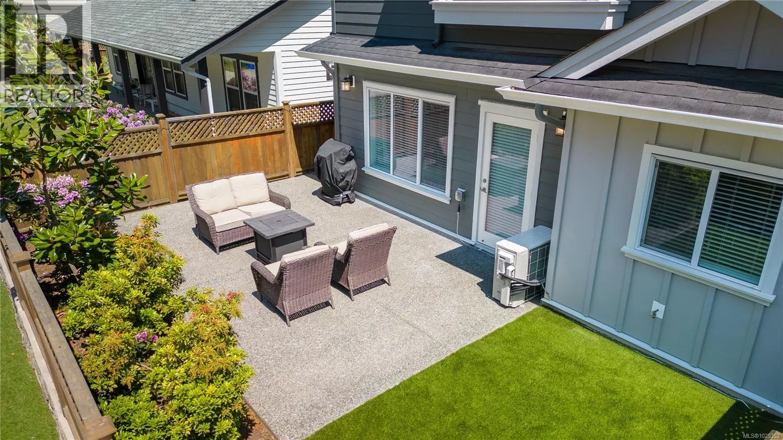 Vacant and ready to move in NOW! Gorgeous 3 bed+3 bath townhouse is just like a duplex - in desirable Lobo Vale Mews! Large FULL-size double car driveway in front of double car garage. Built Green Platinum level with insulated concrete foundations and party walls providing superior safety, sound-proofing and energy efficiency. 9 ft ceilings! Custom-designed kitchen with quartz countertops, stainless steel appliances, soft close hardware, under-cabinet LED lights. Dual-head ductless heat pump with A/C. Plenty of parking options & storage shelves in the garage. Cozy living room with modern fireplace. Lovely, private west-facing fenced back yard! Upstairs, a spacious primary bedroom with large walk-in closet and ensuite with double sinks & walk-in shower; plus two more spacious bedrooms, main bath & separate laundry room with plenty of room for drying and storage. Just off Happy Valley Road, the home is in good proximity to schools and shopping. (id:27476)