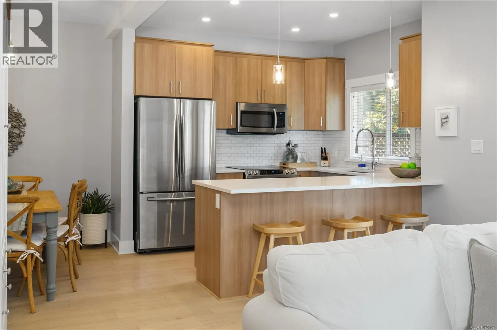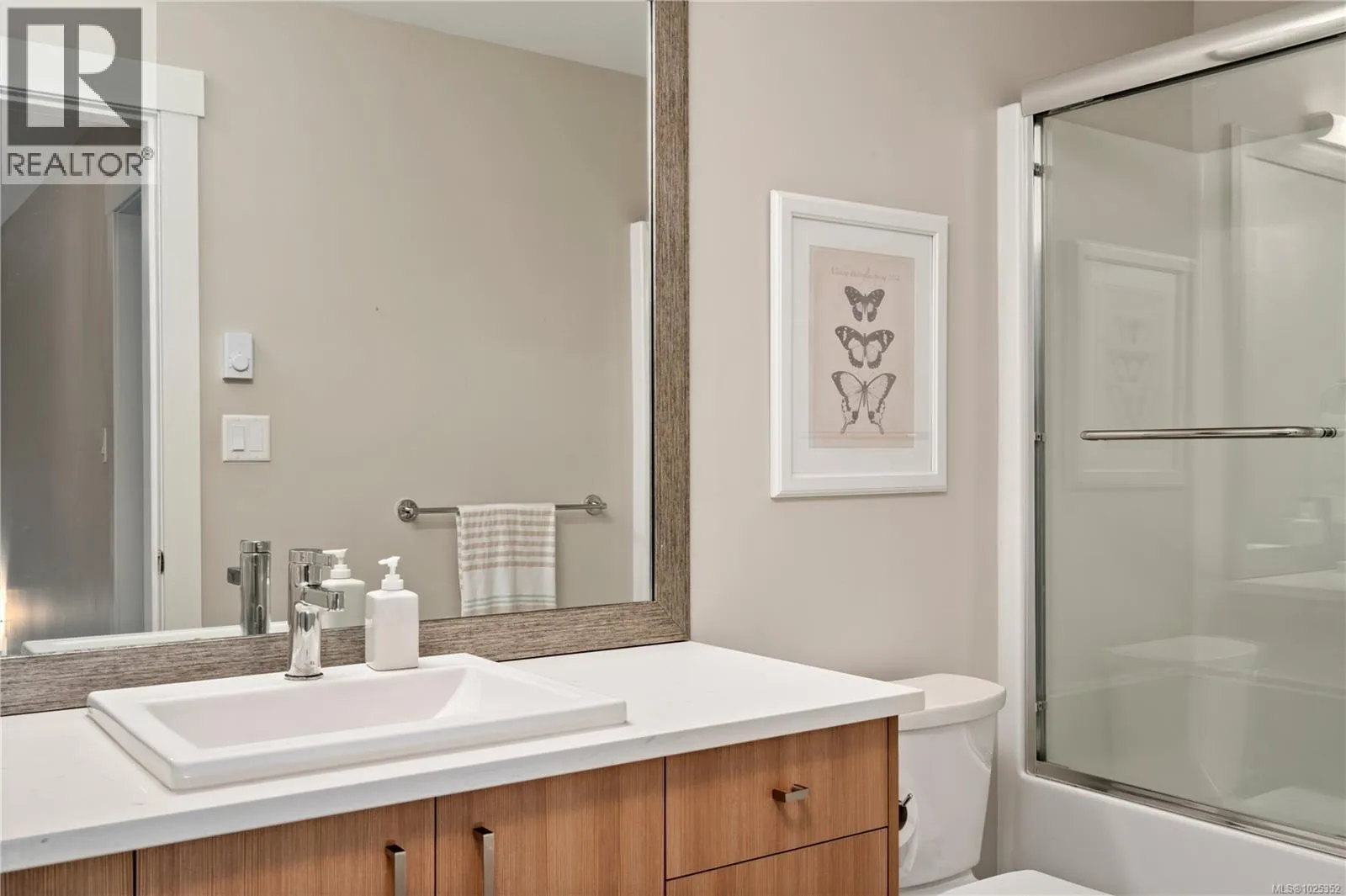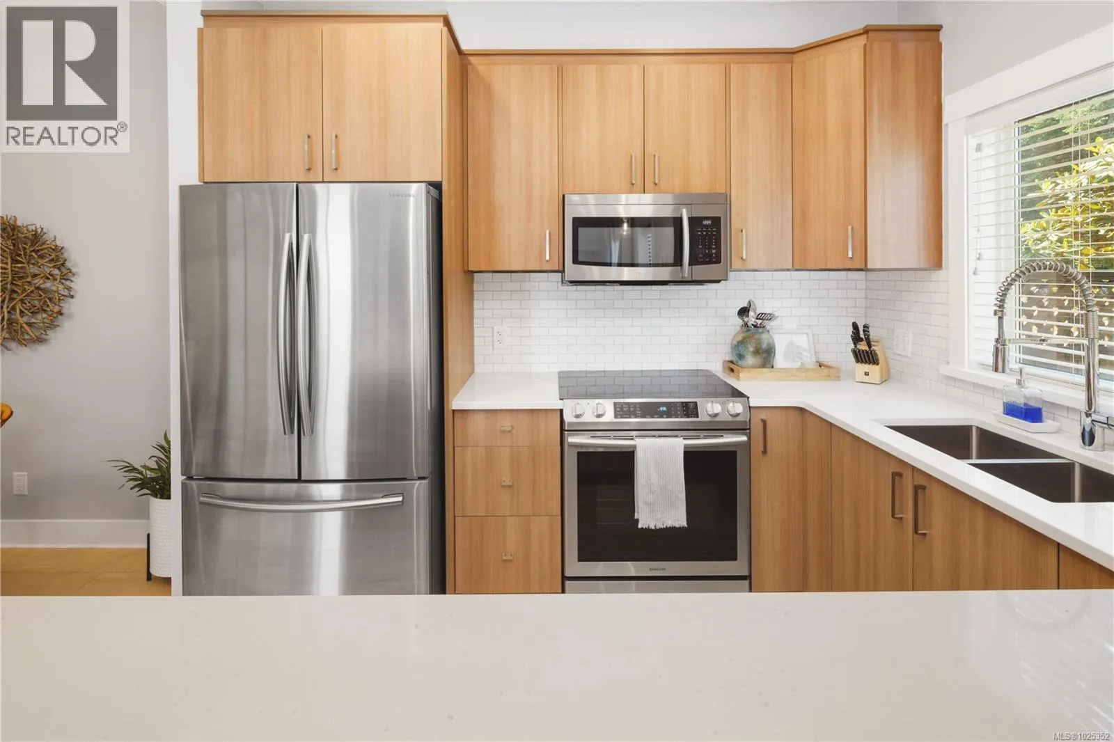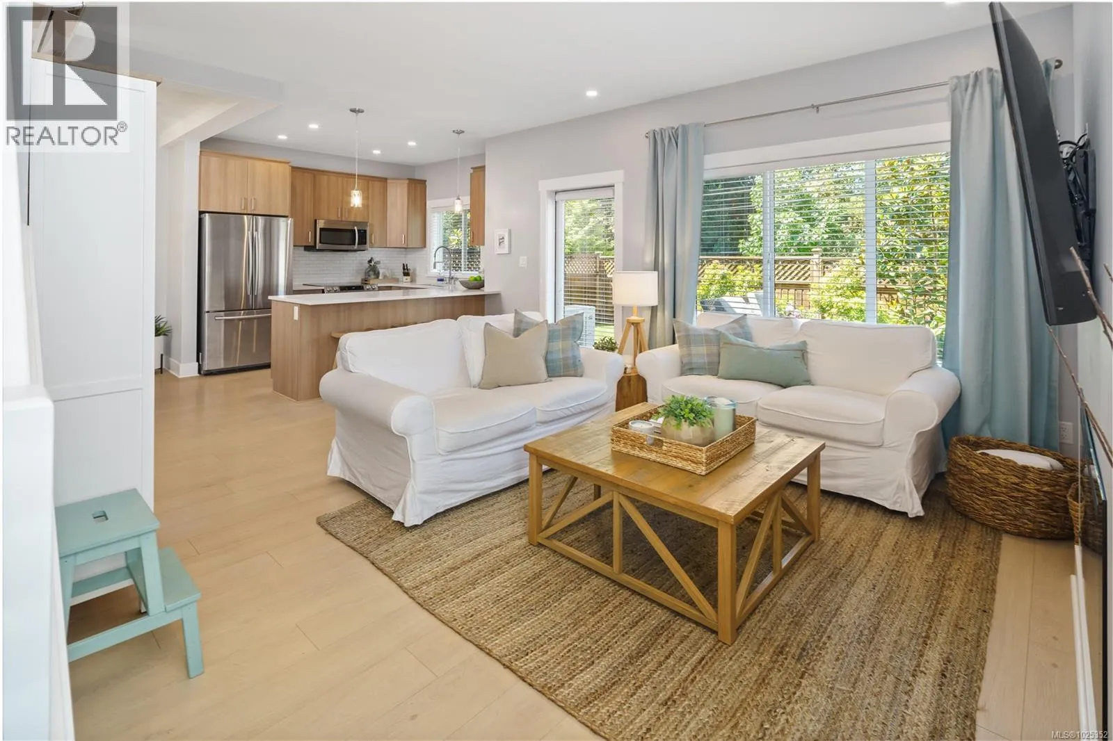 Vacant and ready to move in NOW! Gorgeous 3 bed+3 bath townhouse is just like a duplex - in desirable Lobo Vale Mews! Large FULL-size double car driveway in front of double car garage. Built Green Platinum level with insulated concrete foundations and party walls providing superior safety, sound-proofing and energy efficiency. 9 ft ceilings! Custom-designed kitchen with quartz countertops, stainless steel appliances, soft close hardware, under-cabinet LED lights. Dual-head ductless heat pump with A/C. Plenty of parking options & storage shelves in the garage. Cozy living room with modern fireplace. Lovely, private west-facing fenced back yard! Upstairs, a spacious primary bedroom with large walk-in closet and ensuite with double sinks & walk-in shower; plus two more spacious bedrooms, main bath & separate laundry room with plenty of room for drying and storage. Just off Happy Valley Road, the home is in good proximity to schools and shopping. (id:27476)