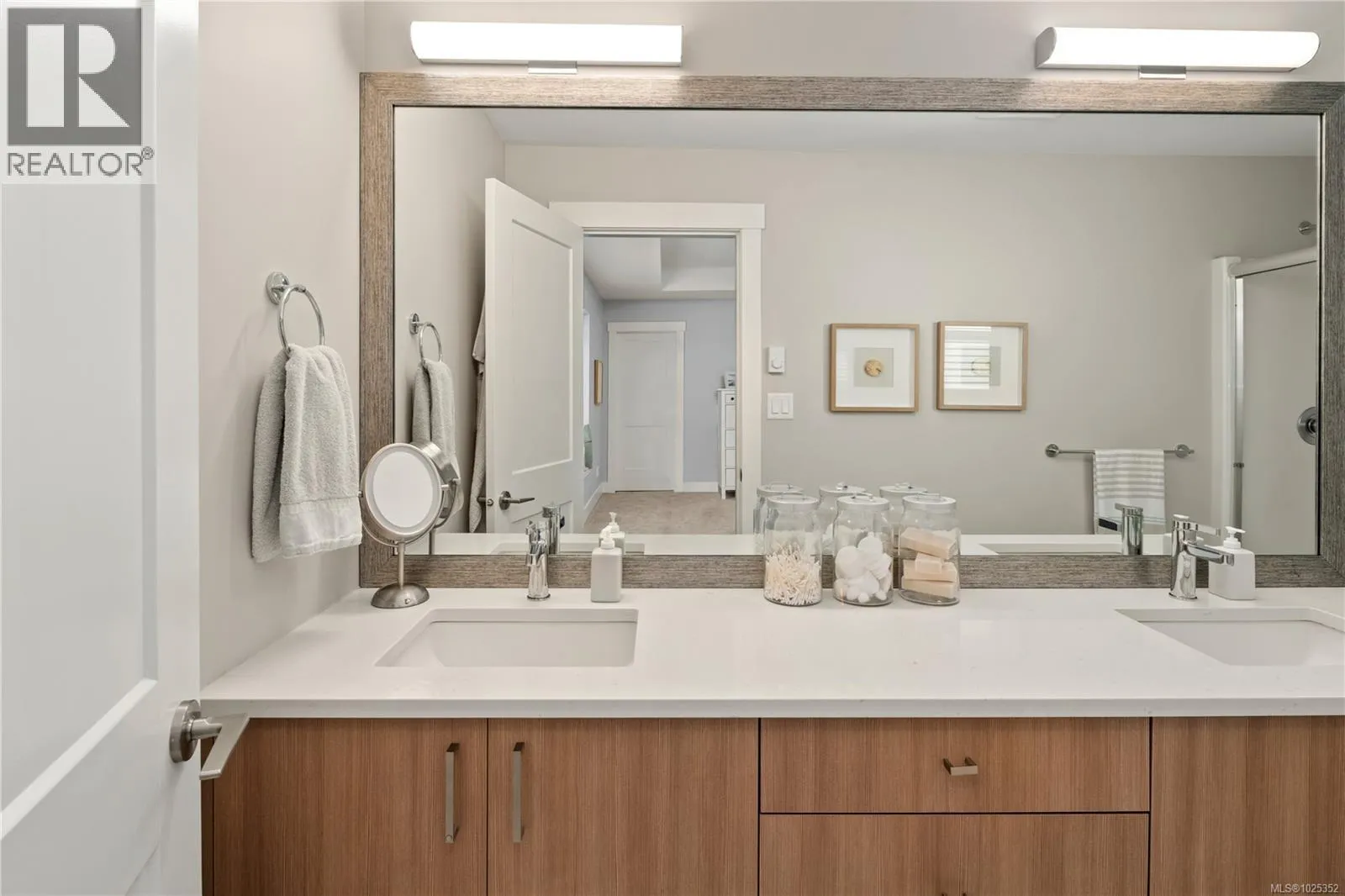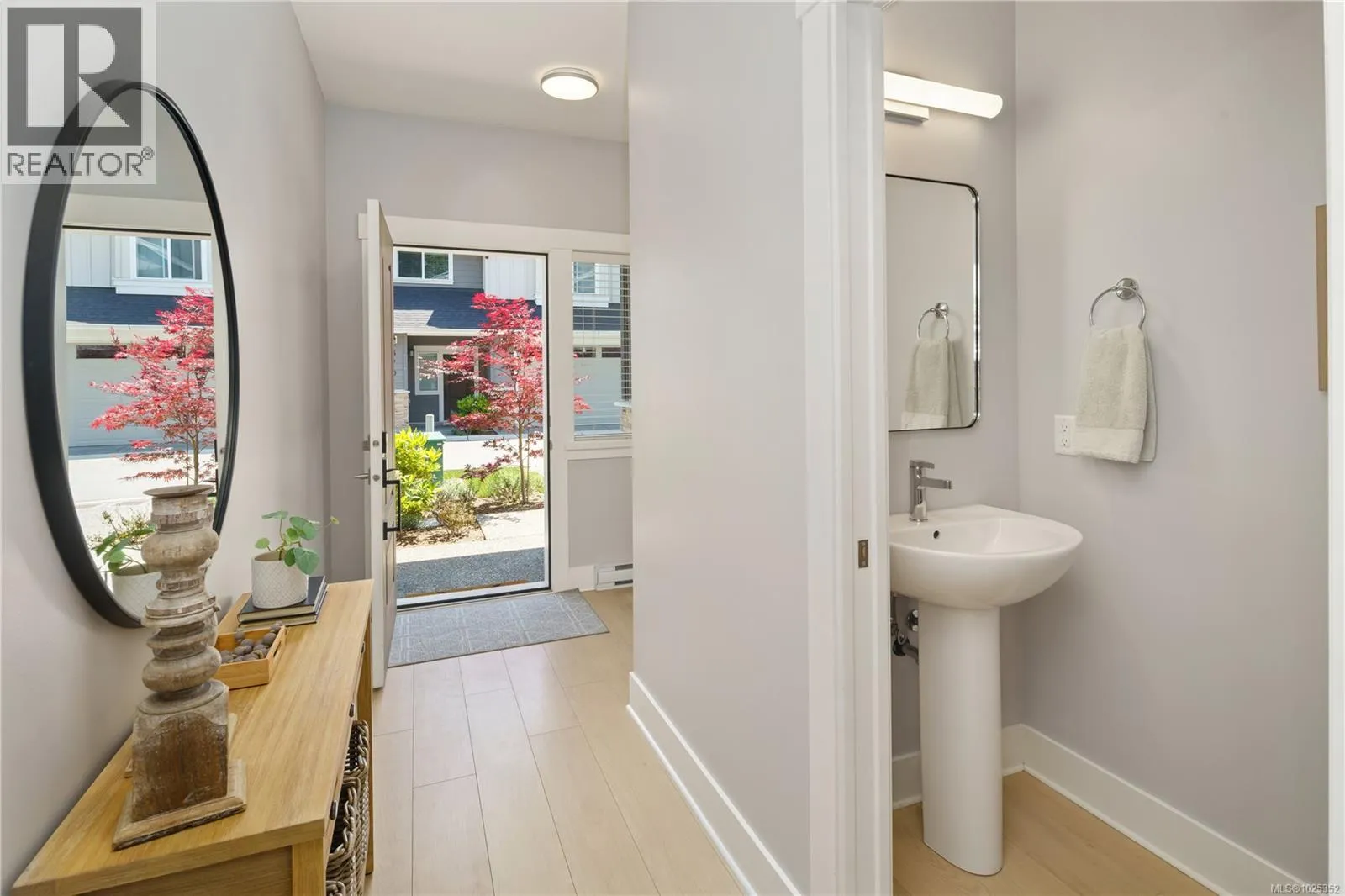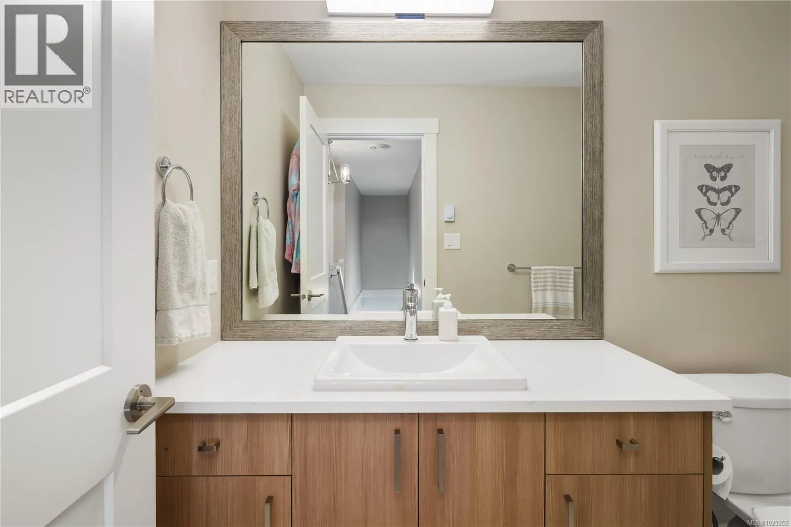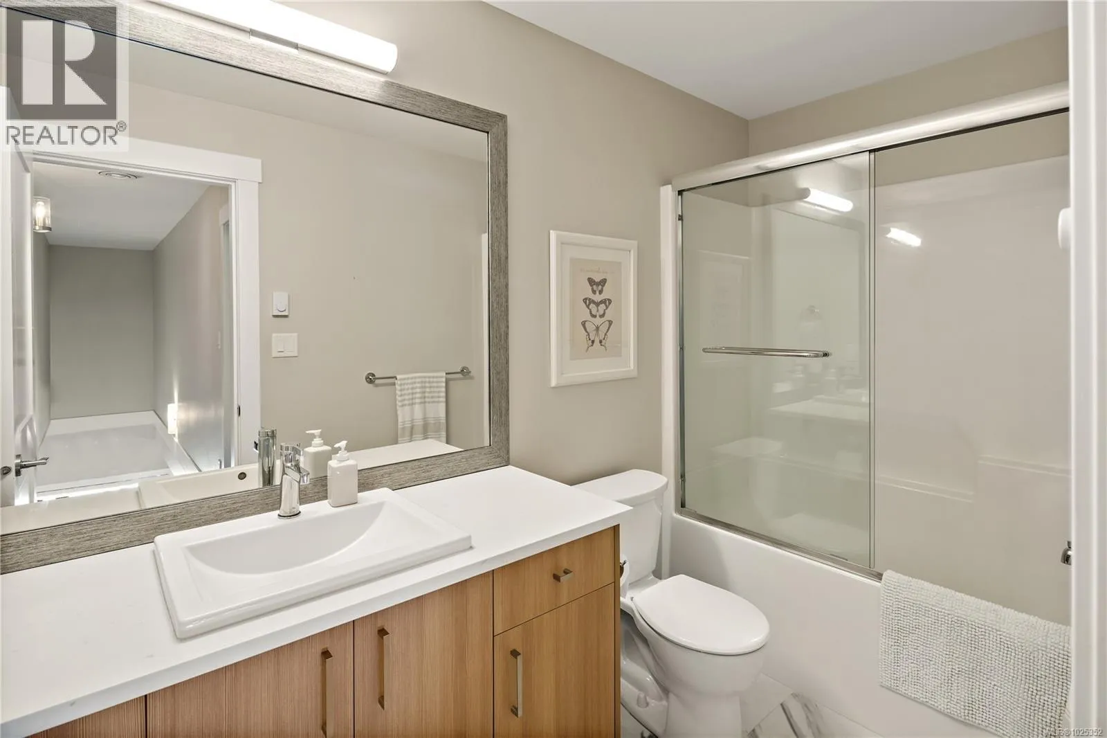 Vacant and ready to move in NOW! Gorgeous 3 bed+3 bath townhouse is just like a duplex - in desirable Lobo Vale Mews! Large FULL-size double car driveway in front of double car garage. Built Green Platinum level with insulated concrete foundations and party walls providing superior safety, sound-proofing and energy efficiency. 9 ft ceilings! Custom-designed kitchen with quartz countertops, stainless steel appliances, soft close hardware, under-cabinet LED lights. Dual-head ductless heat pump with A/C. Plenty of parking options & storage shelves in the garage. Cozy living room with modern fireplace. Lovely, private west-facing fenced back yard! Upstairs, a spacious primary bedroom with large walk-in closet and ensuite with double sinks & walk-in shower; plus two more spacious bedrooms, main bath & separate laundry room with plenty of room for drying and storage. Just off Happy Valley Road, the home is in good proximity to schools and shopping. (id:27476)