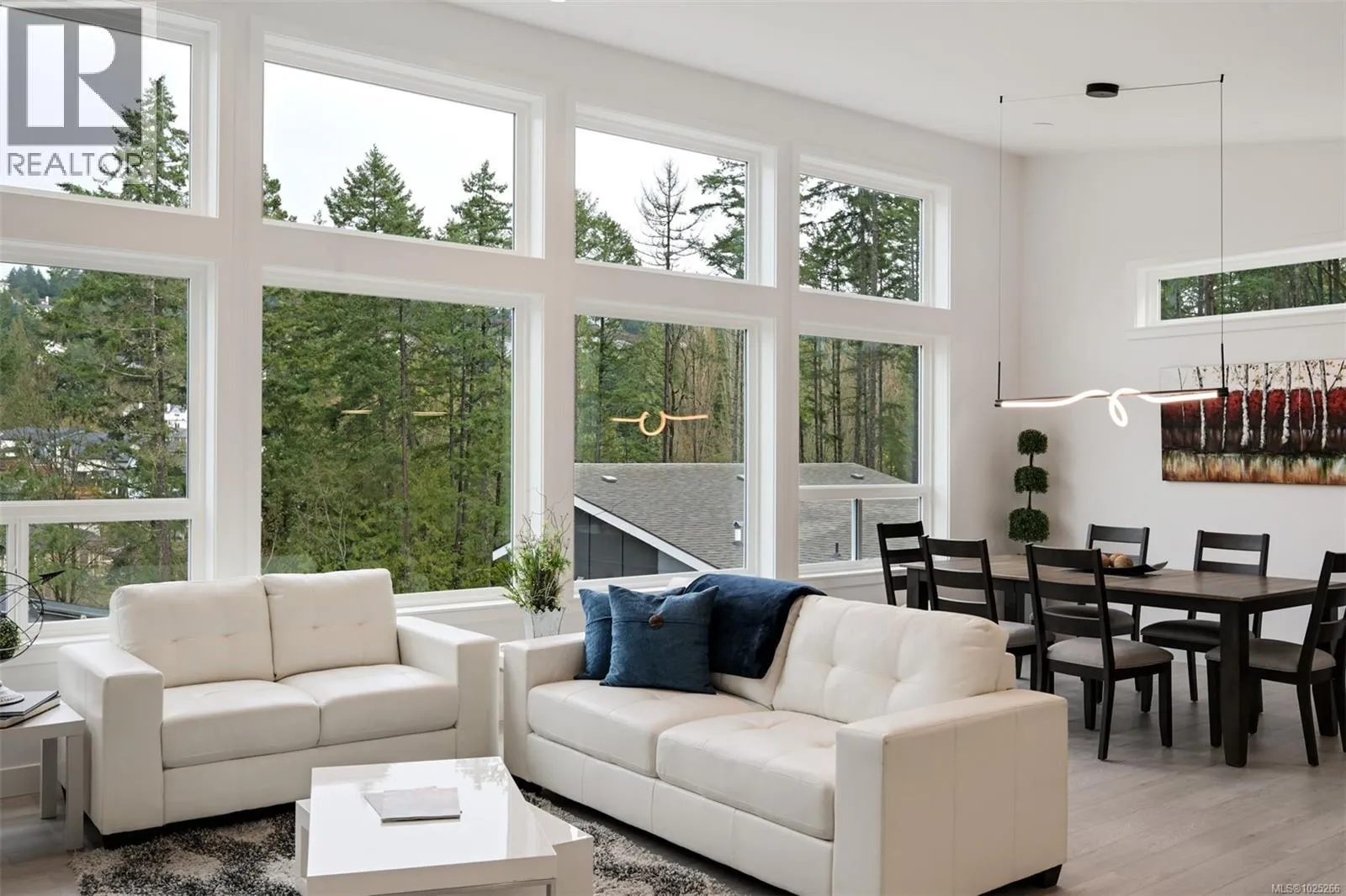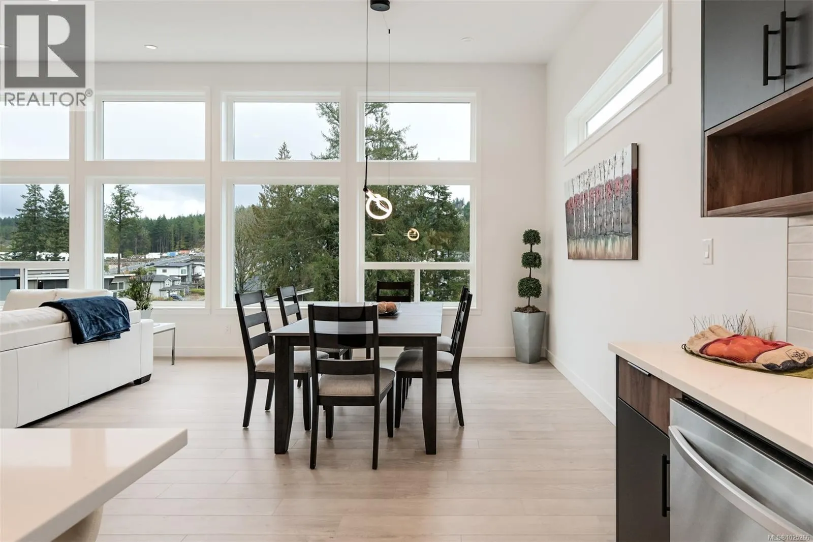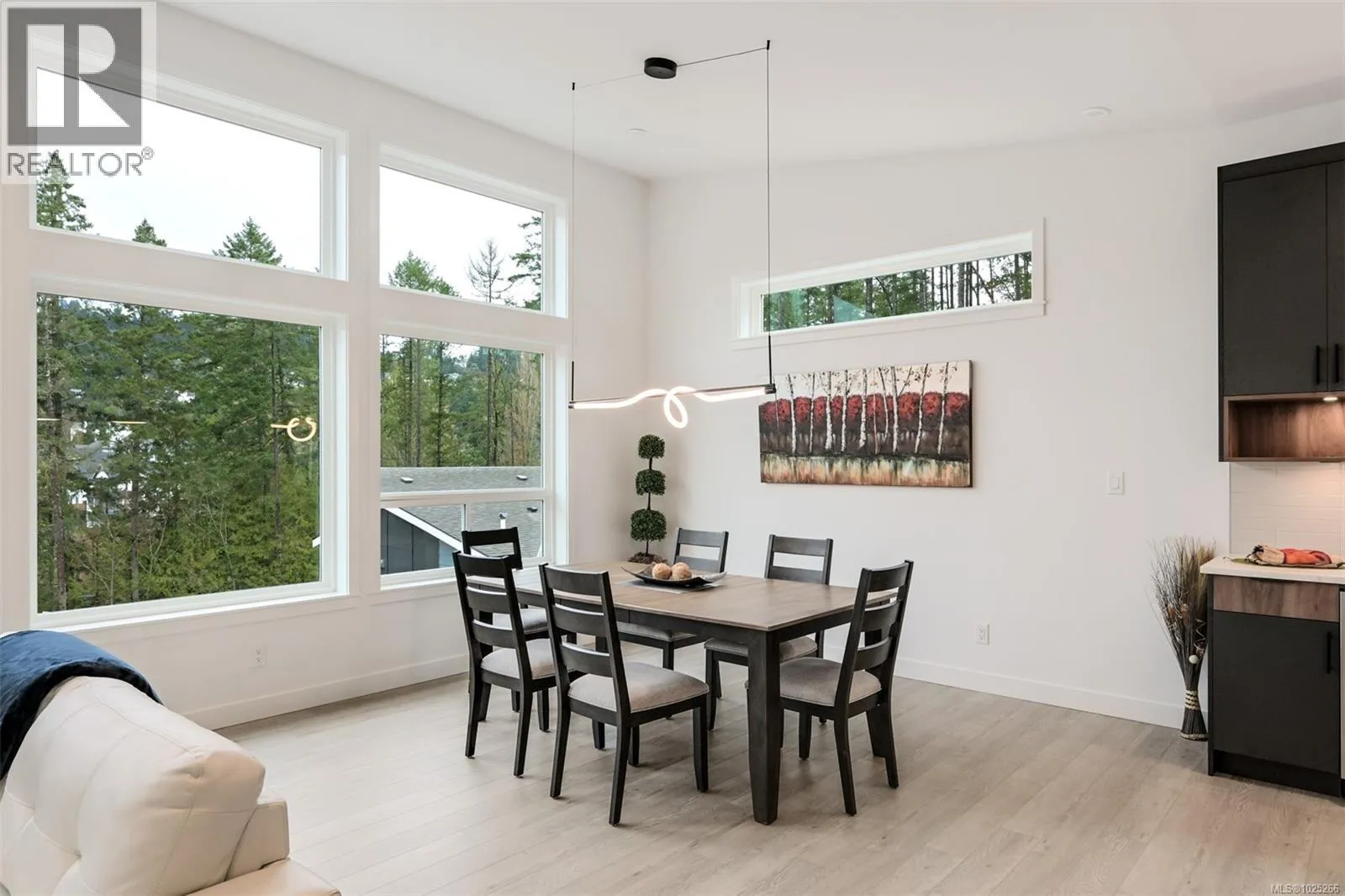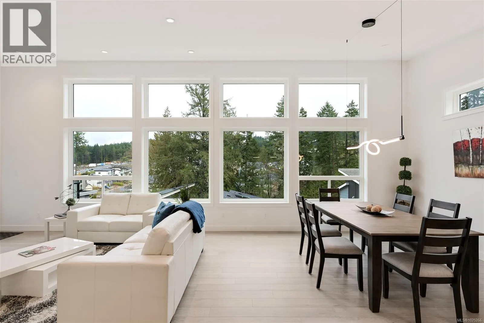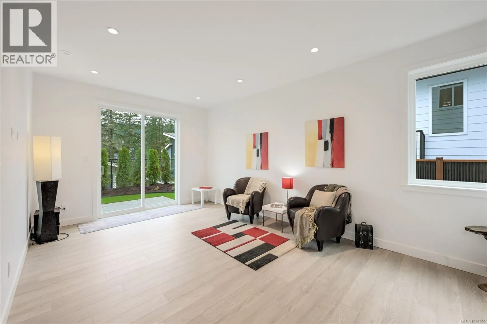 Welcome to The Heights, a boutique, controlled subdivision in Langfordâs desirable Olympic View area. Move-in ready, this newly completed 2,294 sq ft Hudson floor plan offers a reverse living layout intended for a modern, low-maintenance lifestyle. The upper level is designed for entertaining, featuring a modern kitchen, open living and dining areas filled with natural light, and elevated views toward Triangle Mountain. The lower level offers three bedrooms and a family or media room with walk-out access to a private, fenced, low-maintenance backyard, well suited for families. The primary bedroom also enjoys direct access to a covered patio, creating a quiet space to relax. Additional highlights include a double-car garage with dedicated EV charger, modern lighting, durable vinyl flooring throughout, and an energy-efficient heating and cooling system with HRV, built to meet STEP 4 BC Energy Code requirements. The Heights offers distinctive floor plans, including suite options, within a controlled boutique community close to golf, trails, beaches, shopping, and a new elementary school just across the street (opened September 2025). Plus GST. New Home Warranty. (id:27476)