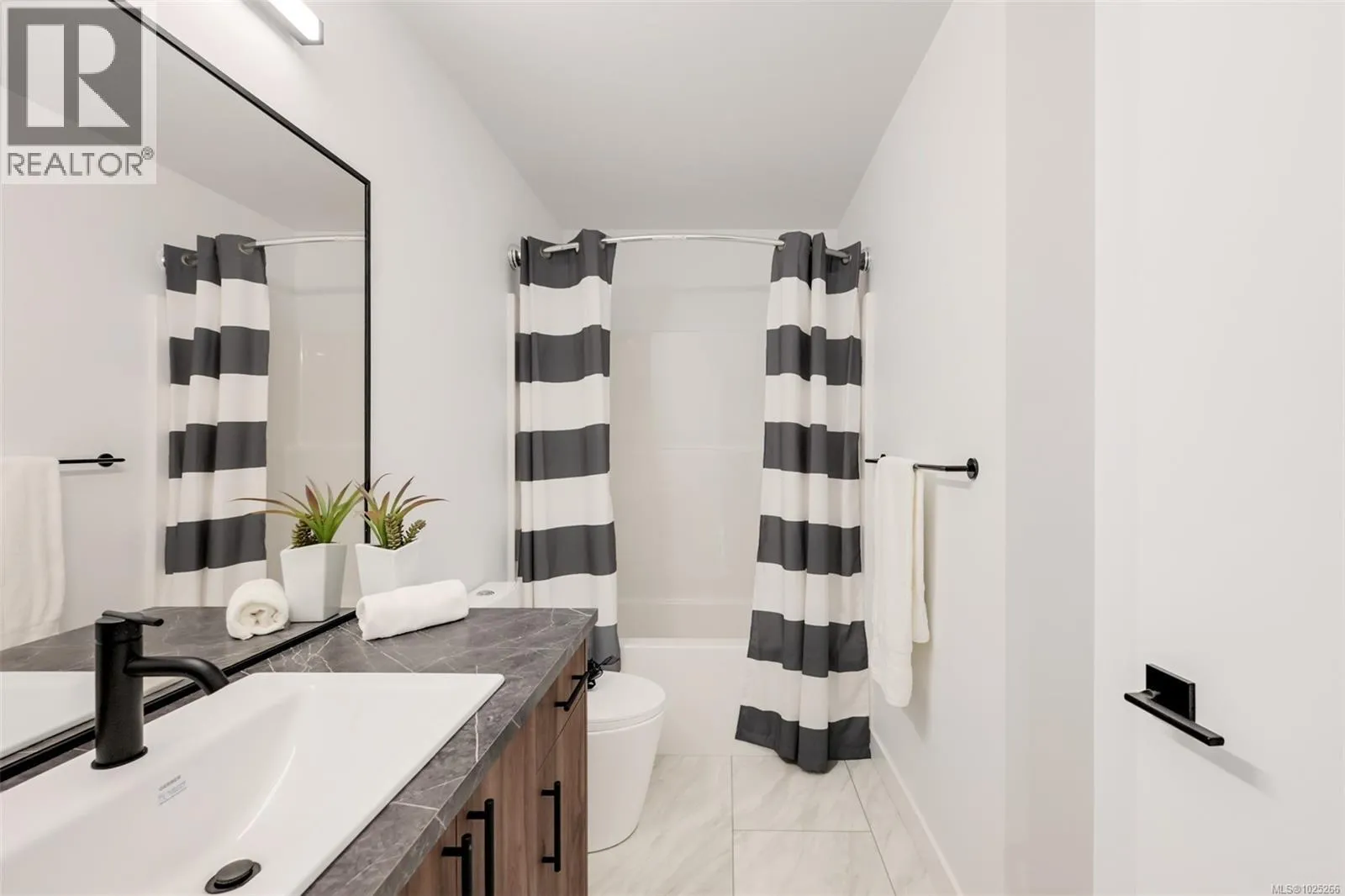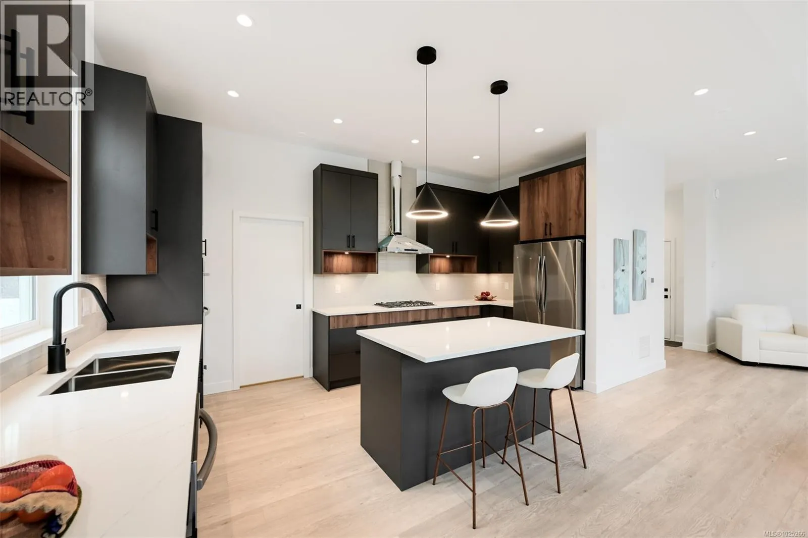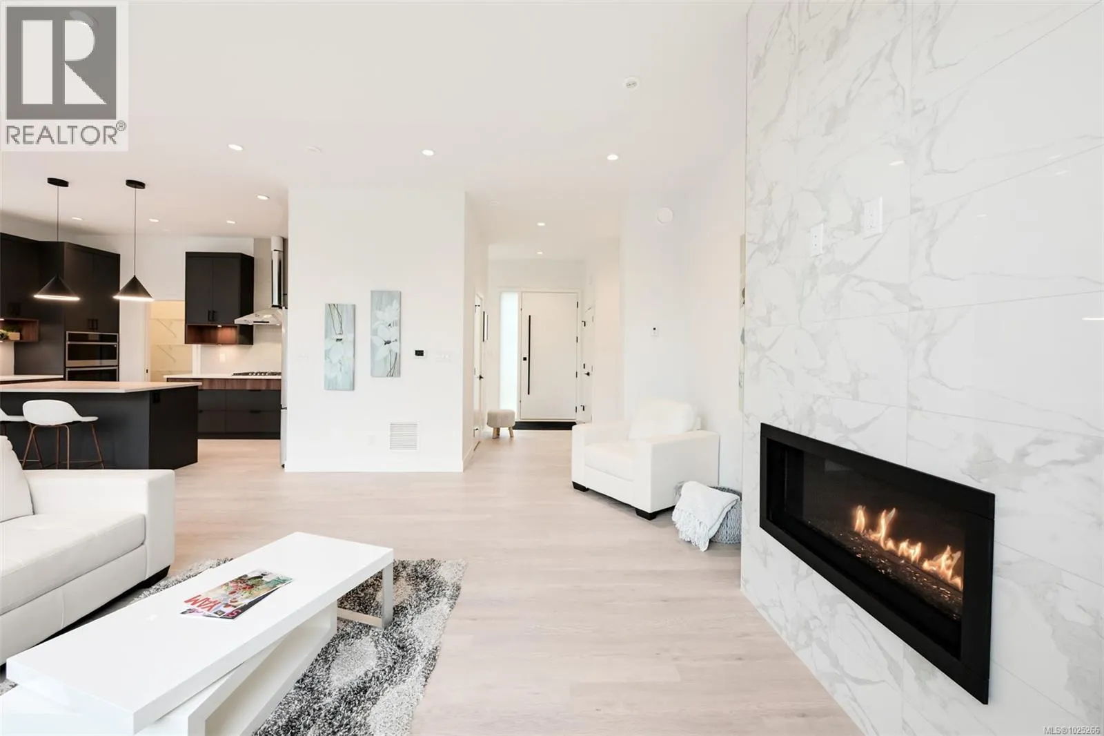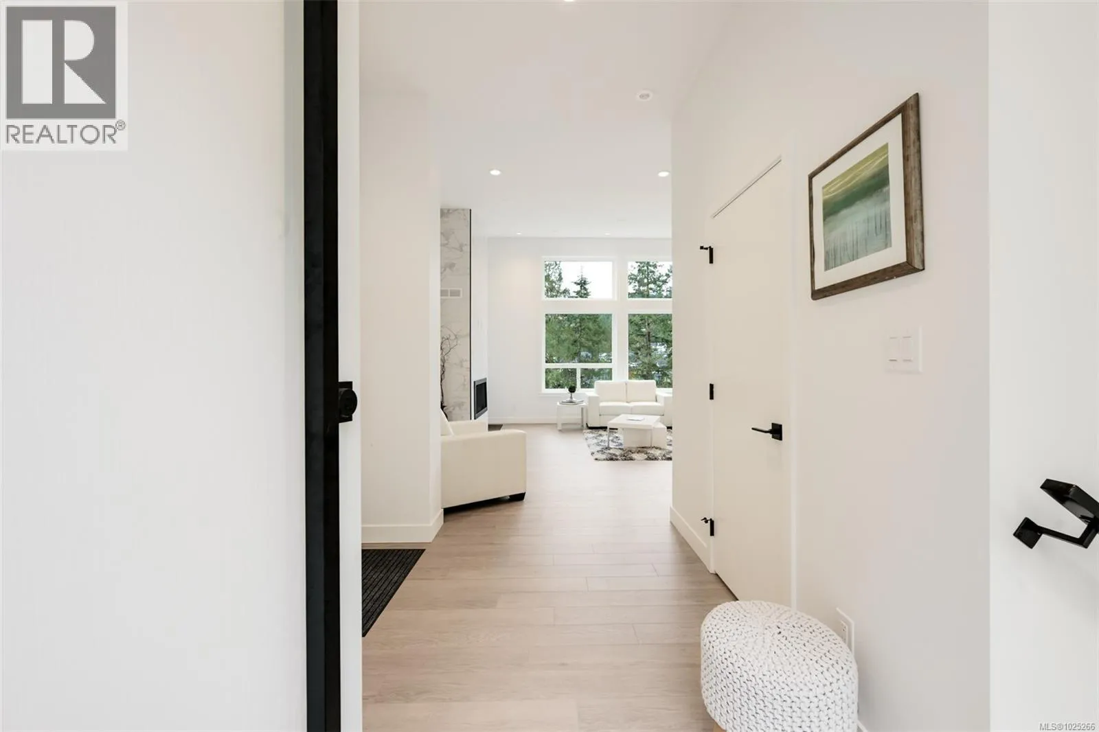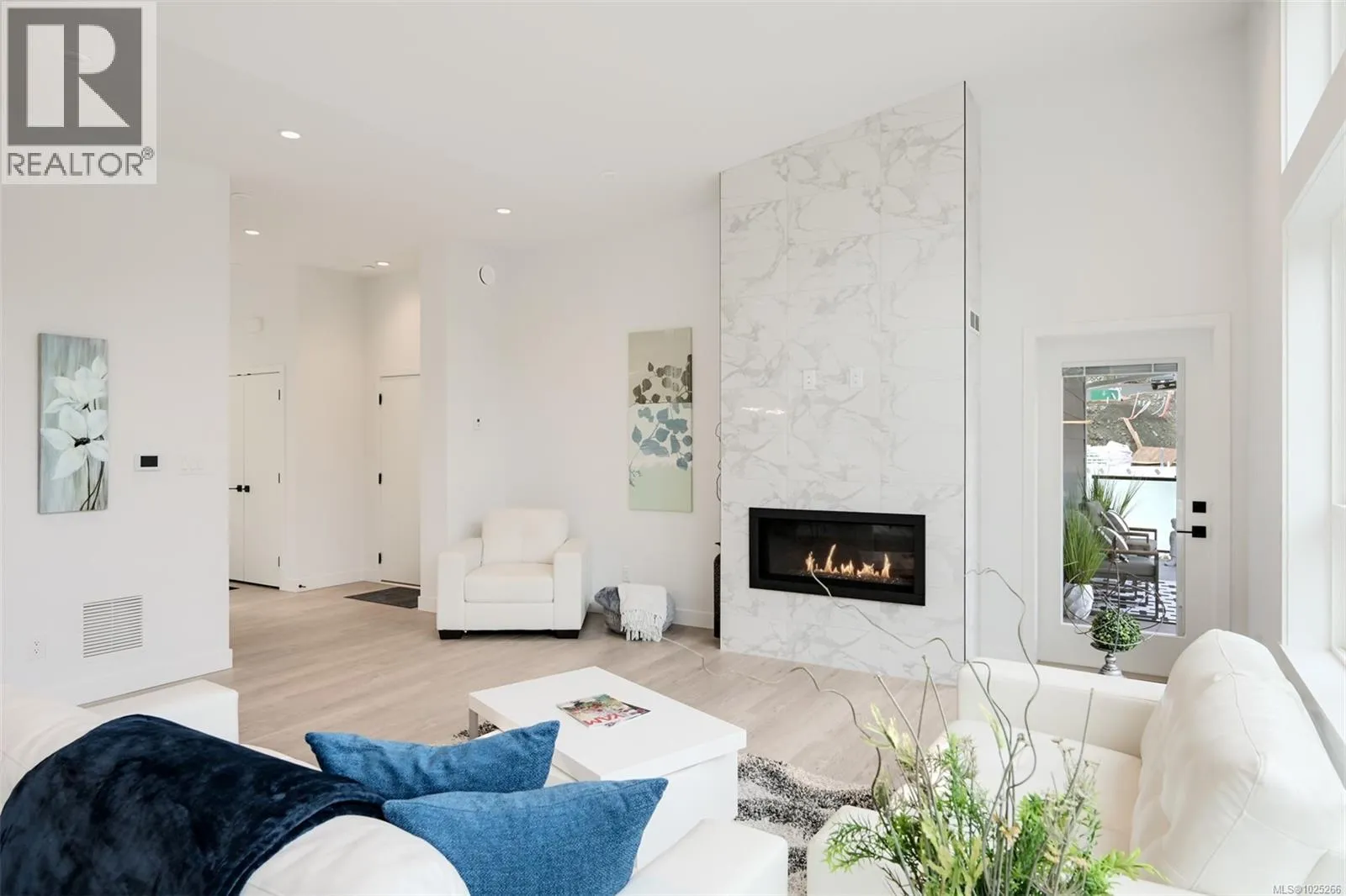 Welcome to The Heights, a boutique, controlled subdivision in Langfordâs desirable Olympic View area. Move-in ready, this newly completed 2,294 sq ft Hudson floor plan offers a reverse living layout intended for a modern, low-maintenance lifestyle. The upper level is designed for entertaining, featuring a modern kitchen, open living and dining areas filled with natural light, and elevated views toward Triangle Mountain. The lower level offers three bedrooms and a family or media room with walk-out access to a private, fenced, low-maintenance backyard, well suited for families. The primary bedroom also enjoys direct access to a covered patio, creating a quiet space to relax. Additional highlights include a double-car garage with dedicated EV charger, modern lighting, durable vinyl flooring throughout, and an energy-efficient heating and cooling system with HRV, built to meet STEP 4 BC Energy Code requirements. The Heights offers distinctive floor plans, including suite options, within a controlled boutique community close to golf, trails, beaches, shopping, and a new elementary school just across the street (opened September 2025). Plus GST. New Home Warranty. (id:27476)
