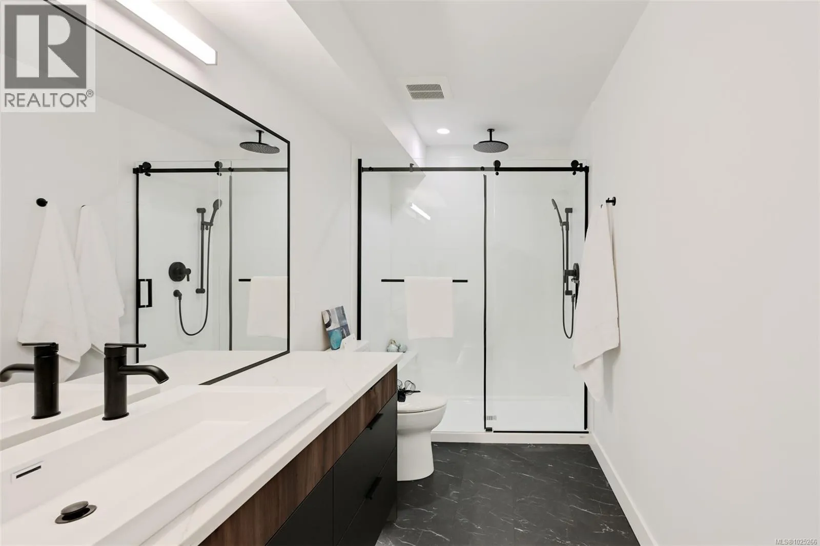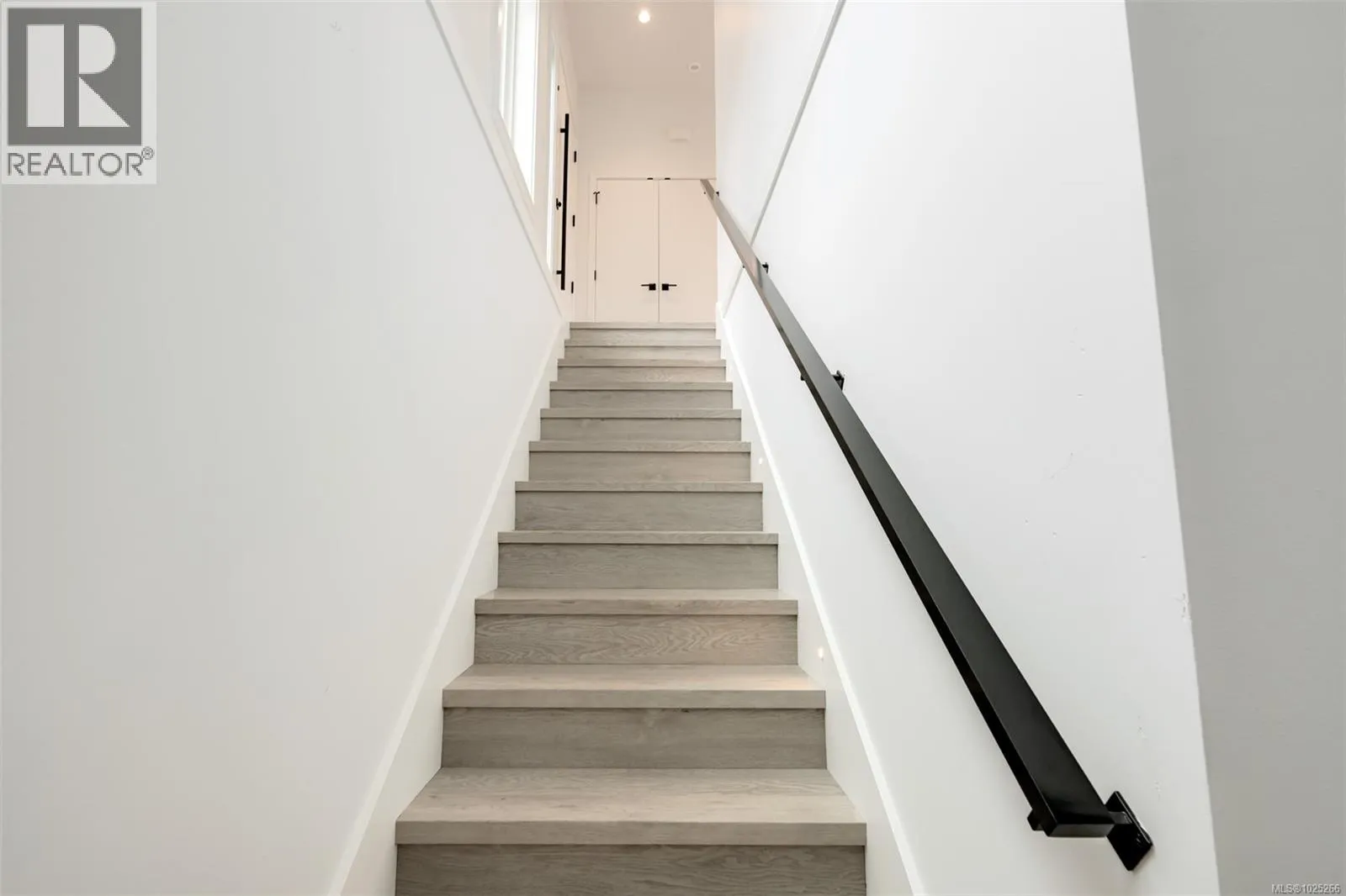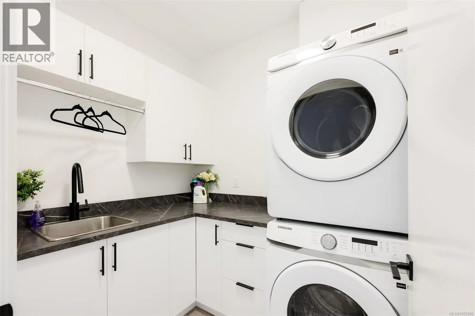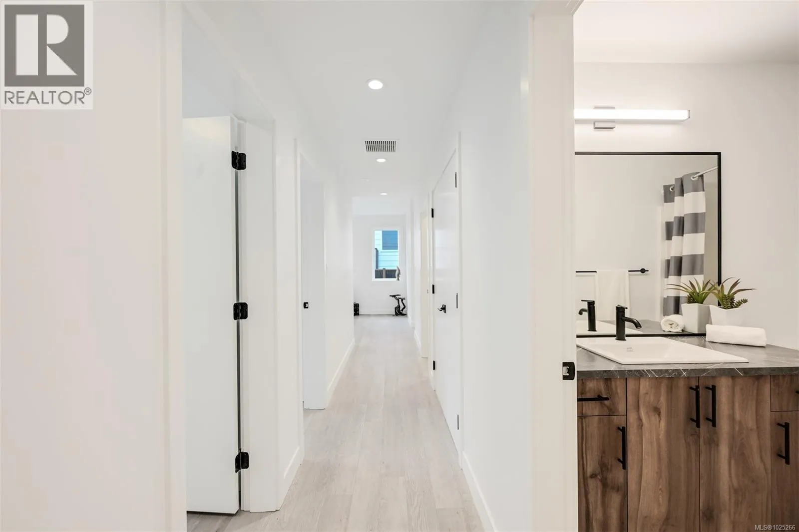 Welcome to The Heights, a boutique, controlled subdivision in Langfordâs desirable Olympic View area. Move-in ready, this newly completed 2,294 sq ft Hudson floor plan offers a reverse living layout intended for a modern, low-maintenance lifestyle. The upper level is designed for entertaining, featuring a modern kitchen, open living and dining areas filled with natural light, and elevated views toward Triangle Mountain. The lower level offers three bedrooms and a family or media room with walk-out access to a private, fenced, low-maintenance backyard, well suited for families. The primary bedroom also enjoys direct access to a covered patio, creating a quiet space to relax. Additional highlights include a double-car garage with dedicated EV charger, modern lighting, durable vinyl flooring throughout, and an energy-efficient heating and cooling system with HRV, built to meet STEP 4 BC Energy Code requirements. The Heights offers distinctive floor plans, including suite options, within a controlled boutique community close to golf, trails, beaches, shopping, and a new elementary school just across the street (opened September 2025). Plus GST. New Home Warranty. (id:27476)
