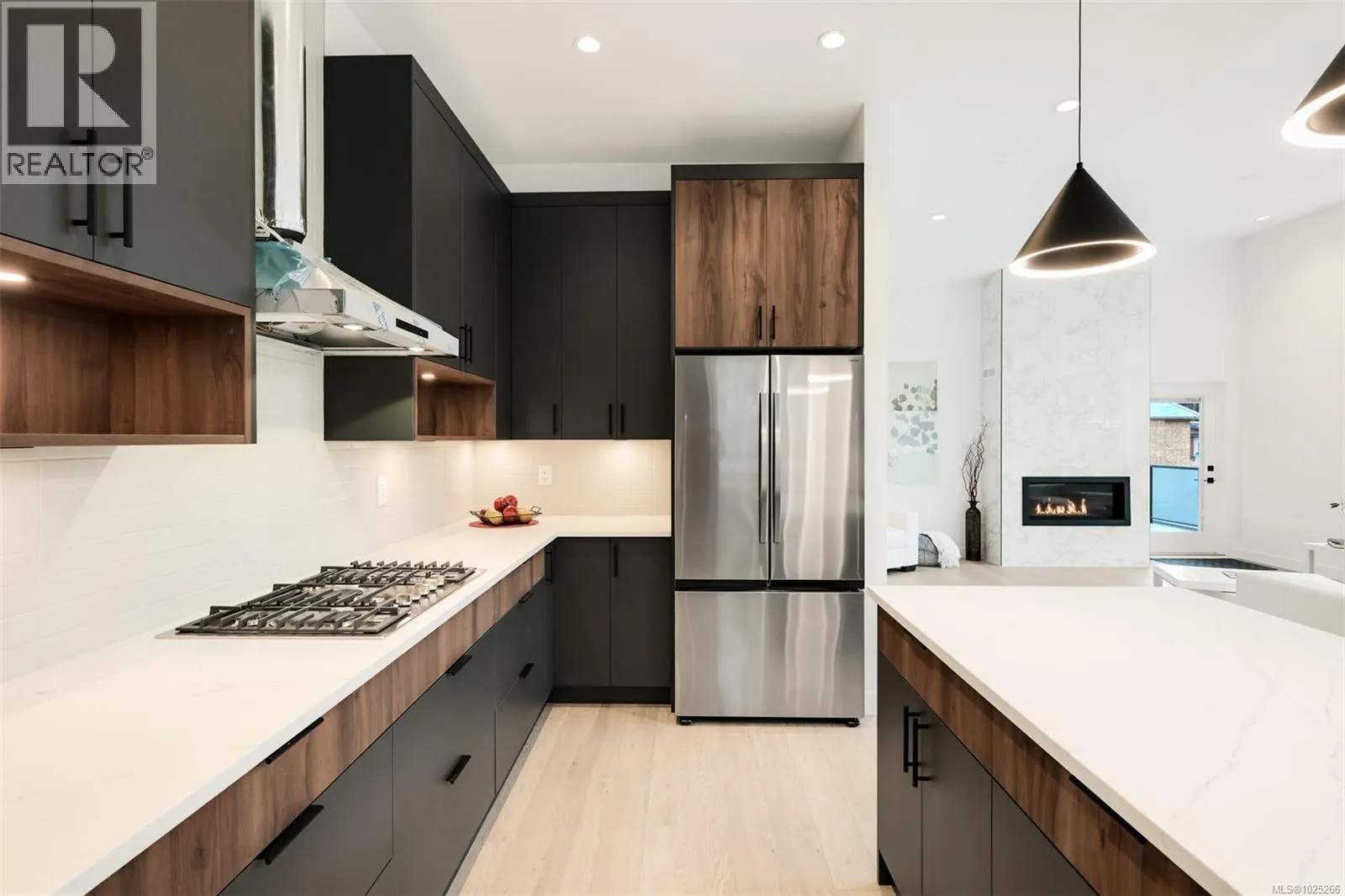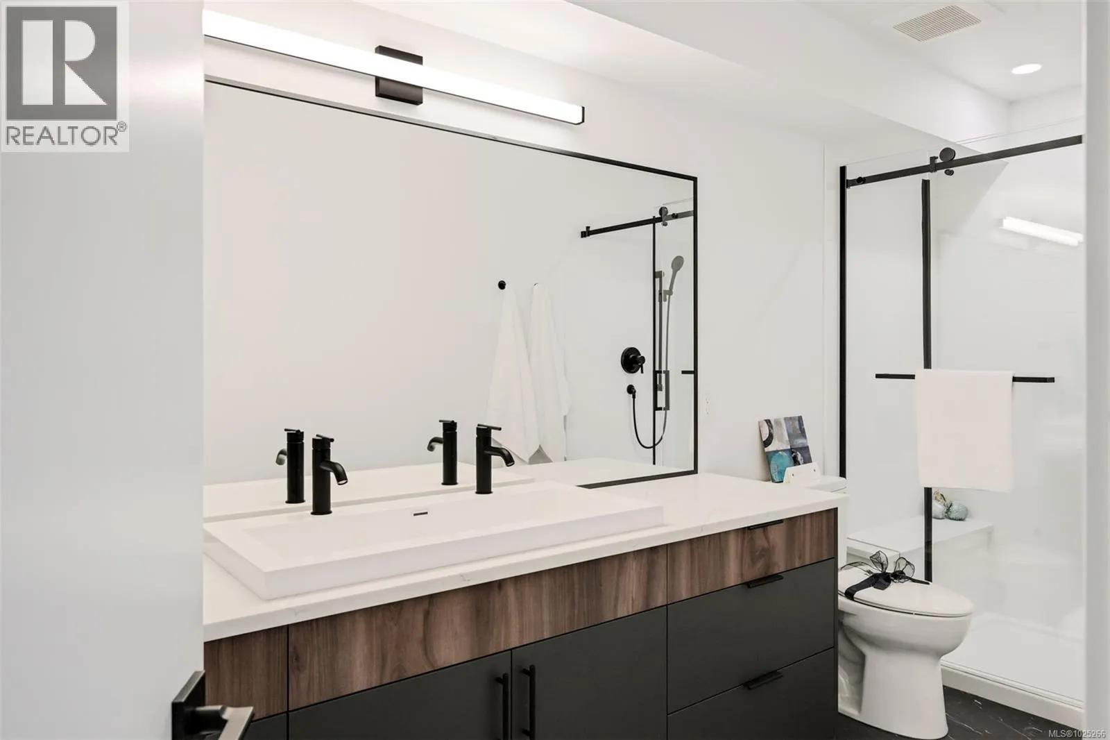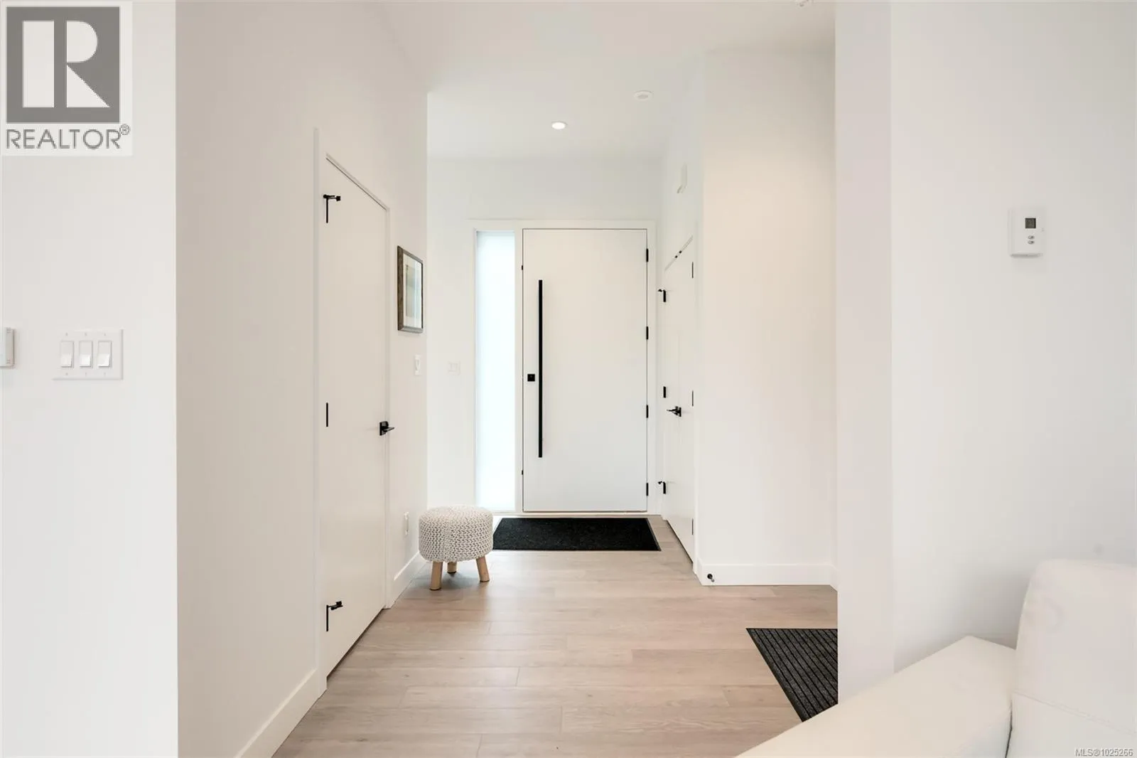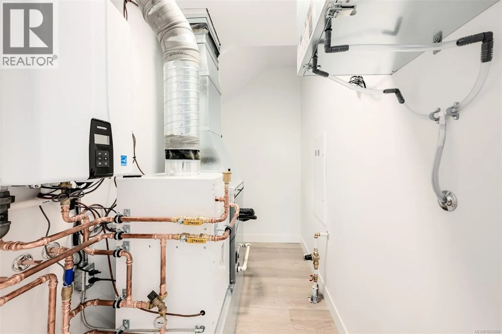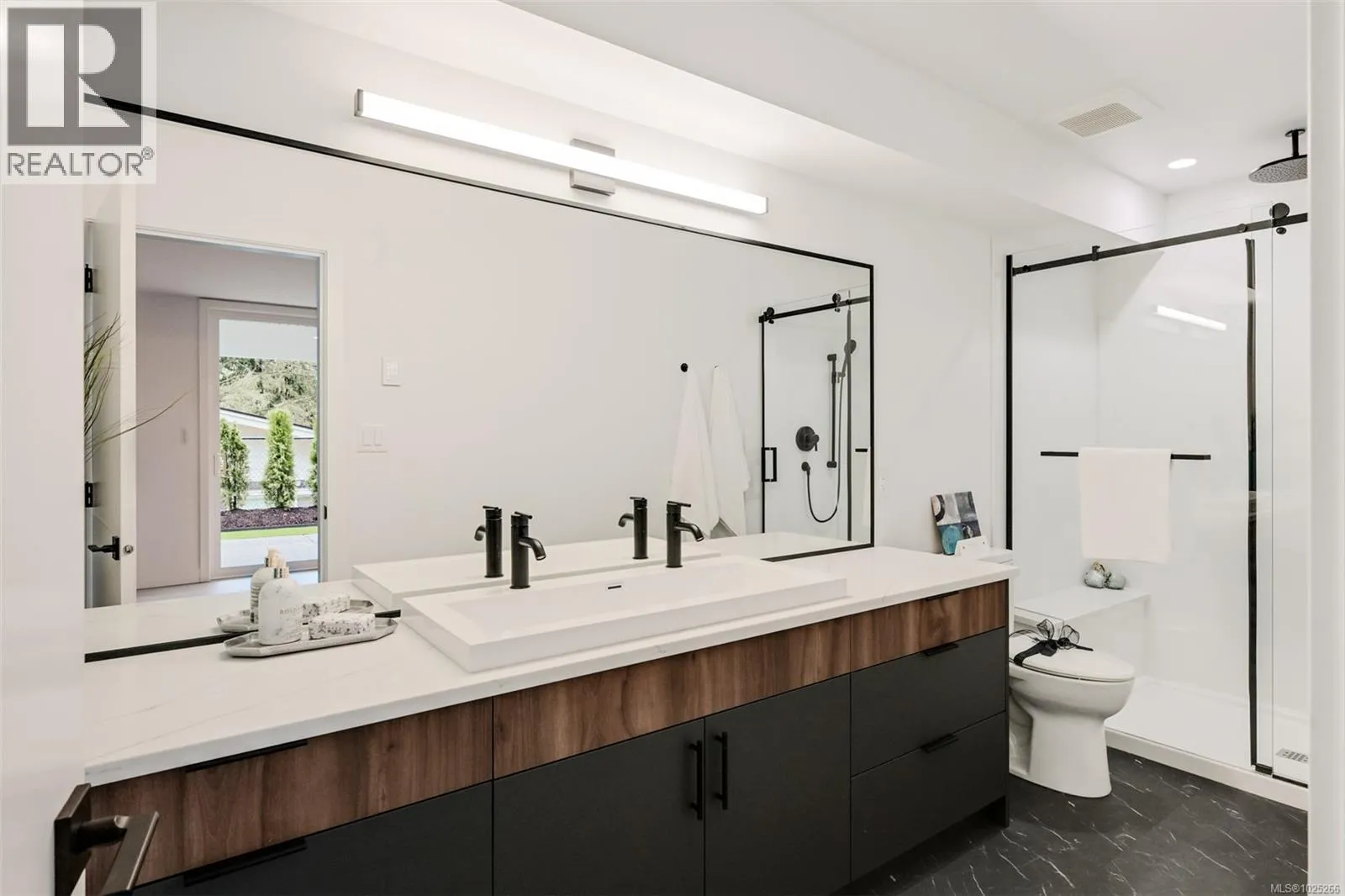 Welcome to The Heights, a boutique, controlled subdivision in Langfordâs desirable Olympic View area. Move-in ready, this newly completed 2,294 sq ft Hudson floor plan offers a reverse living layout intended for a modern, low-maintenance lifestyle. The upper level is designed for entertaining, featuring a modern kitchen, open living and dining areas filled with natural light, and elevated views toward Triangle Mountain. The lower level offers three bedrooms and a family or media room with walk-out access to a private, fenced, low-maintenance backyard, well suited for families. The primary bedroom also enjoys direct access to a covered patio, creating a quiet space to relax. Additional highlights include a double-car garage with dedicated EV charger, modern lighting, durable vinyl flooring throughout, and an energy-efficient heating and cooling system with HRV, built to meet STEP 4 BC Energy Code requirements. The Heights offers distinctive floor plans, including suite options, within a controlled boutique community close to golf, trails, beaches, shopping, and a new elementary school just across the street (opened September 2025). Plus GST. New Home Warranty. (id:27476)