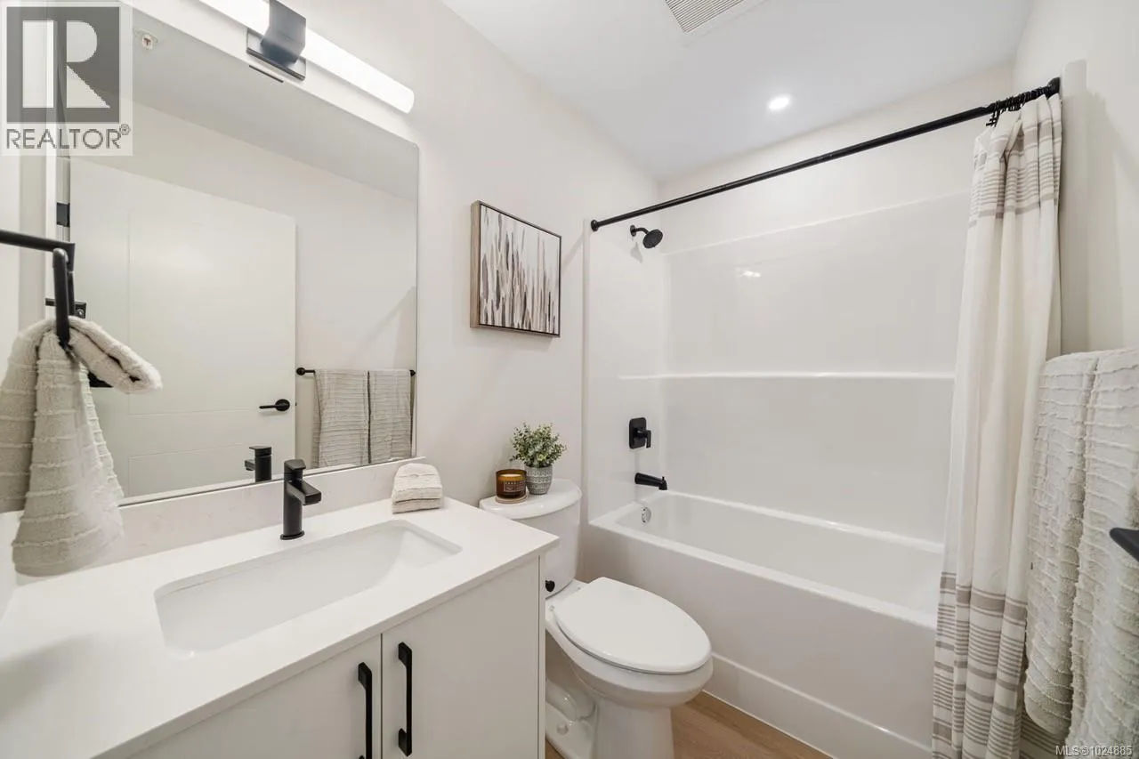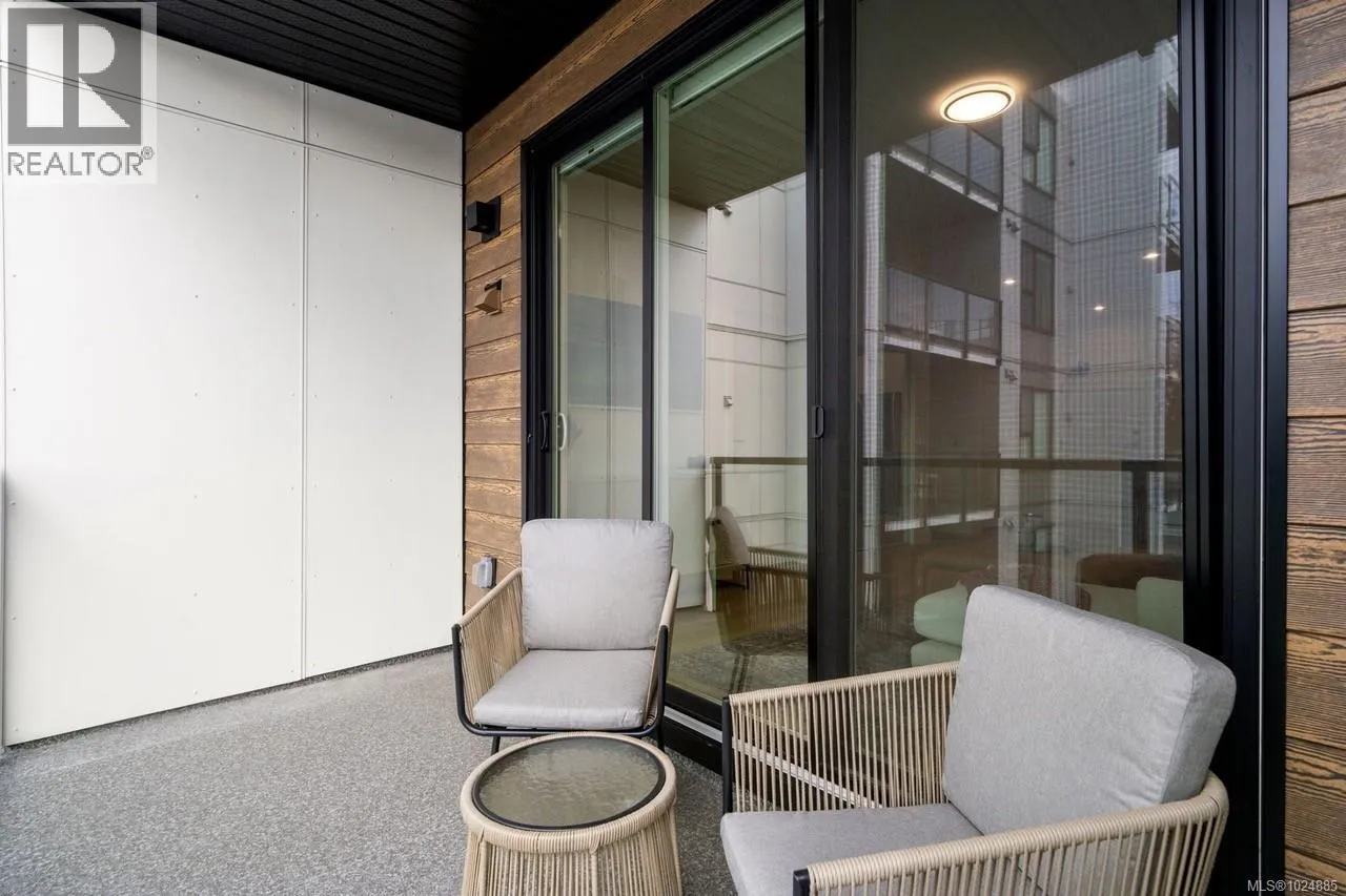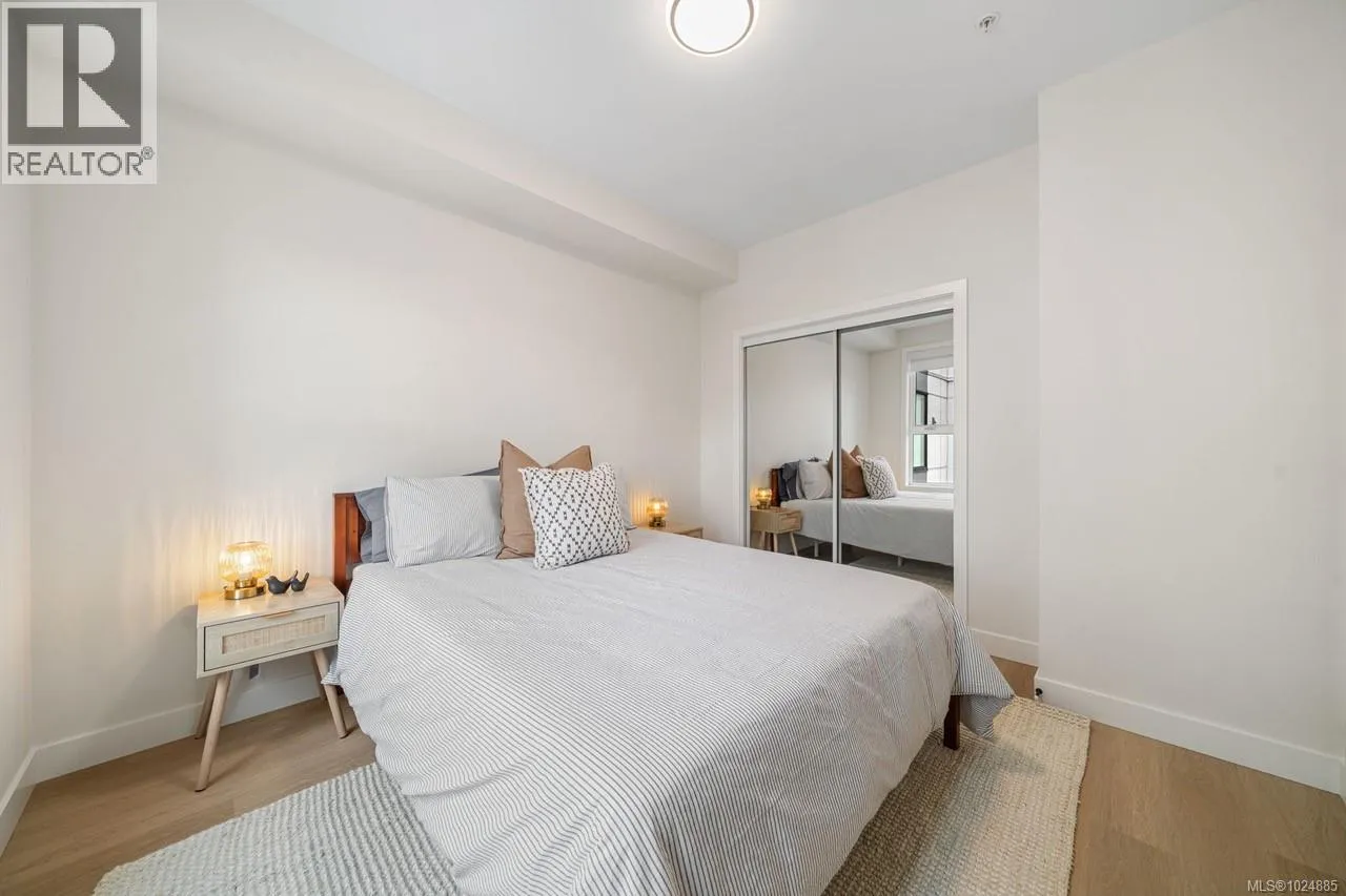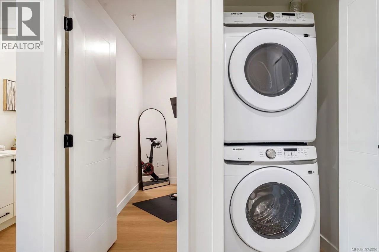 Price includes GST! Viking Properties has a stellar reputation for high quality and for its soundproof construction. Located on the 4th Floor â brand new, bright unit featuring 1 bedroom, 1 den, 1 bathroom and ample closet space. Heat pump for cost-efficient heating and cooling. Den is well suited for a home office, reading area, exercise room, pantry or storage. West-facing balcony provides additional living space. Stainless kitchen appliances including dishwasher, fridge with ice maker, stove, microwave and in-suite laundry. Décor includes 9-foot ceilings, wide plank luxury vinyl flooring, quartz countertops and soft-close contemporary cabinetry. Matte black finishes, faucets and fixtures. Secured parking for one vehicle and covered guest parking at side of building. Conveniently located being minutes away from the highway, Costco and downtown Langford. Two bedroom units also available! (id:27476)