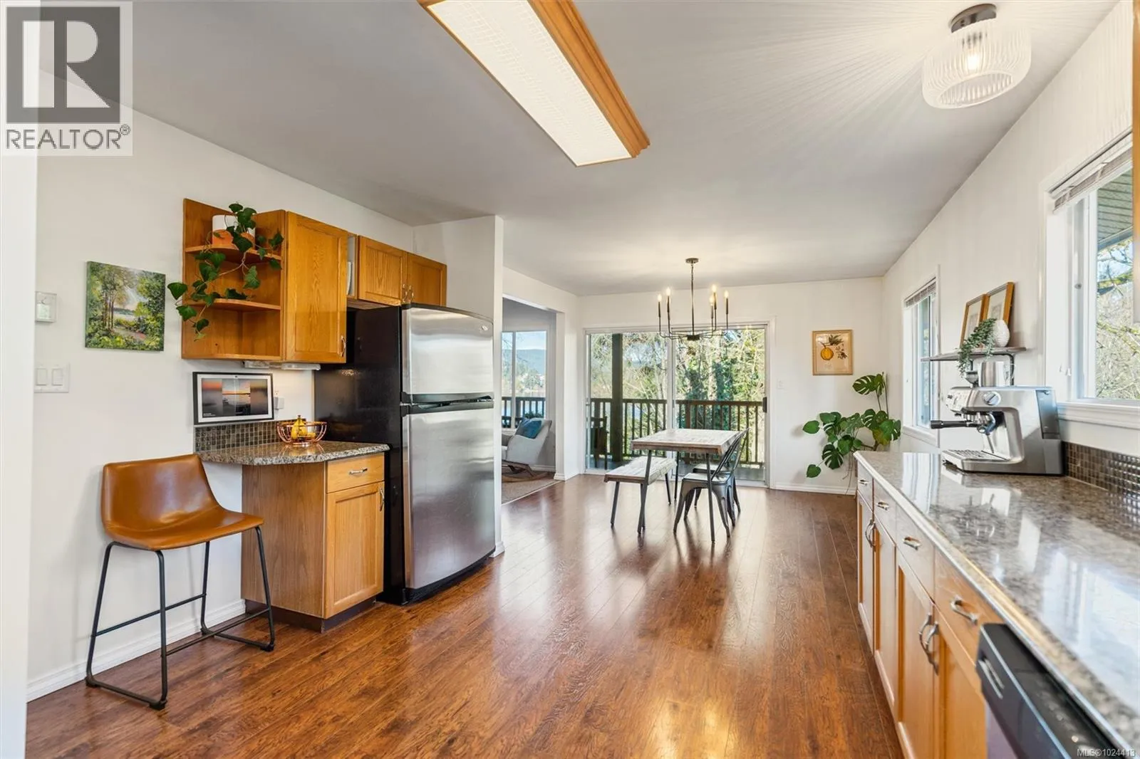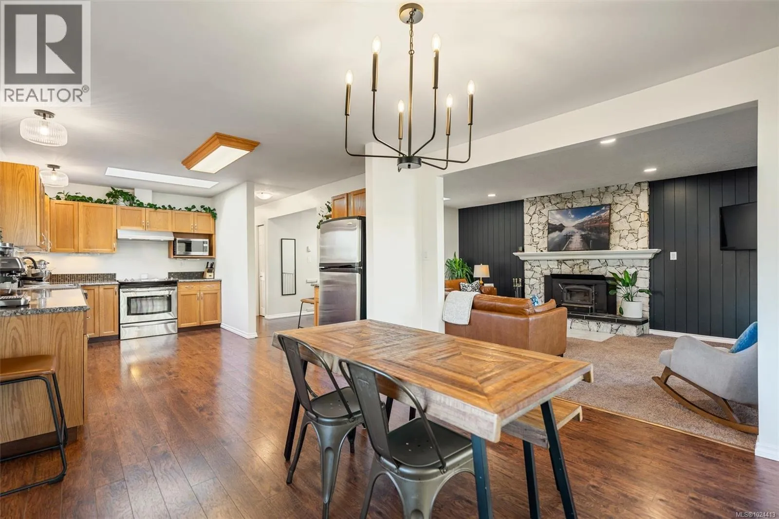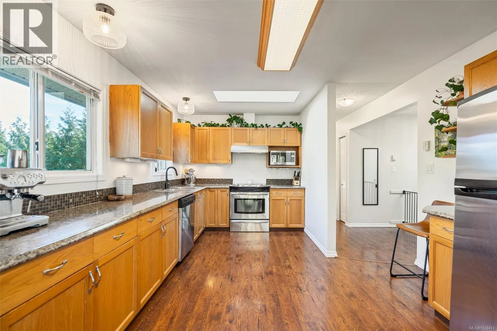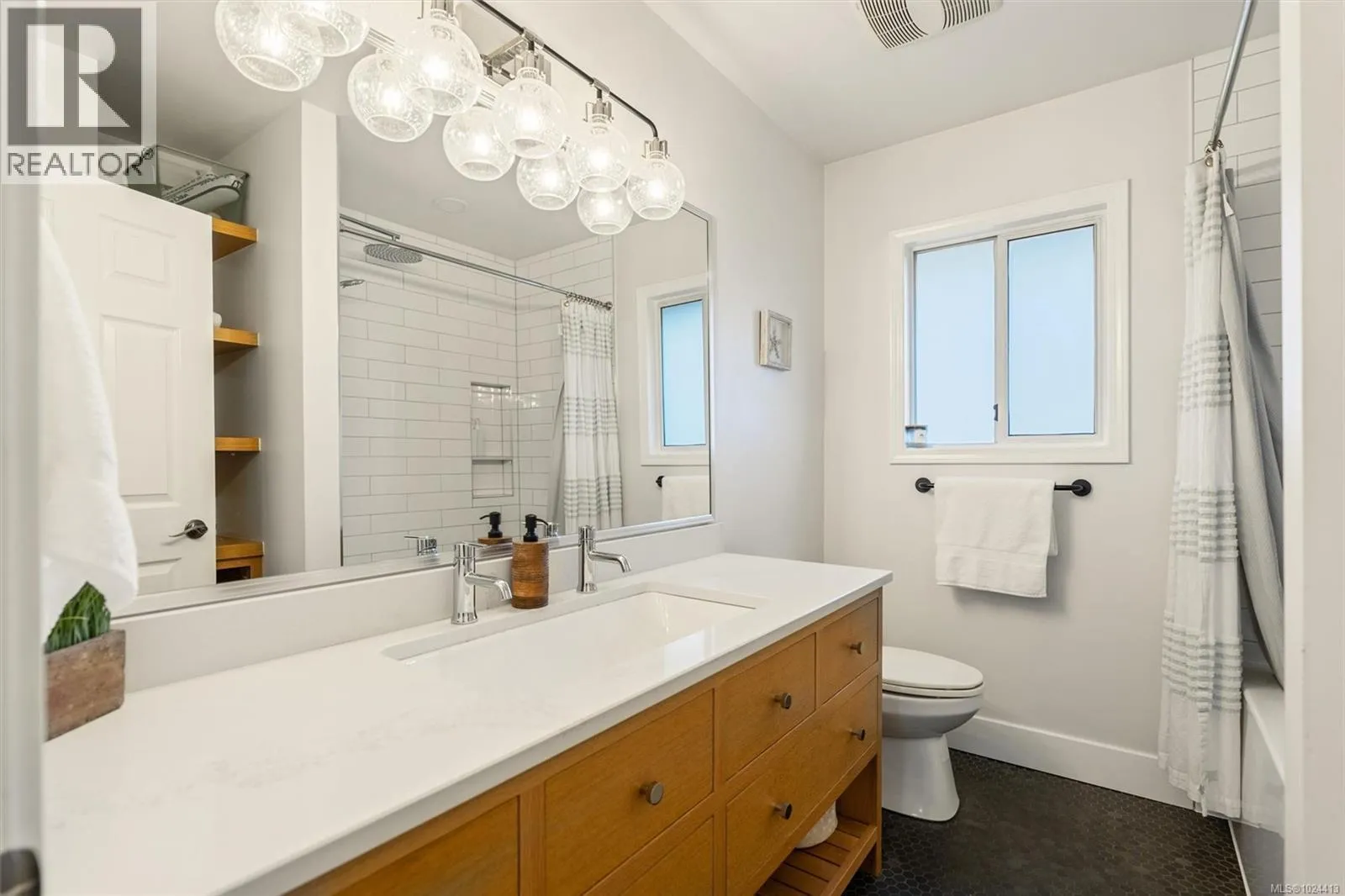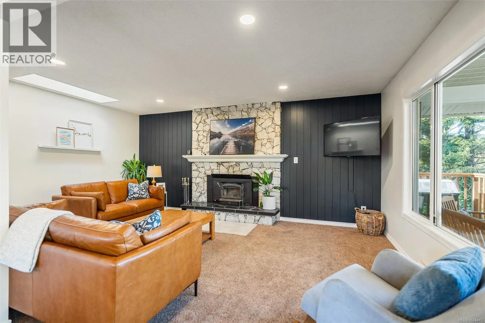 Beautifully renovated 5 bed, 3 bath home on a quiet cul de sac with stunning Glen Lake views and lake access just steps away. Youâll love the large living room with stone fireplace, bright open kitchen and dining leading to your big beautiful deck â all with views of the lake! The main level offers two bedrooms, skylights throughout, and a luxurious updated bathroom with heated tile floors. Downstairs features two more bedrooms, great laundry room, storage and a 2pc bath. A separate, currently vacant, 1 bed suite with new flooring and paint offers excellent guest space or lakeside rental potential with its own parking, entrance and outdoor space. Outside, relax on newer, covered, decking, store your boat below, and enjoy a private, fully fenced, low maintenance yard with micro clover lawn. Lots of parking including large covered carport. Walk to Belmont Market, shops, restaurants and the Galloping Goose for easy commuting and recreation. A rare lake side lifestyle with every convenience close at hand. Act quick! (id:27476)