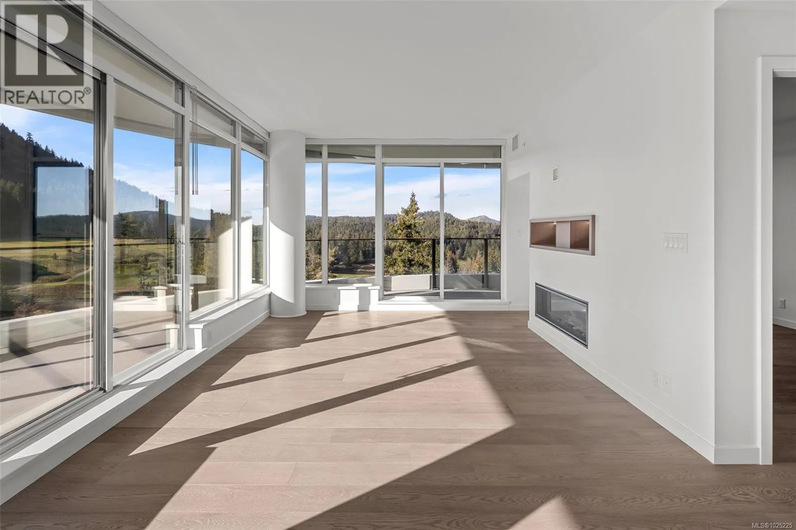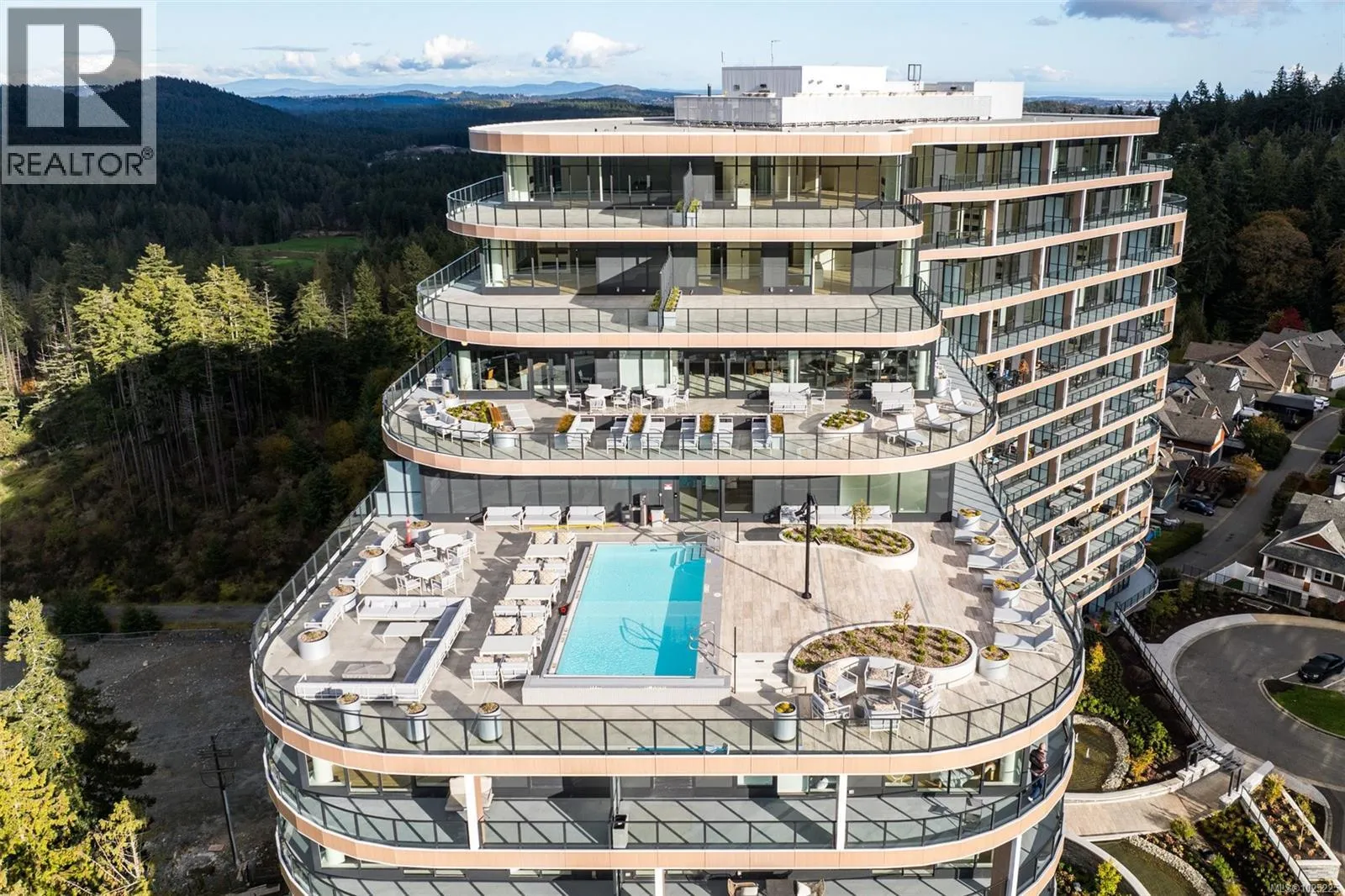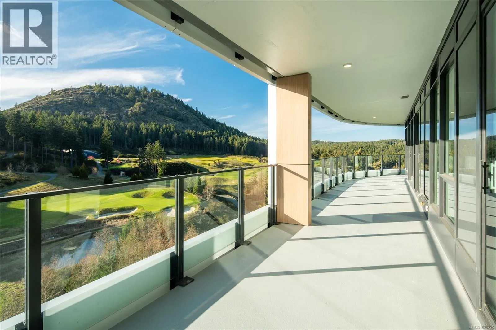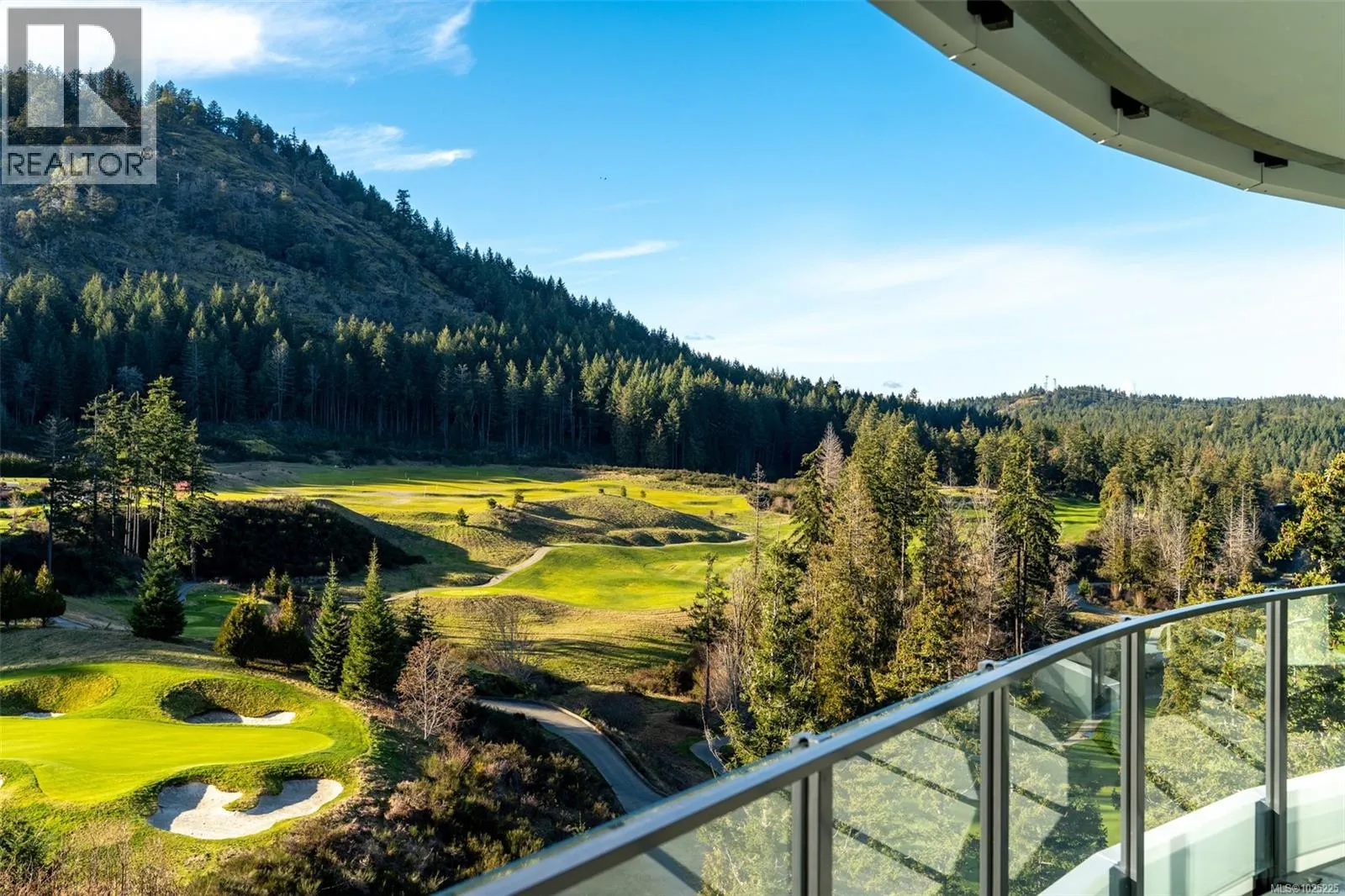 This exquisite 11th floor, corner suite, 2 bedroom, 2 bathroom condo boasts breathtaking west facing views over the 18th fairway & Mt. Finlayson. Premium features include oak flooring, 10ft ceilings, floor-to-ceiling windows, Bosch appliance package, quartz countertops and elegant Italian cabinetry. The living room, with a cozy gas fireplace, opens to a wrap-around 600+sq ft sundrenched patio - perfect for entertaining or savoring sunsets. The primary bedroom offers a walk-through dressing closet and spa-inspired ensuite plus a bonus home office (possible 3rd bedroom) w/golf course views. Enjoy world class amenities: Concierge service, Grenoble Sky Lounge, Business Center, Fitness & Yoga Studio, Outdoor Pool & Sundeck. Complete with 1 oversized parking stall, storage locker, bike storage, and a dog wash station, this residence offers a luxurious, resort-style experience. Donât miss your chance to own one of the most coveted floorplans One Bear Mountain has to offer! *NO GST* (id:27476)