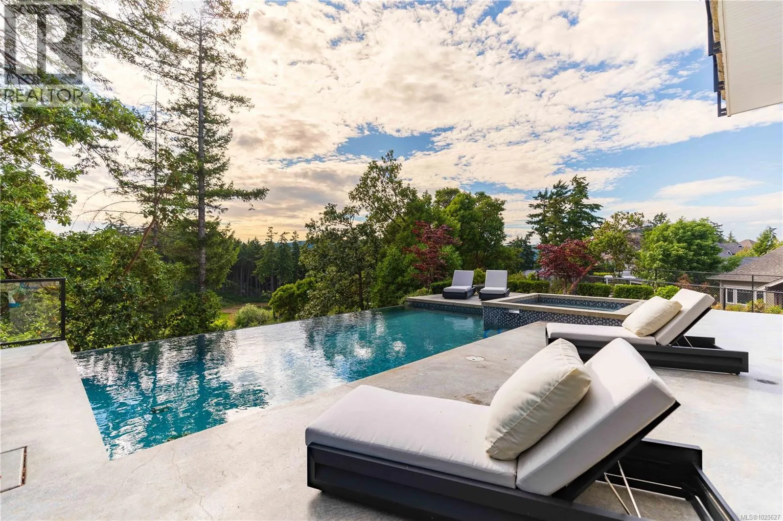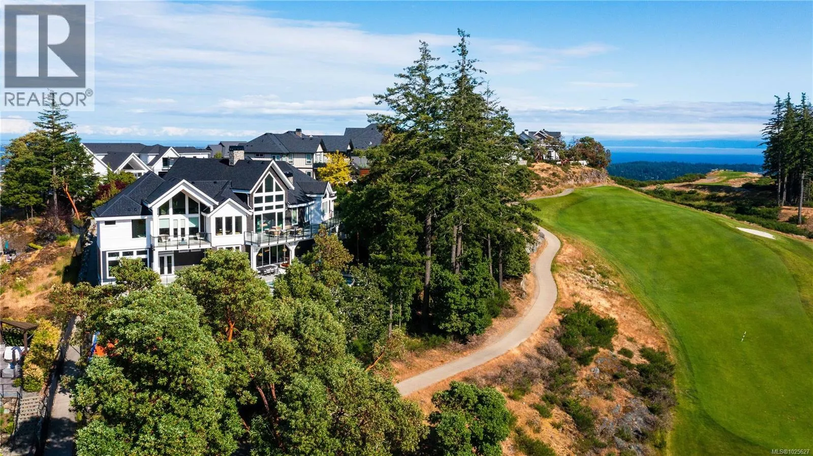 Set behind the gates of an exclusive enclave and backing directly onto Bear Mountain Golf Course, this exceptional estate offers an unrivaled blend of privacy, scale, and resort-calibre living. Spanning seven bedrooms and nine bathrooms, the residence is introduced by a striking roundabout driveway and vaulted porte-cochère, complemented by a quadruple garage and dedicated golf cart garage with direct course access. Designed for both grand entertaining and everyday enjoyment, the grounds are nothing short of spectacular, featuring a fully fenced sports court with rubberized surface, infinity pool and spa, and expansive patios that capture sweeping mountain and city vistas. Inside, dramatic vaulted and cathedral ceilings, floor-to-ceiling windows, and multiple heat pump systems create a bright, comfortable environment year-round. The main level showcases a breathtaking entry anchored by a towering two-way stone fireplace, a showpiece gourmet kitchen with walk-in pantry, a private office overlooking the drive, and a serene primary retreat with balcony, spa-inspired ensuite, and oversized walk-in shower. The lower level is purpose-built for recreation and guests, offering a central rec room with wet bar, tiered theatre, fully equipped gym, and guest suiteâeach with walk-out access to the pool deck. Completing the offering is a separate 550 sq ft guest suite with private entrance, balcony, open-concept living space, full bath, and laundryâideal for extended family or visitors. Located minutes from top-tier schools, shopping, and dining, this remarkable estate delivers luxury living without compromise. (id:27476)