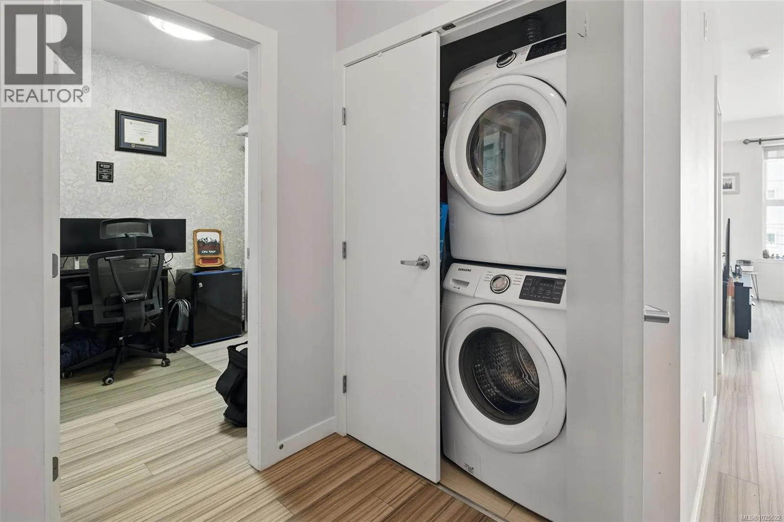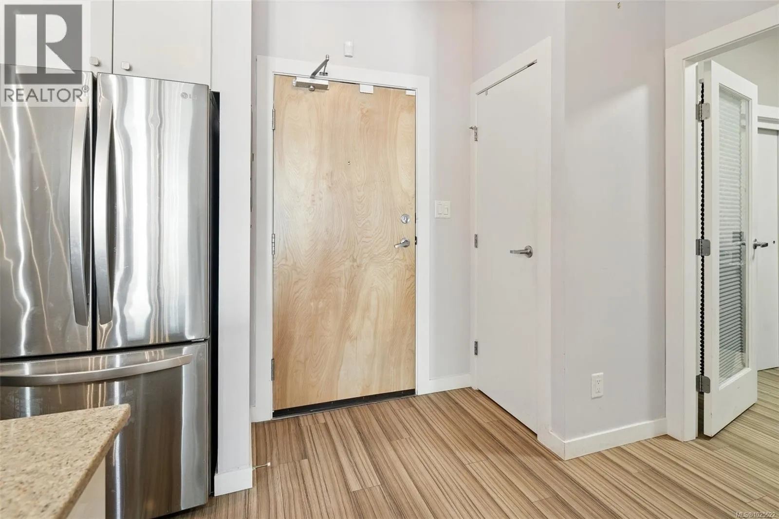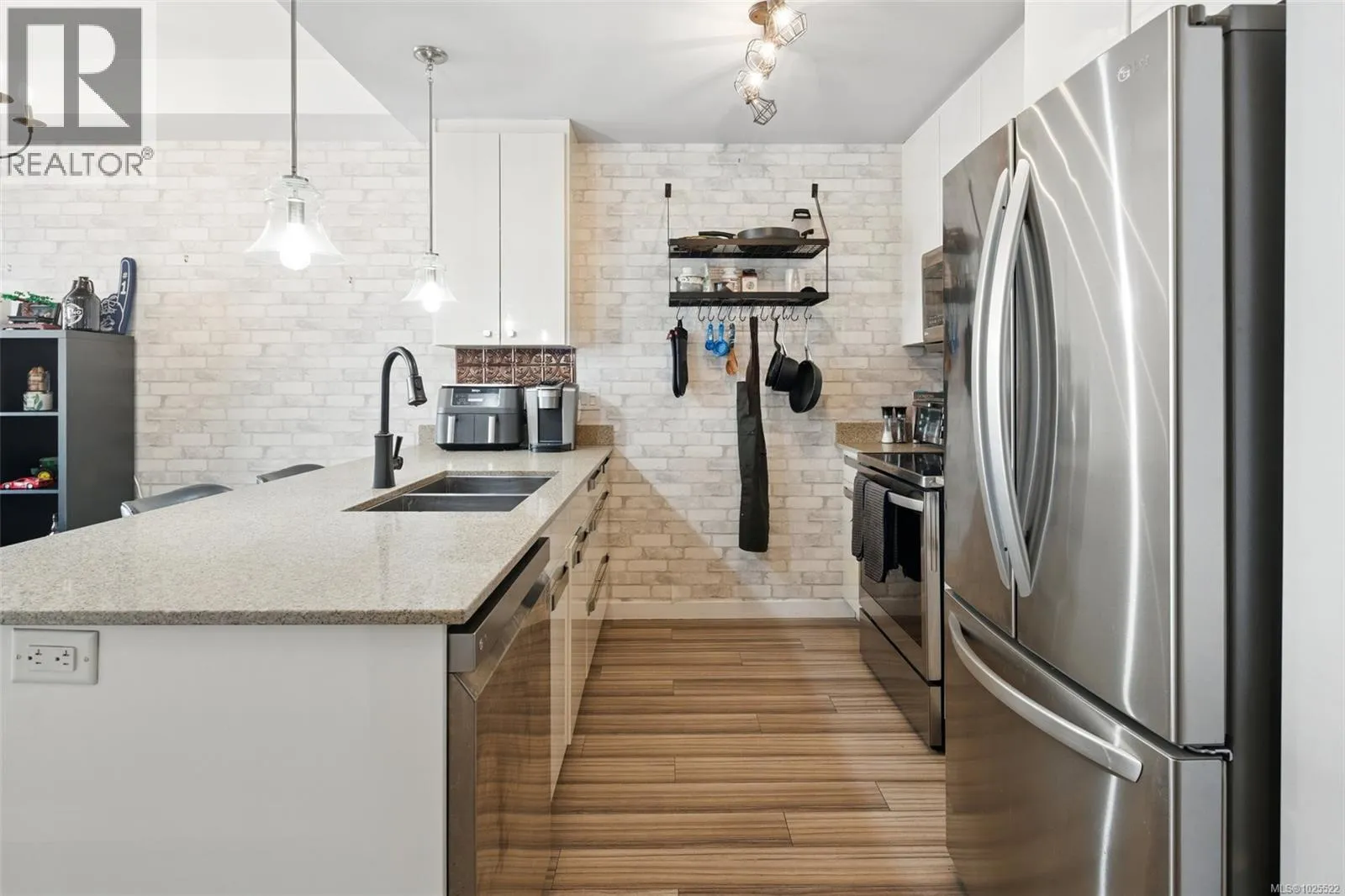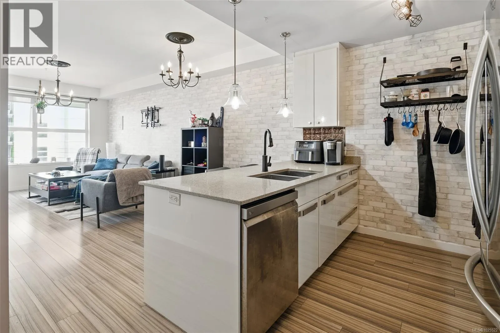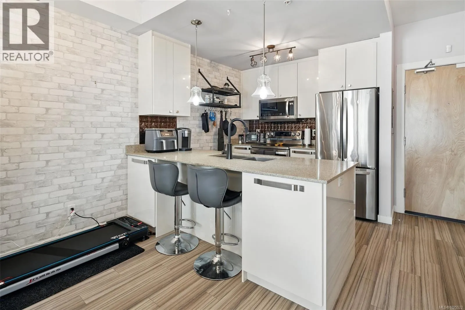 CHEAPEST 2 BEDROOM CONDO IN LANGFORD! Welcome to Utopia â where modern living meets everyday convenience in the heart of the West Shore! This bright and well-maintained 2-bedroom (second bedroom/den has no window), 1-bathroom condo features an open concept layout with 9â ceilings and durable laminate flooring throughout. The contemporary kitchen boasts new LG appliances, quartz countertops, a garburator, custom cabinet drawers with pull-outs and a convenient breakfast bar. The spacious primary bedroom offers a walk-in closet and access to a 4-piece cheater ensuite with a tiled tub surround. Stay comfortable year round with efficient heating and cooling from the heat pump. Enjoy outdoor living on the generous patio - ideal for summer BBQs or quiet mornings with a coffee. This unit includes a secure parking stall and a separate storage locker. All within walking distance to shops, dining, grocery stores, parks, and much more - everything you need right at your doorstep! Last sale of a comparable suite in the building was $442,000!! PRICED FOR AN IMMEDIATE SALE! (id:27476)