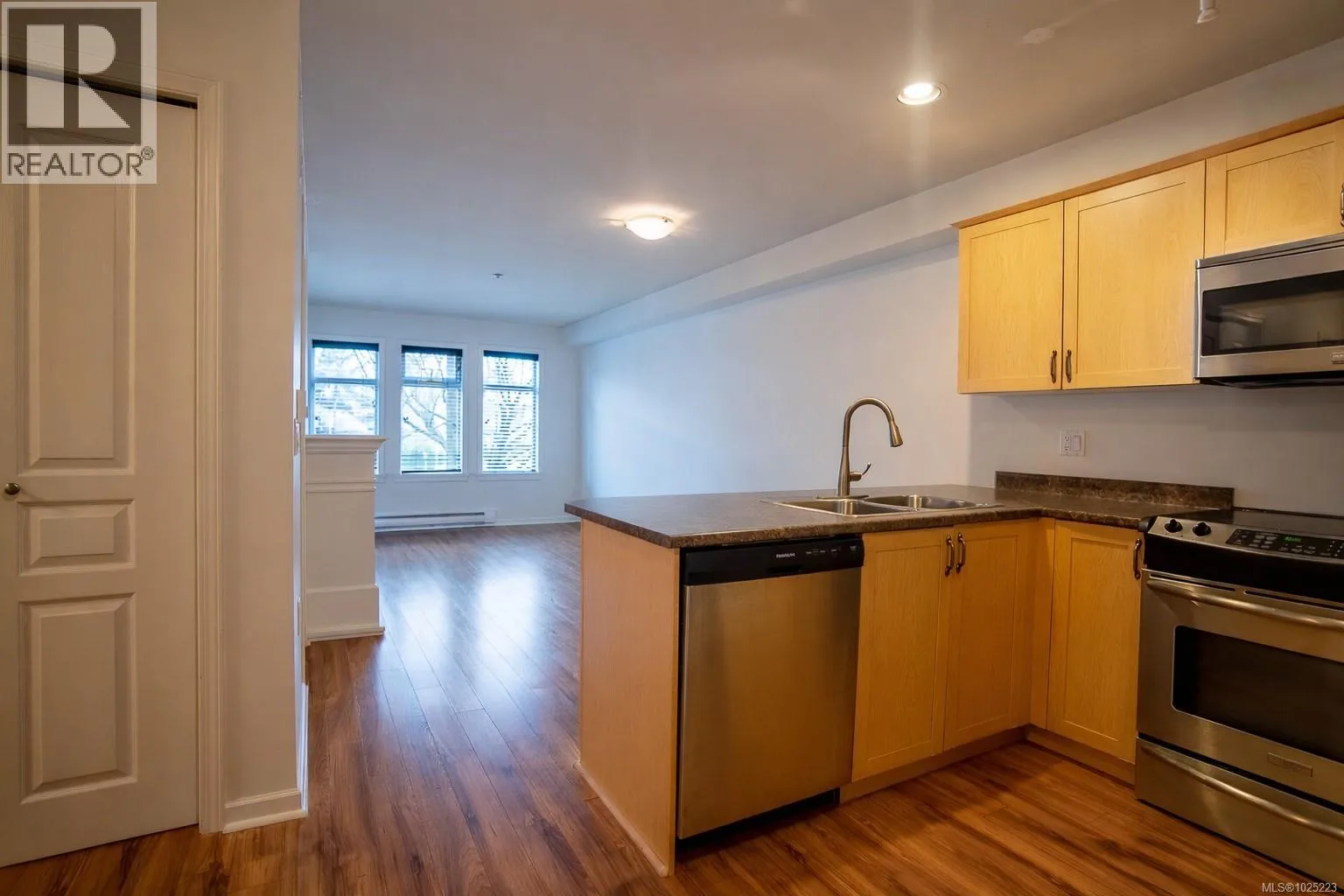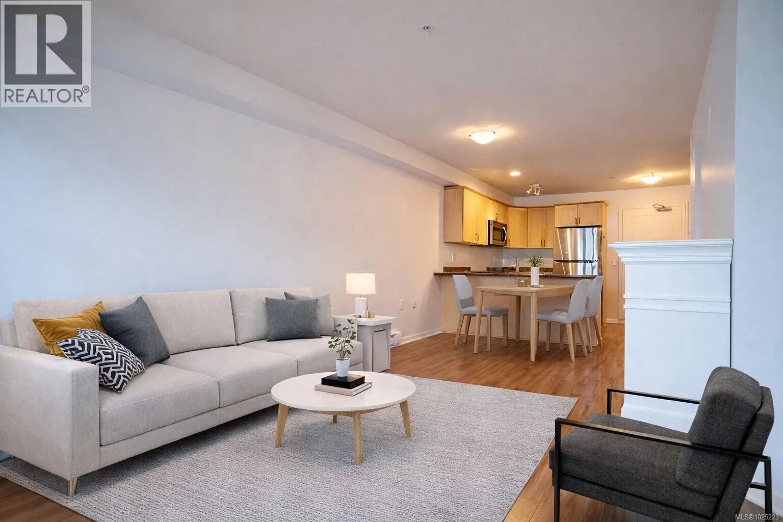 Welcome to 210â655 Goldstream Ave, a bright and inviting 2-bedroom, 2-bathroom home offering 858 sq ft of thoughtfully designed living space in one of Langfordâs most walkable locations. Set in a modern West Coastâinspired building, this unit features an open-concept layout with brand-new laminate flooring, a spacious kitchen with peninsula seating, and a cozy living room complete with an electric fireplace and access to a private balcony, perfect for morning coffee or summer BBQs. The well-designed floor plan places both bedrooms on opposite sides of the home for added privacy. The primary suite includes a generous walk-in closet and 4-piece ensuite, while the second bedroom is steps from another full bathroom, ideal for guests, family, or a roommate. Additional highlights include in-suite laundry, secure underground parking, and a separate storage locker. This pet-friendly and rental-friendly building offers exceptional amenities including a fitness room, bike storage, a third-floor common patio space, and access to a rooftop deck. Outside your door, enjoy easy access to the E&N Rail Trail, Royal Colwood Golf Club, transit, restaurants, parks, schools, and everything downtown Langford has to offer. Whether youâre entering the market, downsizing, or expanding your investment portfolio, this home delivers comfort, convenience, and value in a fast-growing neighbourhood. (id:27476)