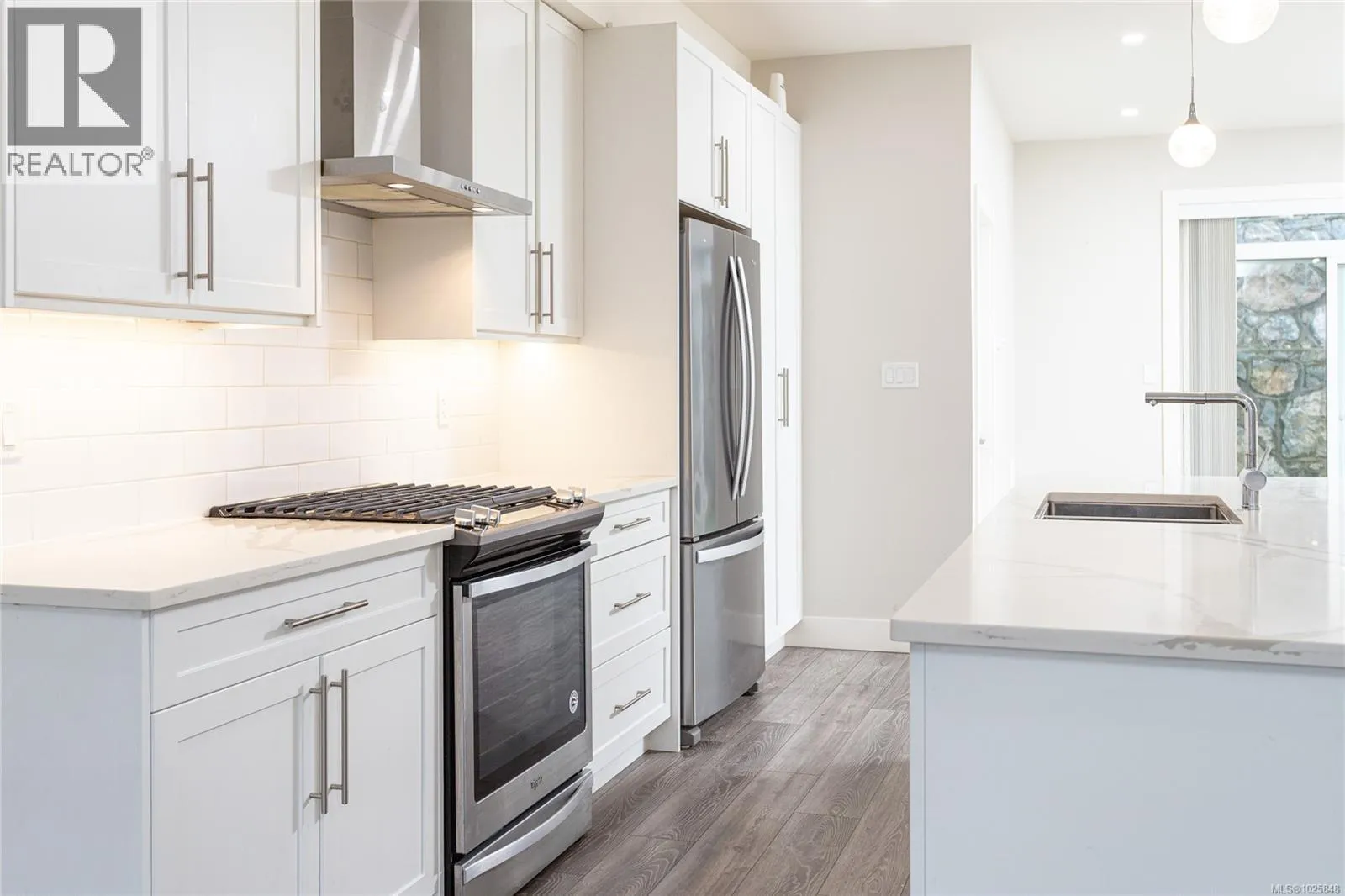 Welcome to this beautiful 2020 corner townhome in LangfordâMillstream. Offering nearly 1,800 sq ft, 4 bedrooms, a den, 3 bathrooms and 2 yard spaces, this bright, modern home is move-in ready. The open main level features a chef-friendly kitchen with large island, tiled backsplash, gas range and abundant storage, flowing to a west-facing private patio with gas BBQ hookup and fenced yardâperfect for entertaining, kids and pets. Upstairs, the primary suite boasts vaulted ceilings, a generous walk-in closet and an ensuite with double sinks and heated floors. The lower level includes a large bedroom, a den and a single-car garage. A sizeable side yard to the right can be fenced for storage sheds or a play area and belongs to the unit. Steps to schools, parks and trails, and minutes to Millstream Village, Costco and Home Depot with an easy commute to downtown Victoria. Family-friendly complex, well-run strata, pets and rentals allowed. Book your showing today! (id:27476)