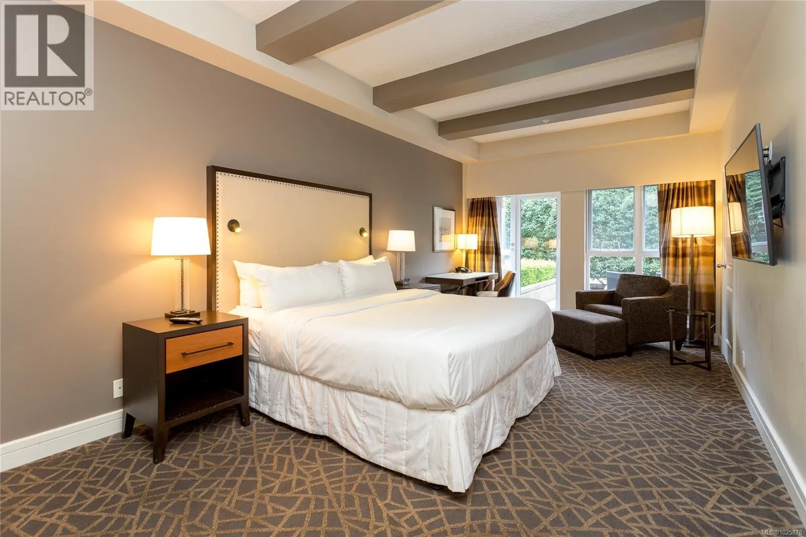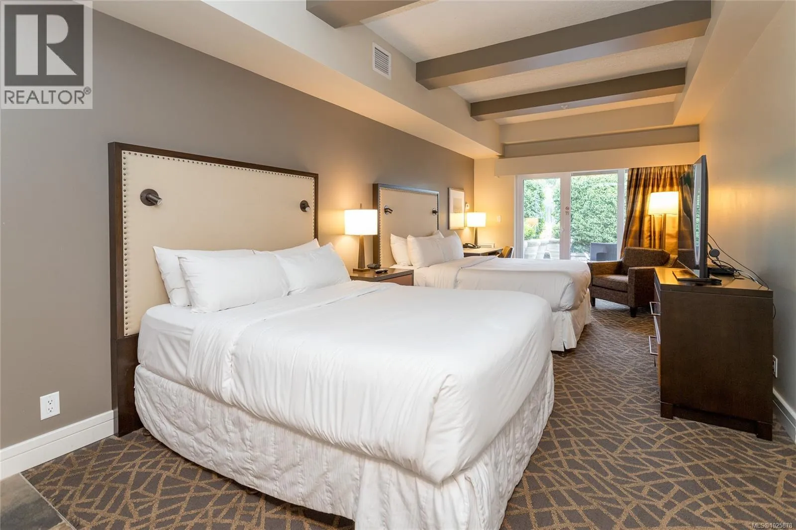 Experience Bear Mountain resort living at its finest with this beautifully furnished suite at The Fairways Hotel. This 1/4 share, fee-simple ownership offers a worry-free investment in a premier destination setting. Ideally located in a quiet ground-floor corner position on the golf course side, this versatile suite includes two units: a king bedroom with full kitchen, plus a separate lock-off studio featuring two queen beds and a kitchenette. Both enjoy walk-out access to an expansive patioâperfect for relaxing in peaceful surroundings. Just steps to an outdoor pool, fitness centre, clubhouse, tennis bubble, driving range, and two Jack Nicklausâdesigned championship golf courses, along with dining and scenic hiking trails. A rare turn-key stay-and-play opportunity at an incredible entry point into the Bear Mountain lifestyle. (id:27476)