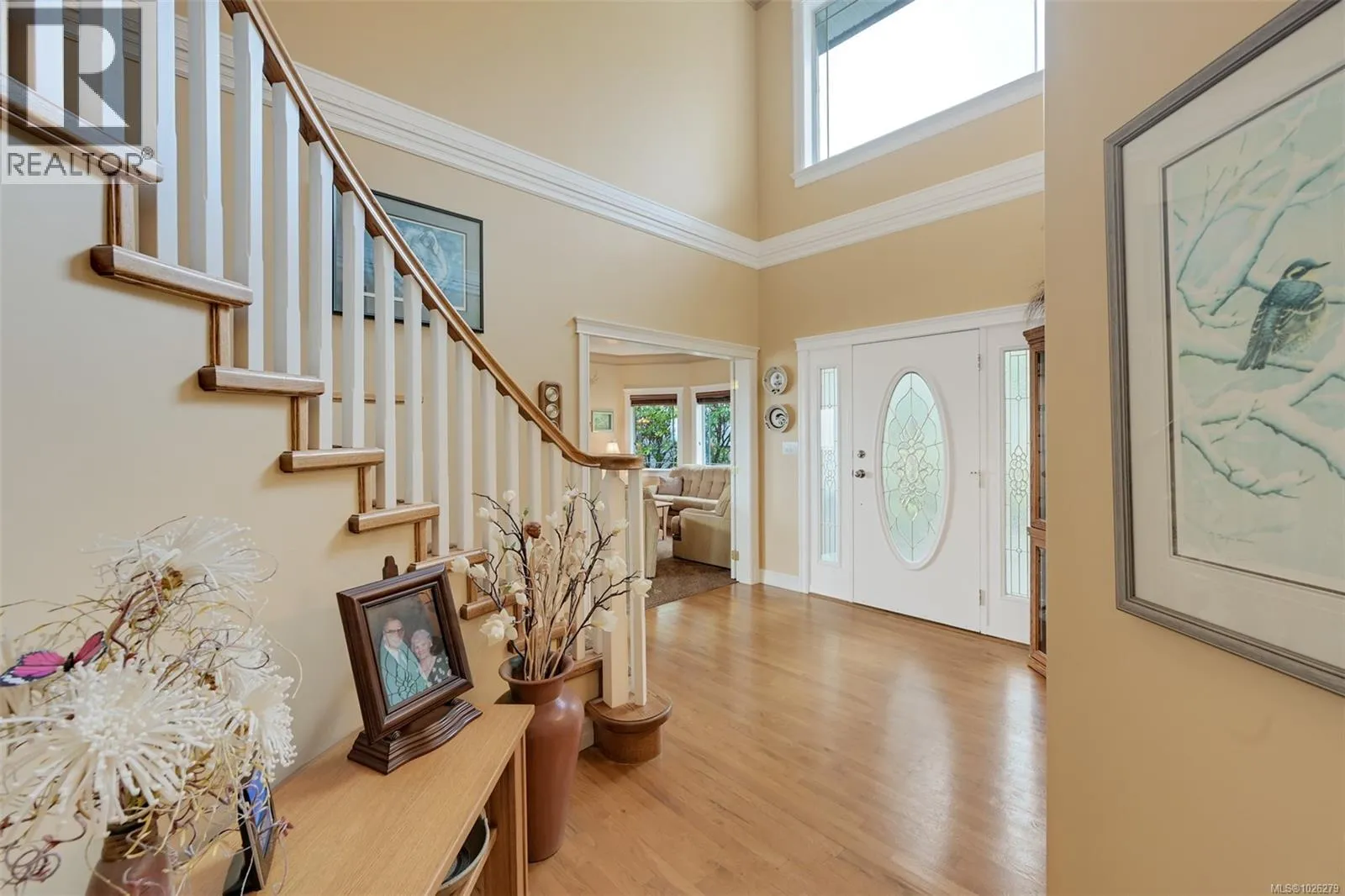 Situated on the crest of a private, brick paved street in the picturesque Crystal View neighbourhood is 2625 Platinum Place. This beautiful builders own home, is absolutely spotless and boasts pride of ownership inside and out. The views are simply breathtaking, offering sweeping 180 views of the city of Victoria, ocean and Olympic Mountains. A grand entryway featuring 18Ft ceilings and a curved staircase welcomes you inside this warm and inviting home. Thoughtfully designed to capture the scenery from nearly every room the residence offers over 2600 sq.ft. with 4 bedrooms and 3 bathrooms. The lower level offers an additional 1030 sq.ft. with a roughed in amazing 2 bedroom self contained suite with its own sweeping view. With a large double garage, as well as an ample good height crawl space there is plenty of room for your hobbies and storage of you toys. (id:27476)