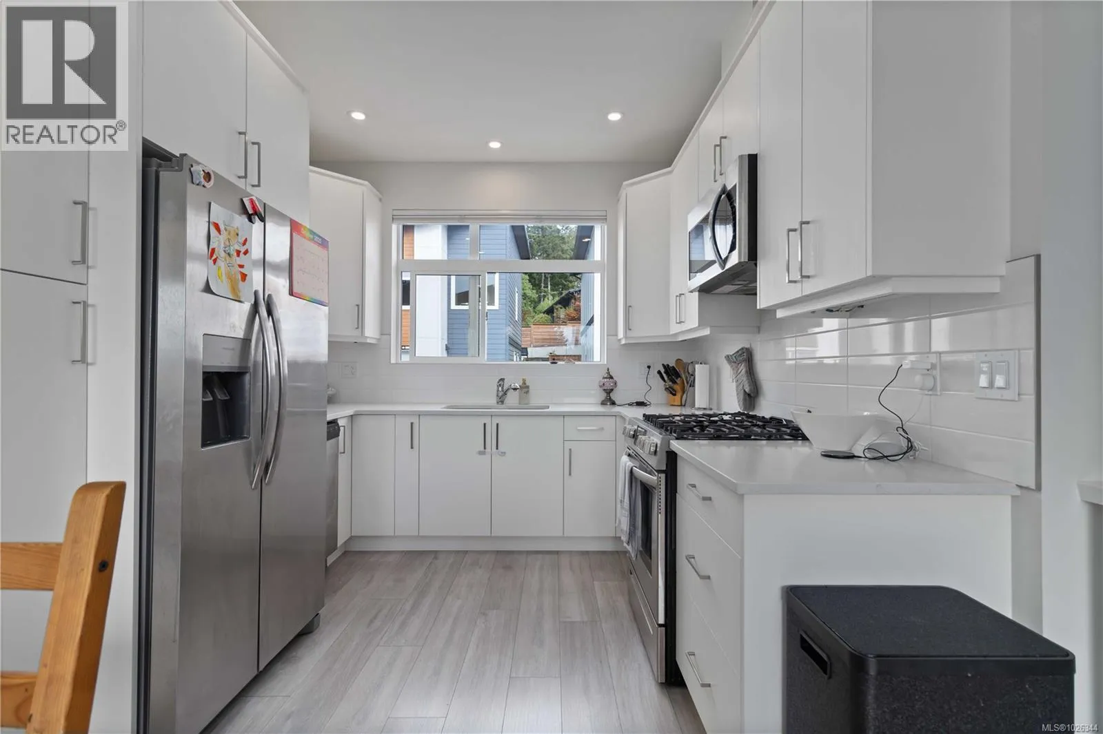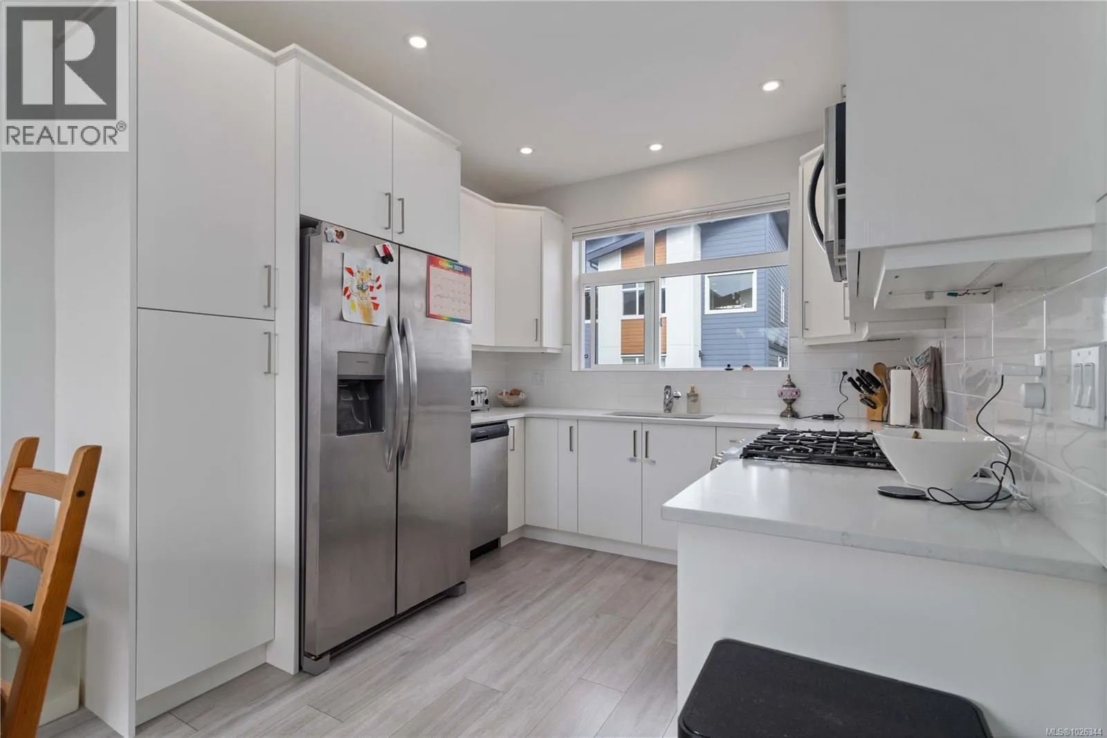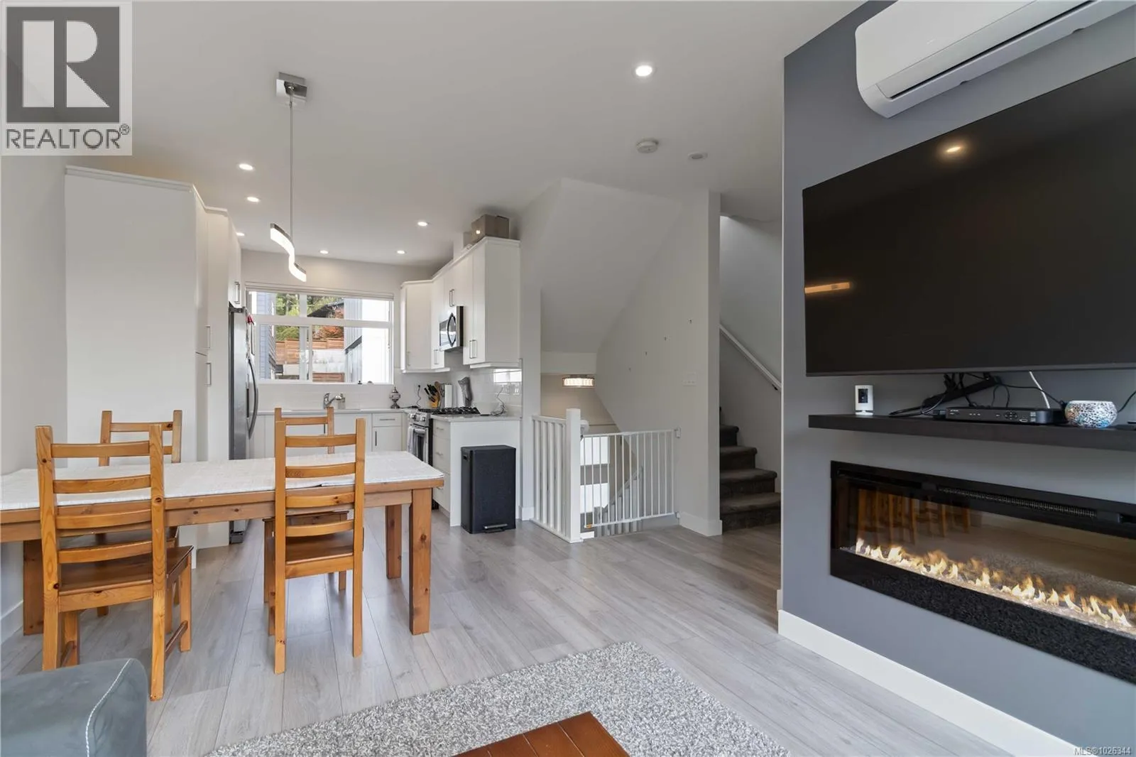 Welcome to this nearly new, thoughtfully designed townhome in the heart of one of Langfordâs most family-oriented neighbourhoods. Offering 2 bedrooms plus a versatile den (ideal as a third bedroom, nursery, or home office), this home is perfectly suited for young families or first-time buyers seeking comfort, efficiency, and long-term value. The main level features bright, open-concept living with 9â ceilings, oversized windows, and contemporary finishes throughout. The custom kitchen showcases quartz countertops, sleek cabinetry, stainless steel appliances, and under-cabinet lighting, flowing seamlessly into the dining and living areas with wide-plank flooring and an electric fireplace. Upstairs, the primary suite offers vaulted ceilings and a spa-inspired ensuite with a floating vanity and motion lighting. Energy-efficient gas heating, on-demand hot water, an EV charger, and affordable strata fees make day-to-day living both convenient and cost-effective. Enjoy a south-facing deck for summer BBQs, leading to a fully fenced, low-maintenance yardâideal for kids and pets. Steps from parks, schools, recreation, shops, and transit, this home represents one of the best starter home opportunities currently available in Langford. A turn-key home in a location designed for family life, donât miss it. (id:27476)
