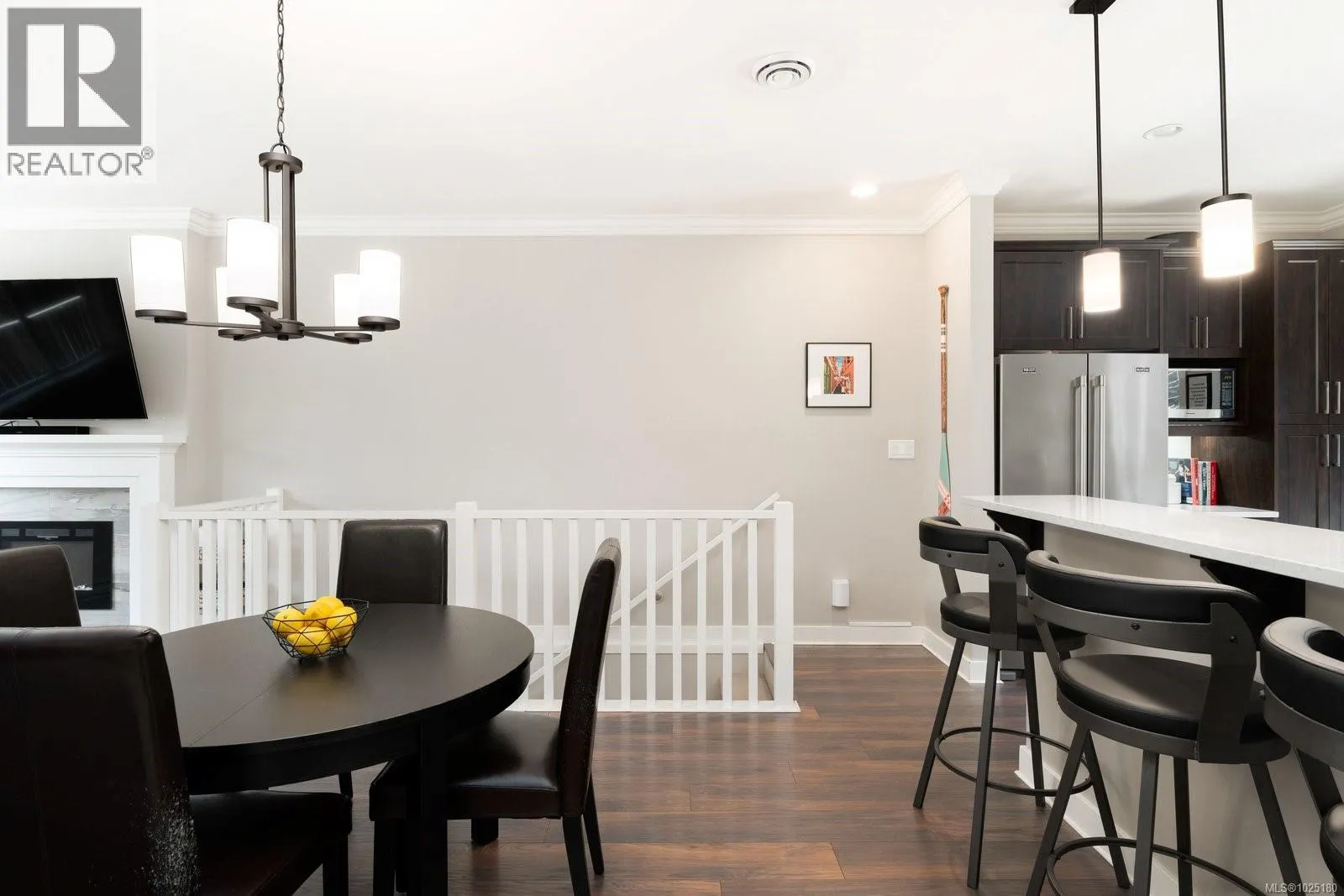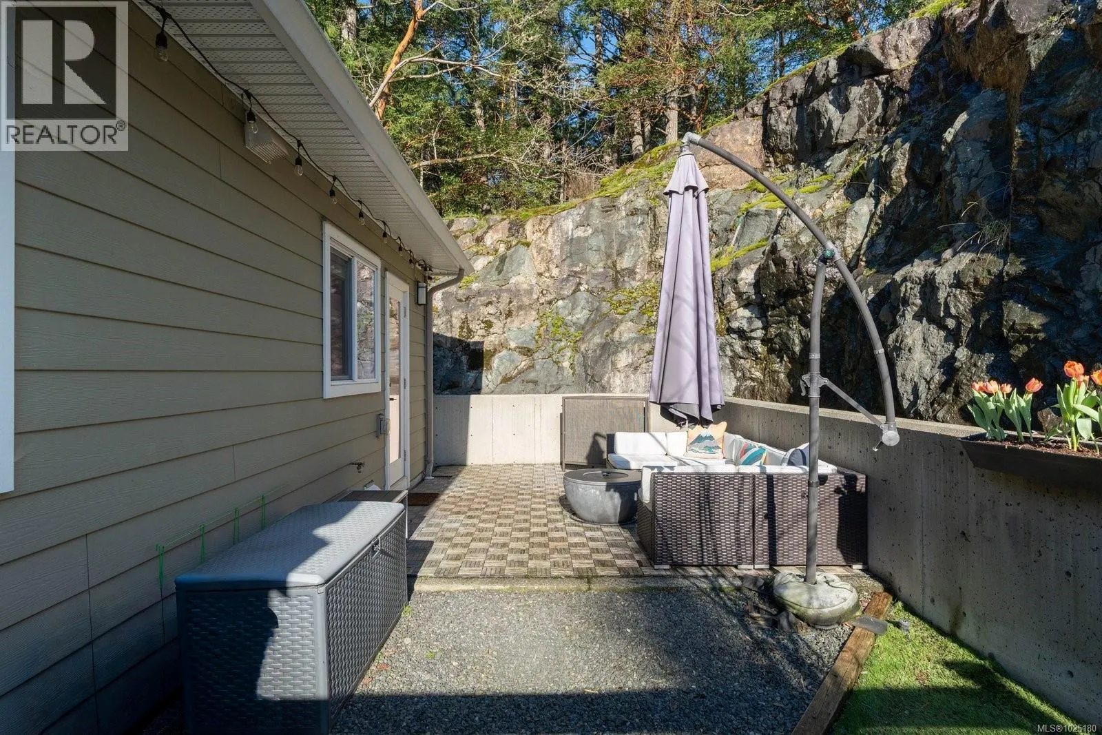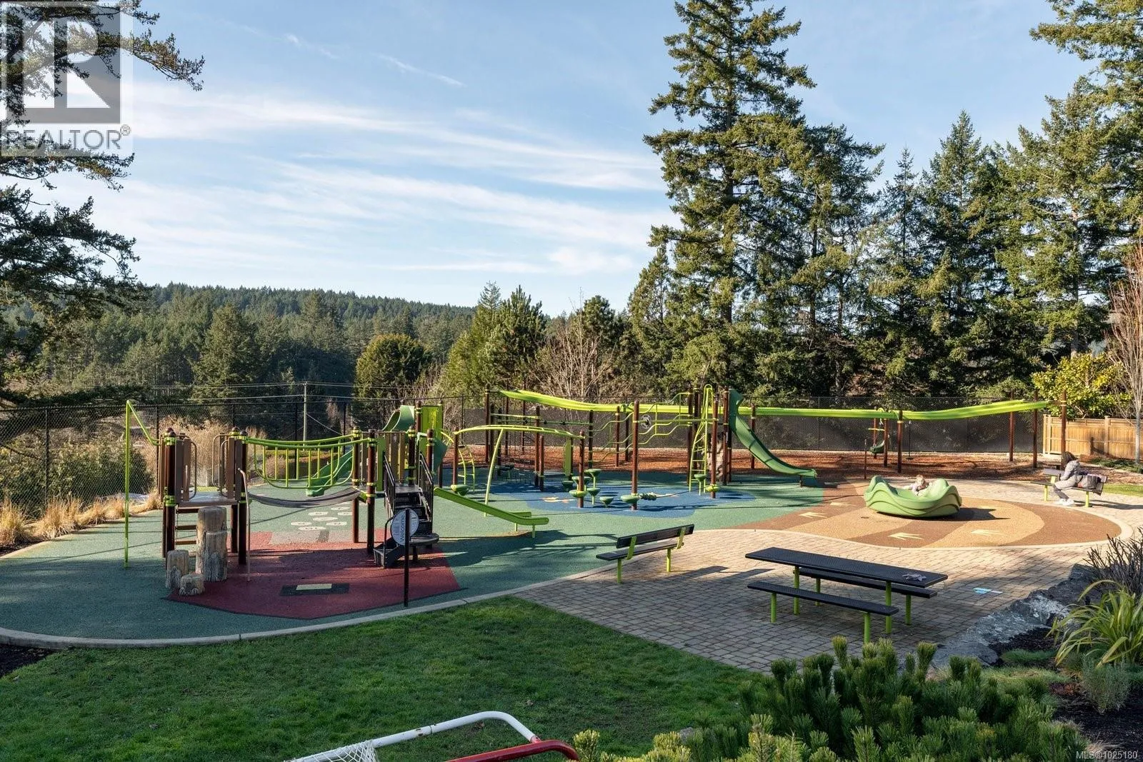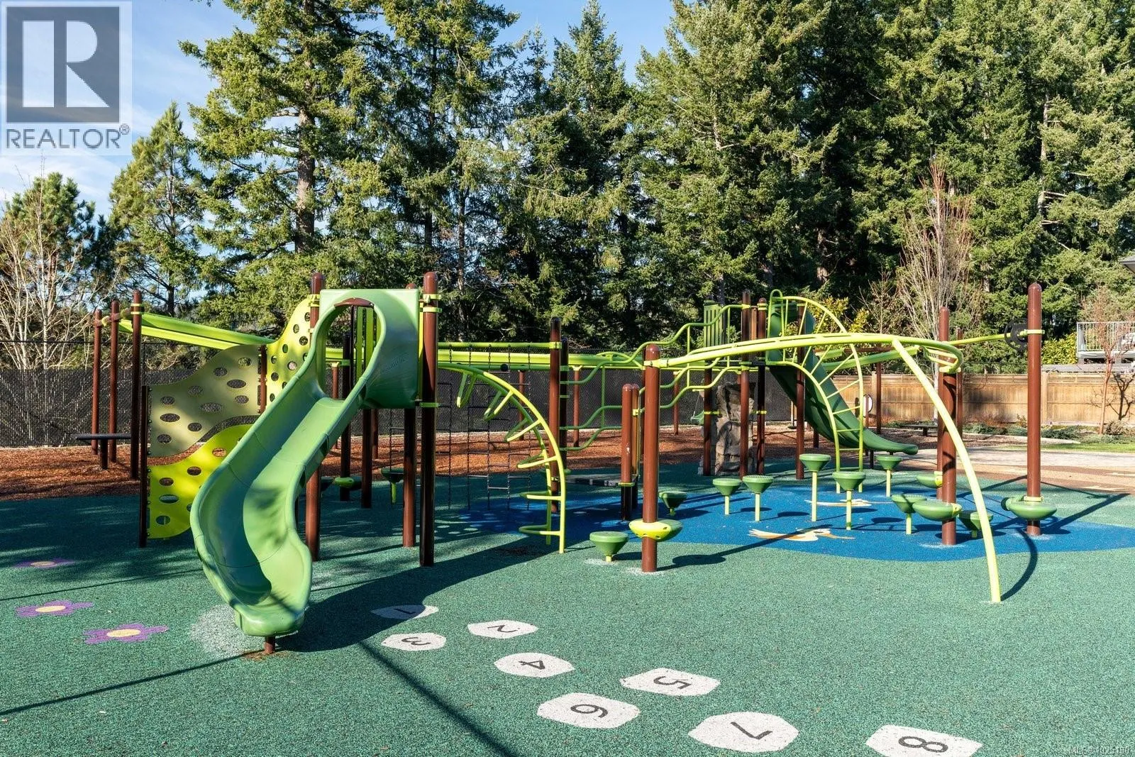 Bright end-unit townhome in family-friendly Happy Valley community. Beautifully maintained and move-in ready. Soaring ceilings and abundant natural light enhance the open-concept main floor, featuring a gourmet kitchen with granite counters, premium appliances (including an oversized fridge), bar seating, and a stylish fireplace in the living room. A spacious primary bedroom, second bedroom, and 4-piece bath complete the main floor. The flexible floor plan is ideal for guests or working from home, with a walk-out lower level offering a den plus office/gym, full bath, laundry, ample storage (including under-stairs space), and a double garage. Enjoy your sun-soaked deck and patio overlooking a private yard with views of Arbutus trees and a striking natural rock wall backdrop â a truly serene setting. Well-managed, friendly strata in a welcoming community close to Westshore Town Centre, Langford Lake, Royal Colwood Golf Club, and the Galloping Goose Regional Trail. (id:27476)