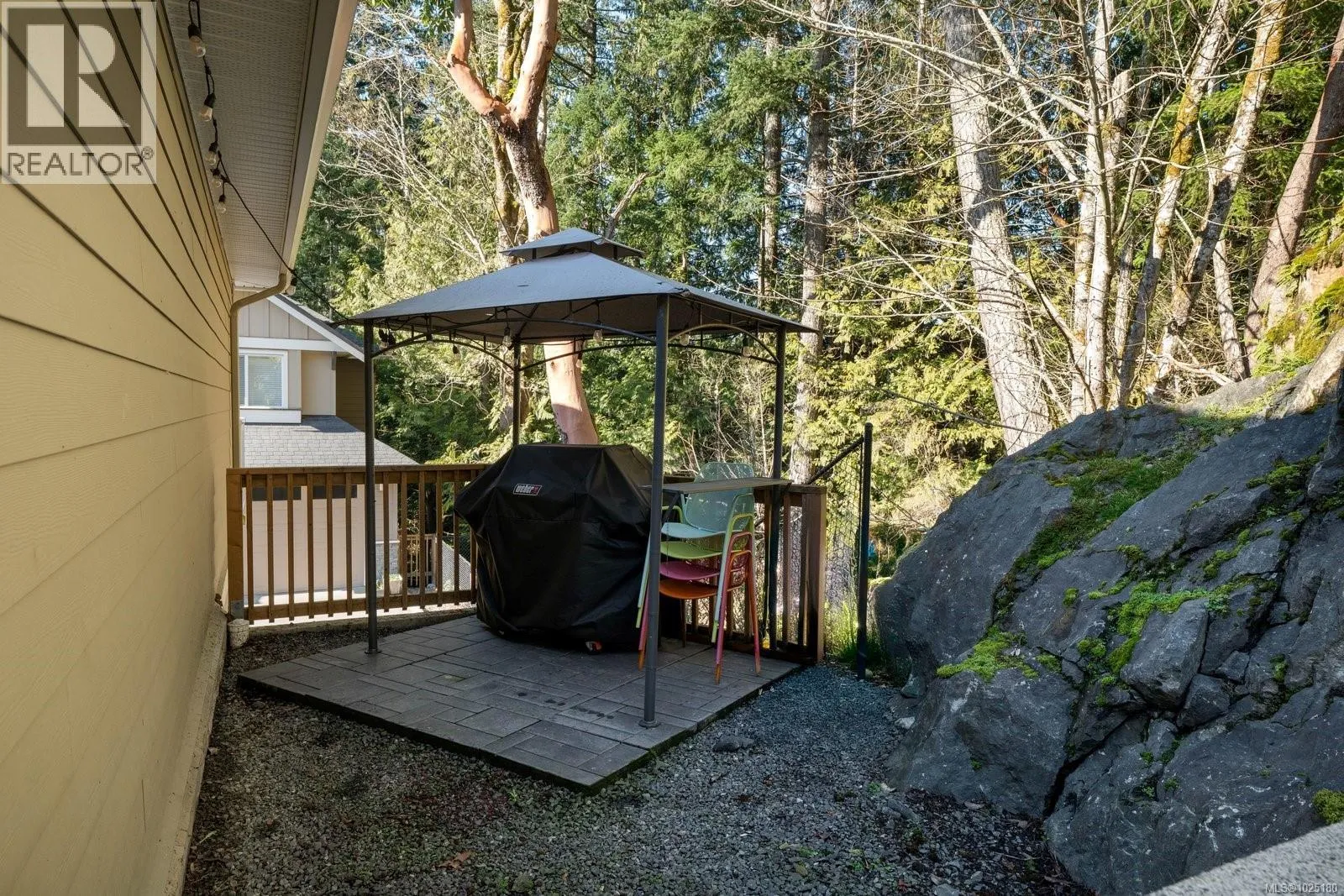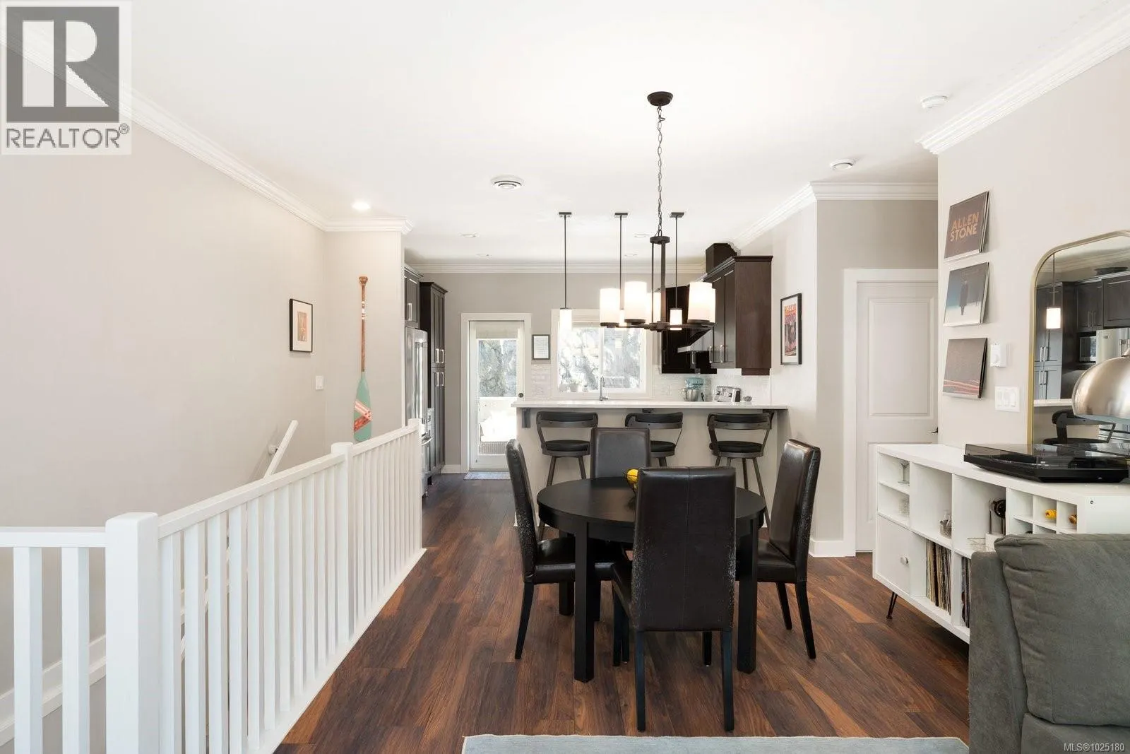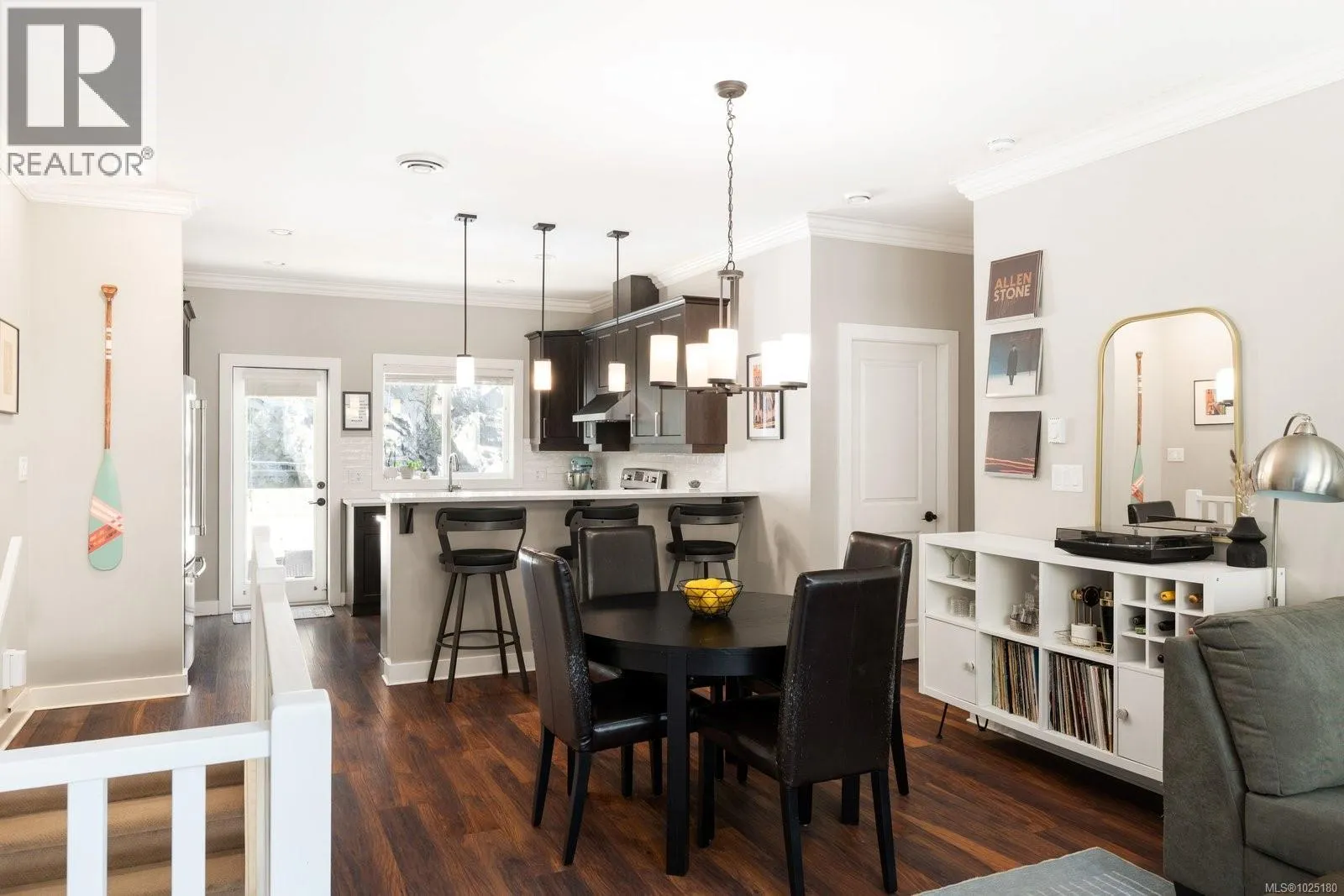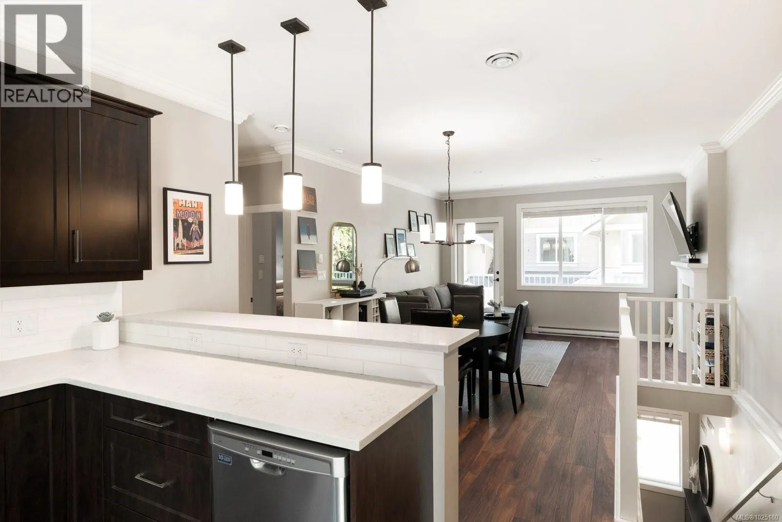 Bright end-unit townhome in family-friendly Happy Valley community. Beautifully maintained and move-in ready. Soaring ceilings and abundant natural light enhance the open-concept main floor, featuring a gourmet kitchen with granite counters, premium appliances (including an oversized fridge), bar seating, and a stylish fireplace in the living room. A spacious primary bedroom, second bedroom, and 4-piece bath complete the main floor. The flexible floor plan is ideal for guests or working from home, with a walk-out lower level offering a den plus office/gym, full bath, laundry, ample storage (including under-stairs space), and a double garage. Enjoy your sun-soaked deck and patio overlooking a private yard with views of Arbutus trees and a striking natural rock wall backdrop â a truly serene setting. Well-managed, friendly strata in a welcoming community close to Westshore Town Centre, Langford Lake, Royal Colwood Golf Club, and the Galloping Goose Regional Trail. (id:27476)