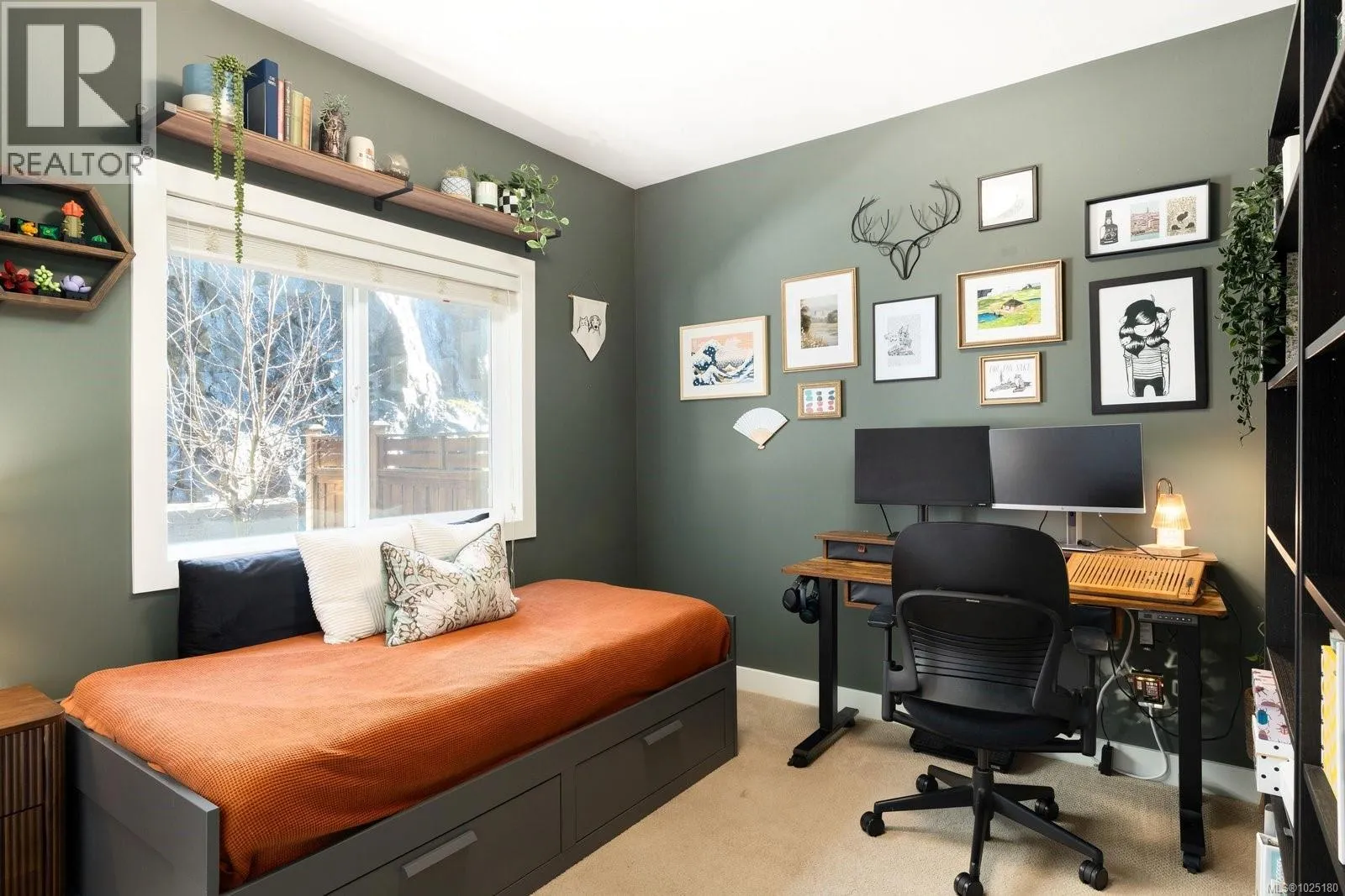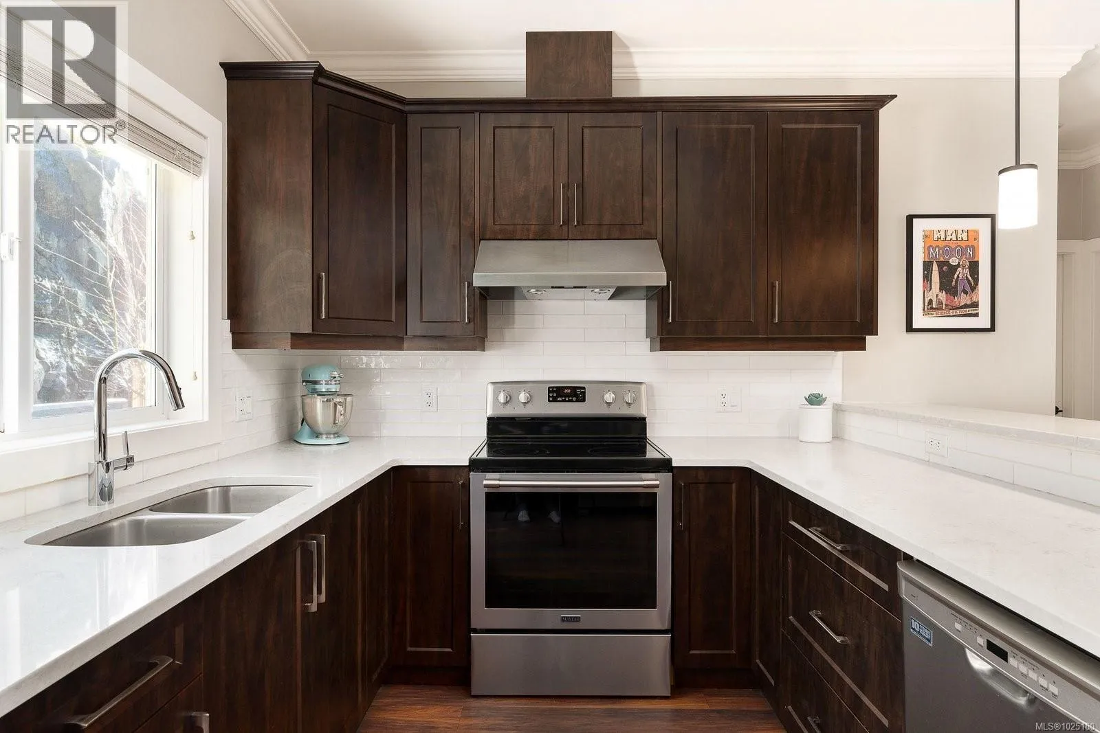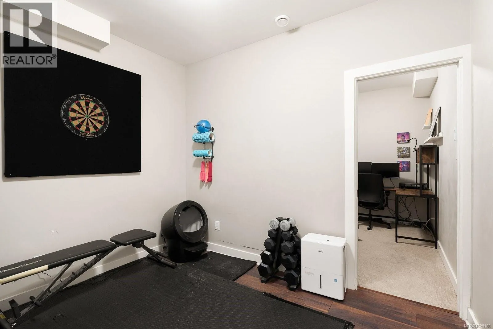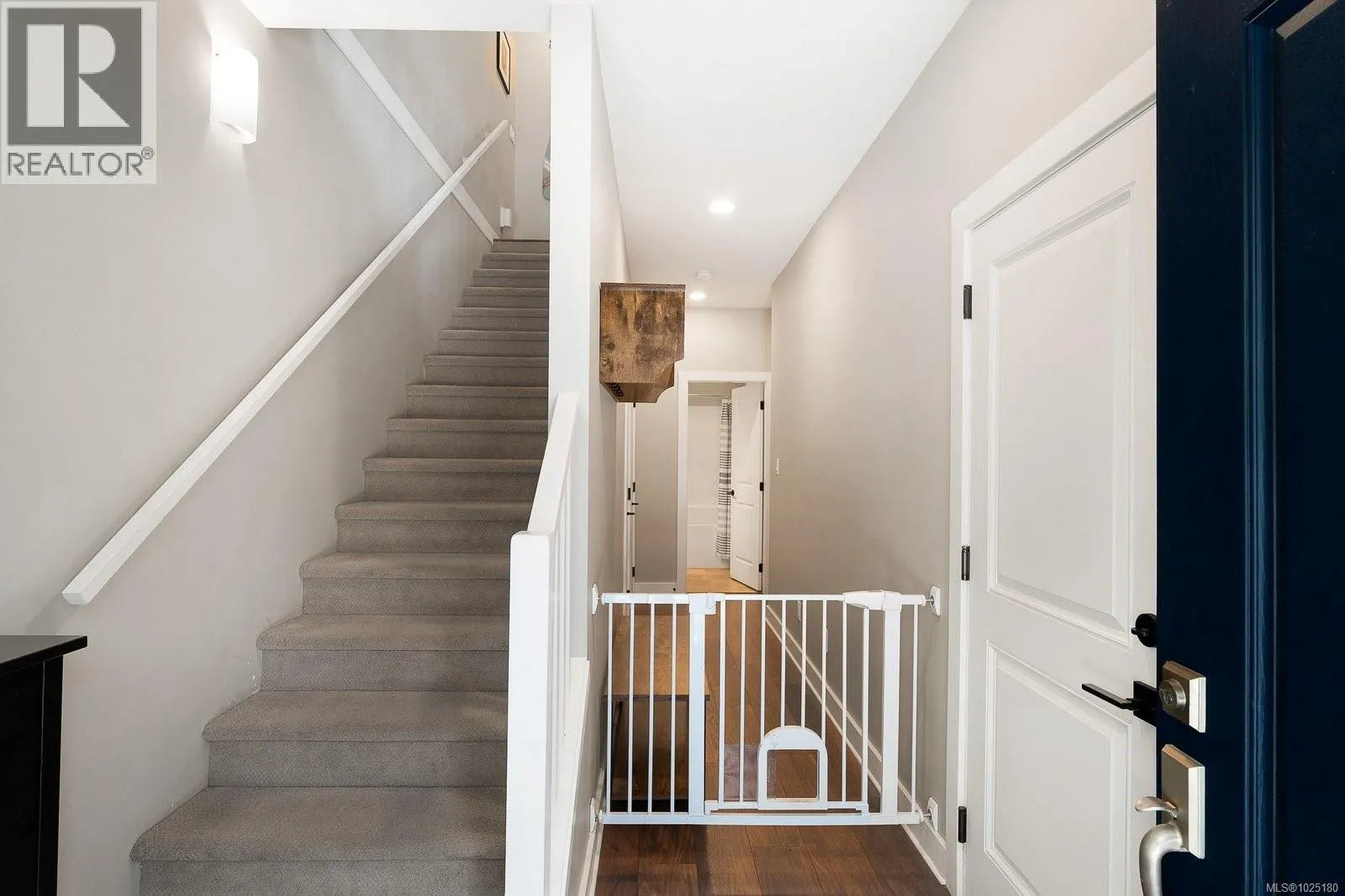 Bright end-unit townhome in family-friendly Happy Valley community. Beautifully maintained and move-in ready. Soaring ceilings and abundant natural light enhance the open-concept main floor, featuring a gourmet kitchen with granite counters, premium appliances (including an oversized fridge), bar seating, and a stylish fireplace in the living room. A spacious primary bedroom, second bedroom, and 4-piece bath complete the main floor. The flexible floor plan is ideal for guests or working from home, with a walk-out lower level offering a den plus office/gym, full bath, laundry, ample storage (including under-stairs space), and a double garage. Enjoy your sun-soaked deck and patio overlooking a private yard with views of Arbutus trees and a striking natural rock wall backdrop â a truly serene setting. Well-managed, friendly strata in a welcoming community close to Westshore Town Centre, Langford Lake, Royal Colwood Golf Club, and the Galloping Goose Regional Trail. (id:27476)