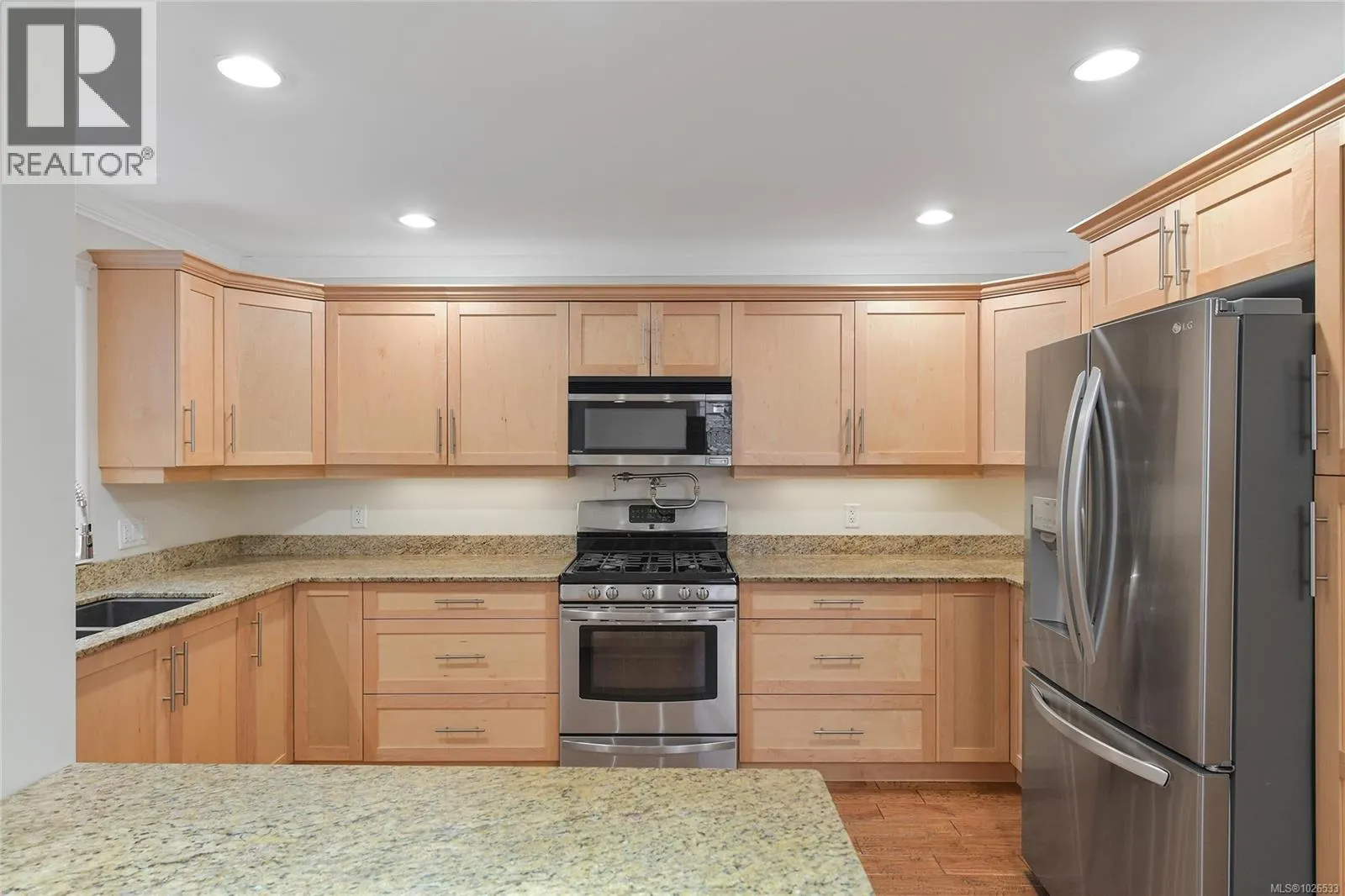 Located on a quiet cul-de-sac, this 3-bedroom, 3-bathroom home includes a bachelor suite below. The main living space is open and bright and flows between the kitchen, dining, and living areas. The kitchen offers granite countertops, stainless steel appliances, maple cabinets, a gas range with a pot filler and a spacious pantry. Just off the dining area is a fully enclosed sunroom. Natural light fills the home, complemented by a cozy gas fireplace, gas furnace, on-demand hot water, a heat pump, and engineered hardwood floors. The primary bedroom features a walk-in closet and a roomy ensuite. Outside, the low-maintenance yard includes a composite deck, hot tub pre-wiring, a gas BBQ hookup, and backs onto green space. Out front, thereâs a Tesla car charger. The bachelor suite works well as a guest space, home office, or rental income. Youâll also find plenty of storage, including an 11x9 attic area, storage off the half garage, and additional space under the stairs. (id:27476)