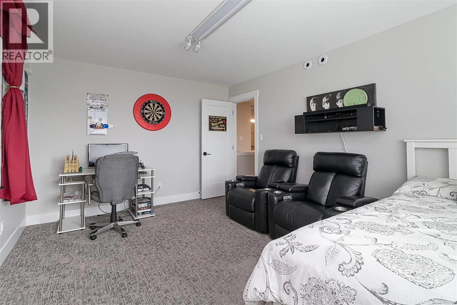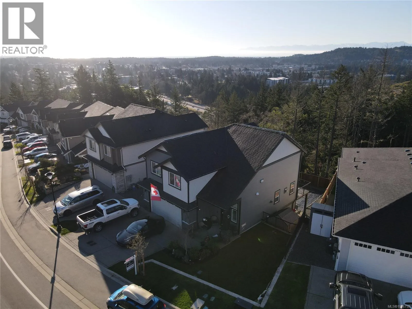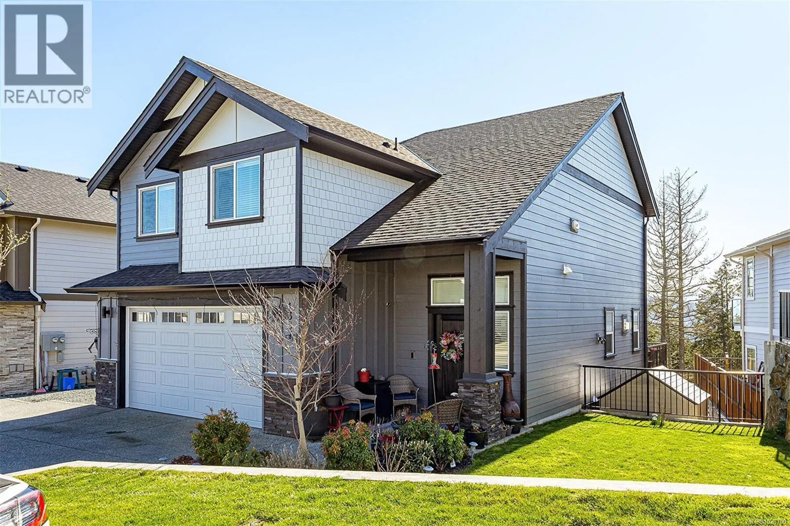 Discover elevated West Coast living at South Point, where style, sunshine, and sweeping views meet at 1307 Flint. Built in 2021, this executive home showcases a rare layout with four bedrooms upstairs and a private, legal one-bedroom suite belowâperfect for extended family, guests, or strong mortgage support without sacrificing privacy. Enjoy bright, south-facing views of the Olympic Mountains with ocean glimpses beyond. The main level impresses with 9â ceilings and a chef-inspired kitchen featuring quartz counters, white cabinetry, gas range, and stainless appliances flowing into a spacious living area with gas fireplace, surround sound, and sunset-view deck. Upstairs, the primary suite offers a walk-in closet and spa-like ensuite. Built Green with solar panels, heat pump, gas furnace, and on-demand hot water. Landscaped gardens, irrigation, veggie beds, and gas BBQ hookup complete this exceptional Langford home of modern luxury and comfort. One BR has no closet, easy to add. (id:27476)