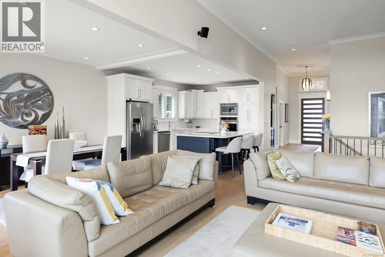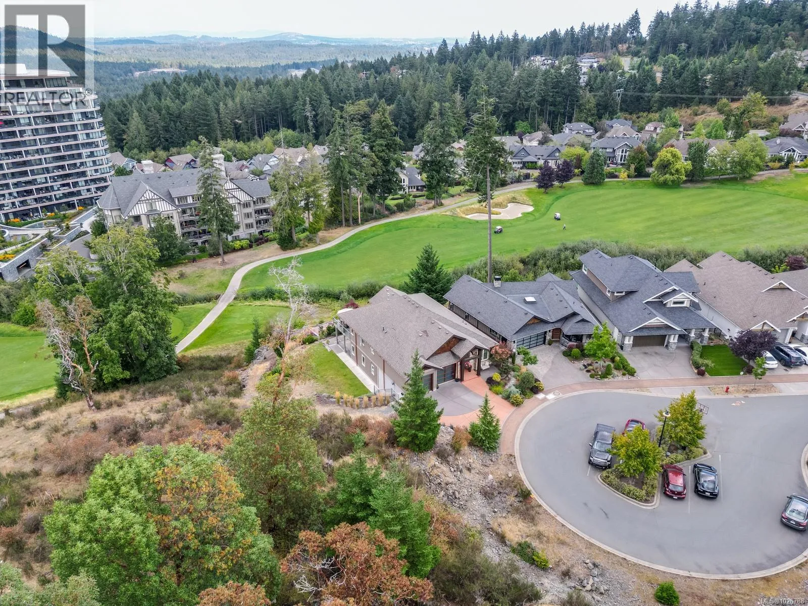Experience unparalleled craftsmanship in this West Coast contemporary residence on Bear Mountain, ideally positioned at the end of a private cul-de-sac with sweeping views of the Jack Nicklausâdesigned 18th fairway & green. Offering 3,381sqft, 3 beds + office & 4 baths, the home is filled with refined finishes: 12â ceilings, oak flooring, custom millwork, quartz counters, heated tile, & solid fir accents. The gourmet kitchen opens to a light-filled great rm w/gas FP, while a custom wine cellar sets the stage for elegant entertaining. The primary suite impresses w/walk-in & spa-inspired ensuite; a 2nd primary suite, family rm, 2nd kitchen, & guest quarters are found on the lower level. Multiple decks & professionally landscaped gardens frame the stunning golf course backdrop. $150,000 renovation completed in the last couple of years. A $60K golf membership completes this rare offering designed for those seeking luxury & lifestyle. (id:27476)