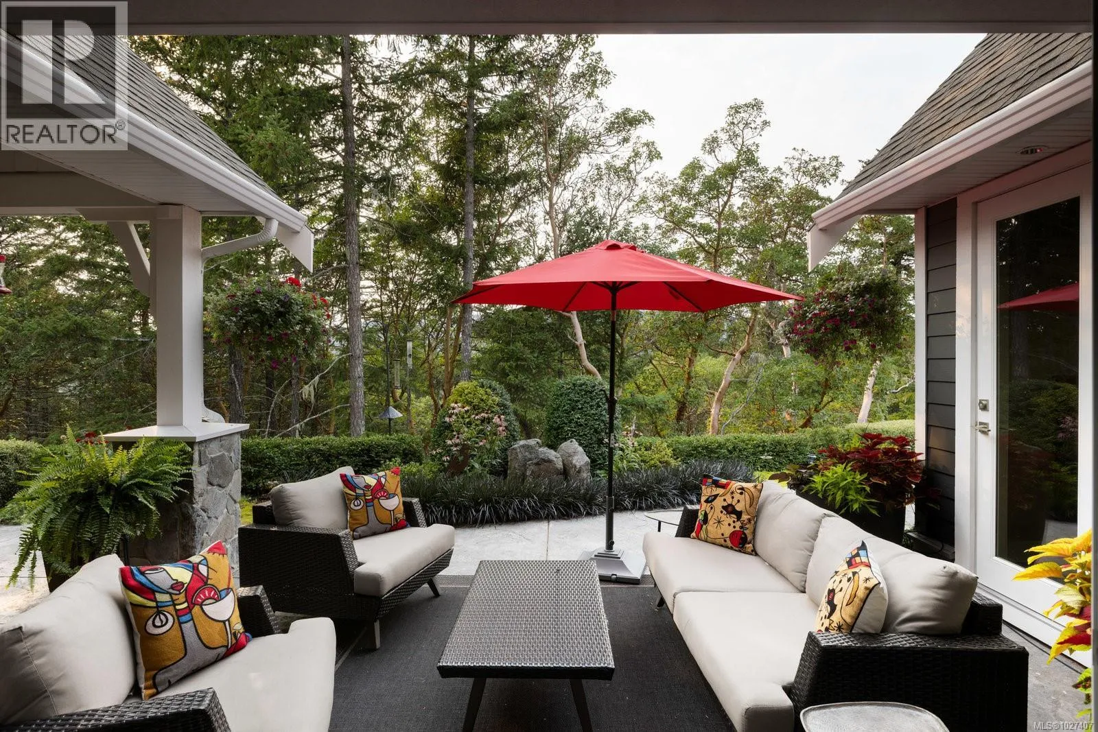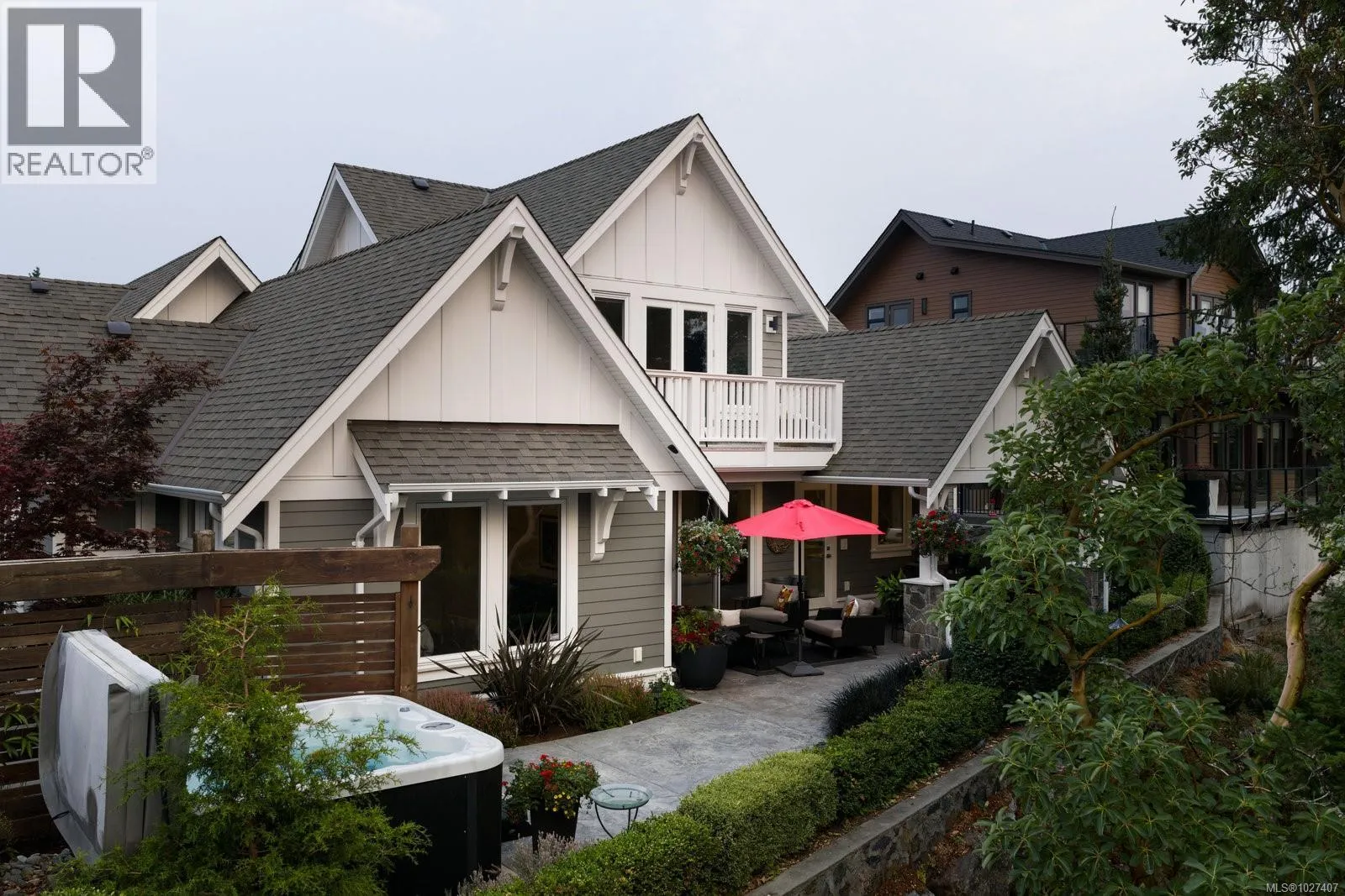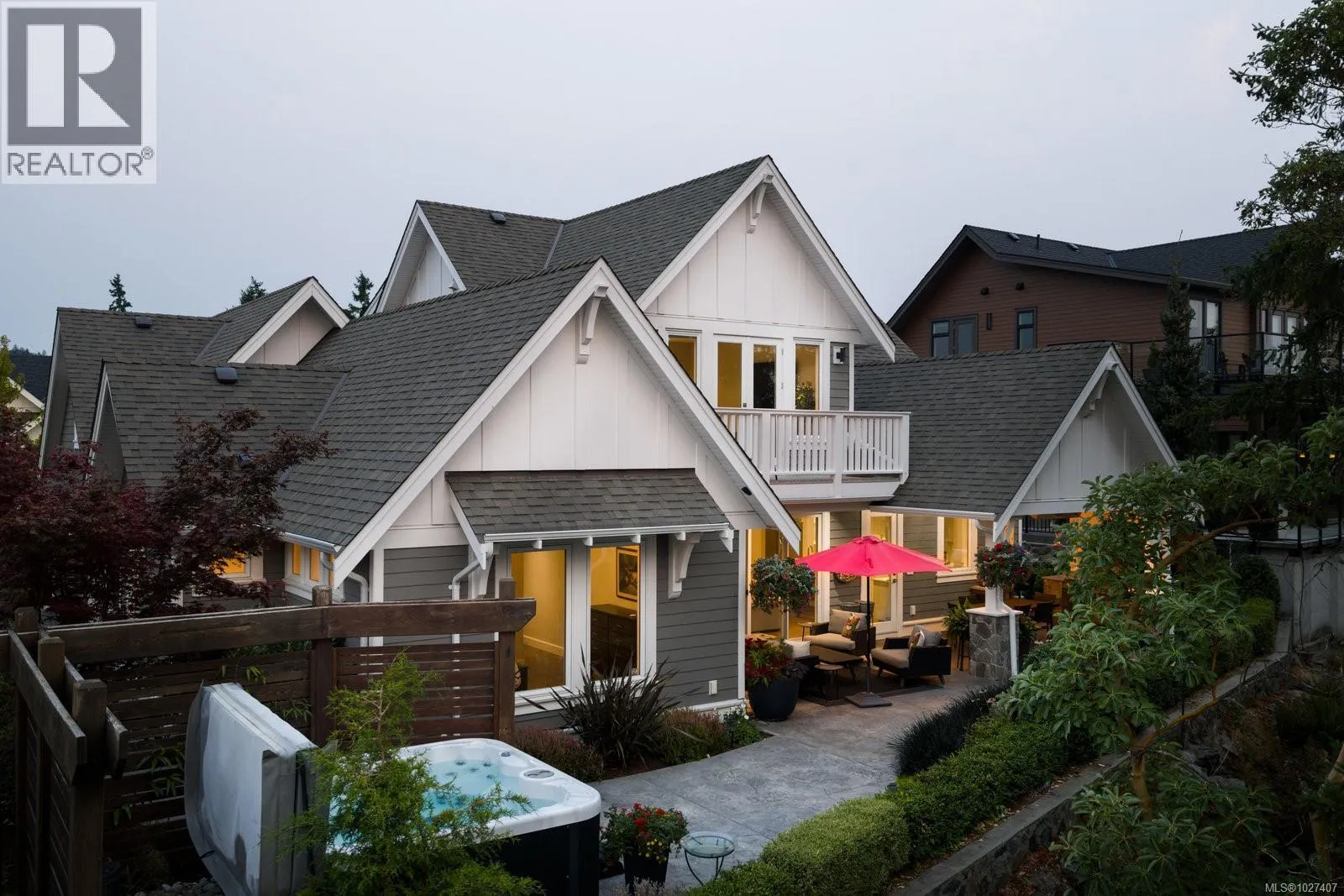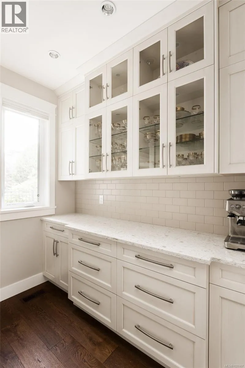Welcome to 1484 Pebble Place, a distinguished Arts and Crafts residence tucked within the exclusive Cypress neighbourhood bordering Goldstream Provincial Park. Built by KC Custom Designs, this 4 bed, 4 bath custom home blends timeless architecture with exceptional craftsmanship and thoughtful detail throughout. The main level showcases a chef-inspired kitchen with a Miele range, double wall ovens, oversized island, walk-in pantry, and elegant separate dining room. The living room is beautifully anchored by a statement fireplace with custom built-ins, offering an inviting gathering space. The primary bedroom features a spa-like 5-piece ensuite, soaker tub, and seamless walkout to the expansive west-facing patio. Upstairs offers two additional bedrooms, a family room with wet bar, built-in office workspace, and a versatile bedroom/bonus rec room. Enjoy the heated covered outdoor dining area with built-in BBQ station or relax in the private hot tub overlooking the mountains. Individual Golf Membership available! (id:27476)