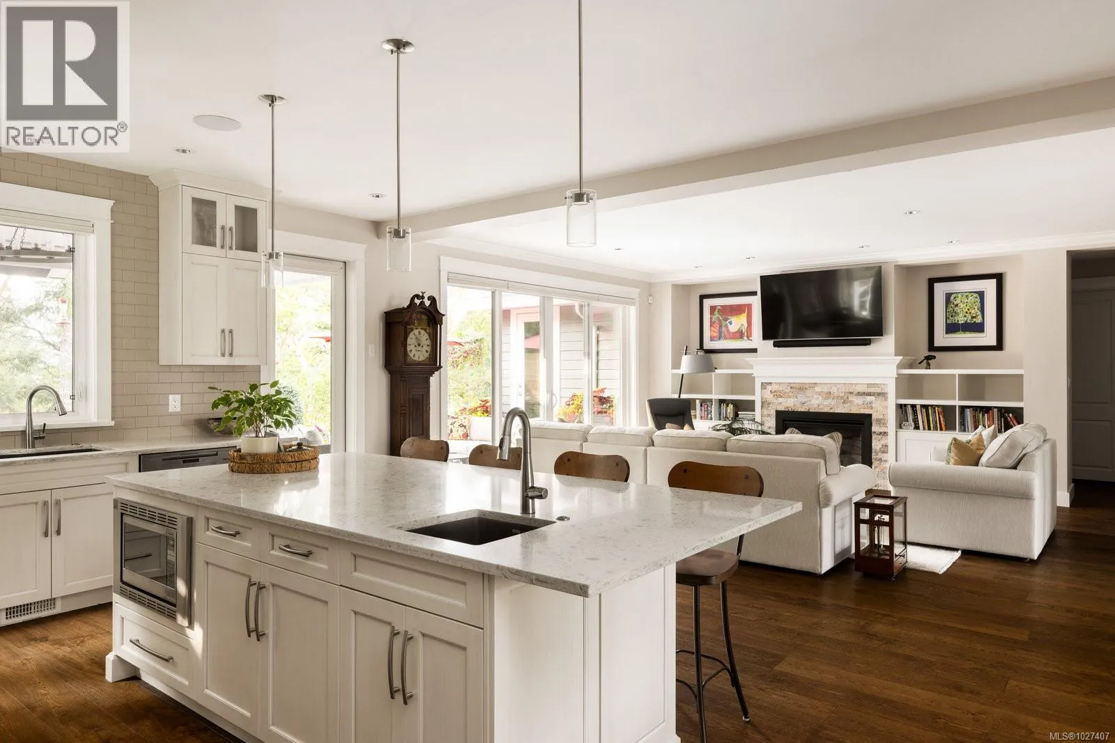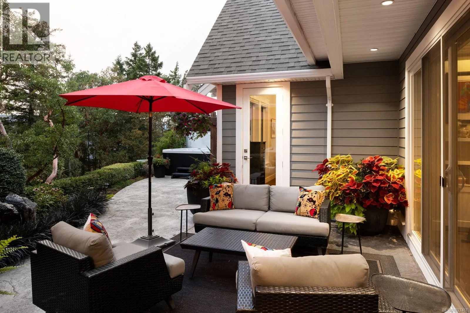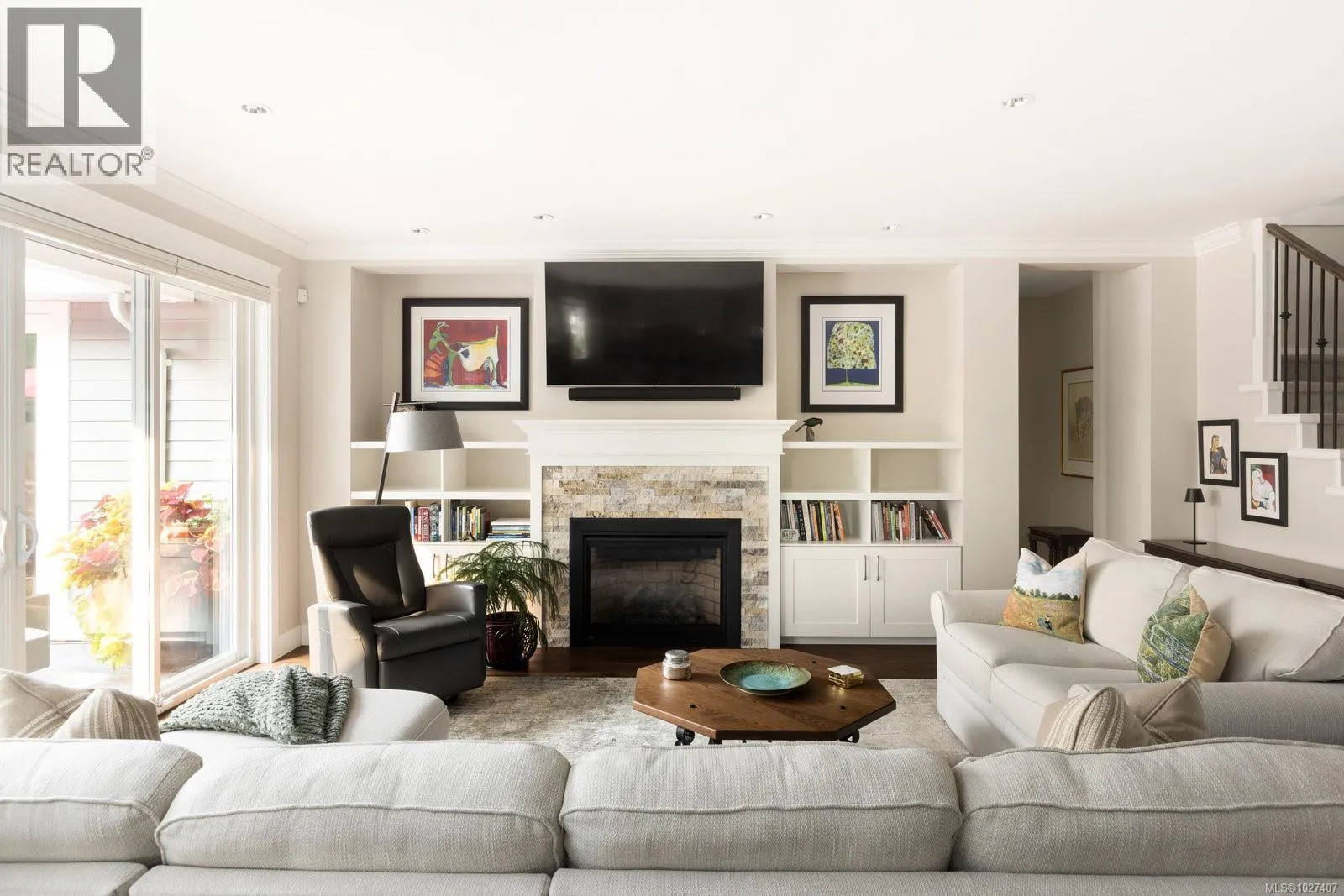 Welcome to 1484 Pebble Place, a distinguished Arts and Crafts residence tucked within the exclusive Cypress neighbourhood bordering Goldstream Provincial Park. Built by KC Custom Designs, this 4 bed, 4 bath custom home blends timeless architecture with exceptional craftsmanship and thoughtful detail throughout. The main level showcases a chef-inspired kitchen with a Miele range, double wall ovens, oversized island, walk-in pantry, and elegant separate dining room. The living room is beautifully anchored by a statement fireplace with custom built-ins, offering an inviting gathering space. The primary bedroom features a spa-like 5-piece ensuite, soaker tub, and seamless walkout to the expansive west-facing patio. Upstairs offers two additional bedrooms, a family room with wet bar, built-in office workspace, and a versatile bedroom/bonus rec room. Enjoy the heated covered outdoor dining area with built-in BBQ station or relax in the private hot tub overlooking the mountains. Individual Golf Membership available! (id:27476)