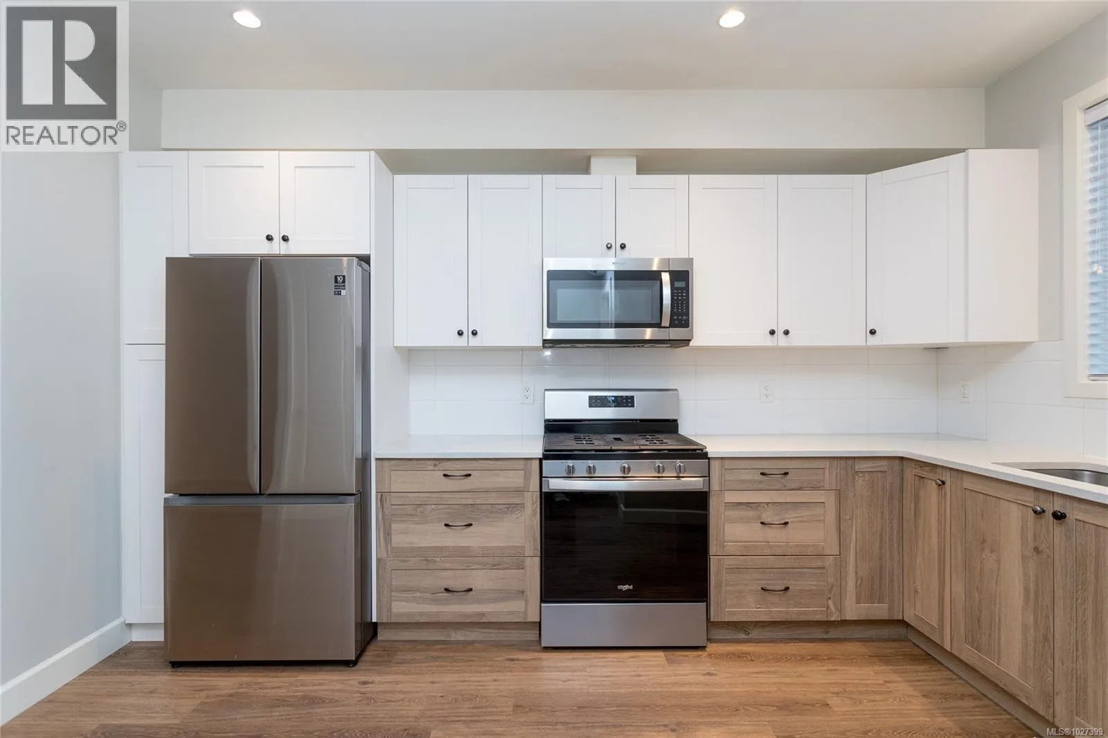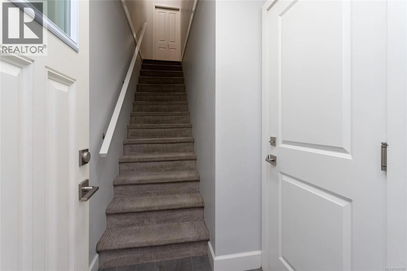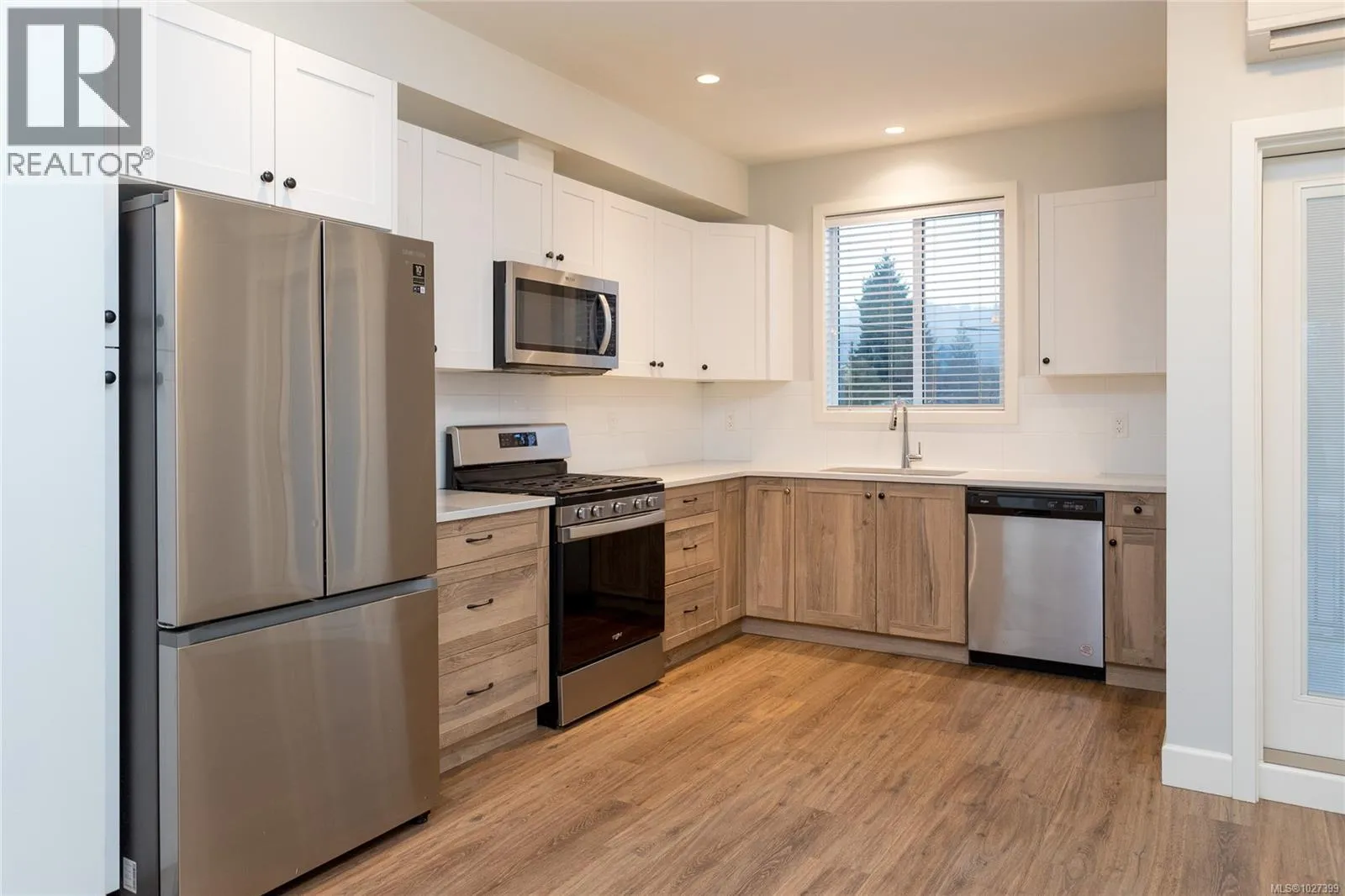 Beautifully designed 3-bedroom, 3-bathroom in the sought-after Luxton Flats community, built in 2021 & located in the heart of family-friendly Happy Valley. Offering over 1,300 sq. ft. of well-planned living space, this home blends modern design w everyday comfort. Open-concept main level features 9â ceilings & stylish kitchen w quartz countertops, subway tile backsplash, stainless steel appliances + gas range, flowing seamlessly into the dining & living areasâideal for both entertaining & daily living. Step outside to a quiet balcony w natural gas BBQ hookup, perfect for morning coffee or year-round enjoyment. Upstairs, the spacious primary bedroom offers a walk-in closet & ensuite, second large bedroom, dedicated office/third bedroom & a full bathroom. Other features include ductless heat pumps, gas hot water, tandem 2 car garage, ample storage & direct access to a fully fenced yardâperfect for kids or pets. Convenient location close to parks, schools & the Galloping Goose Trail. (id:27476)