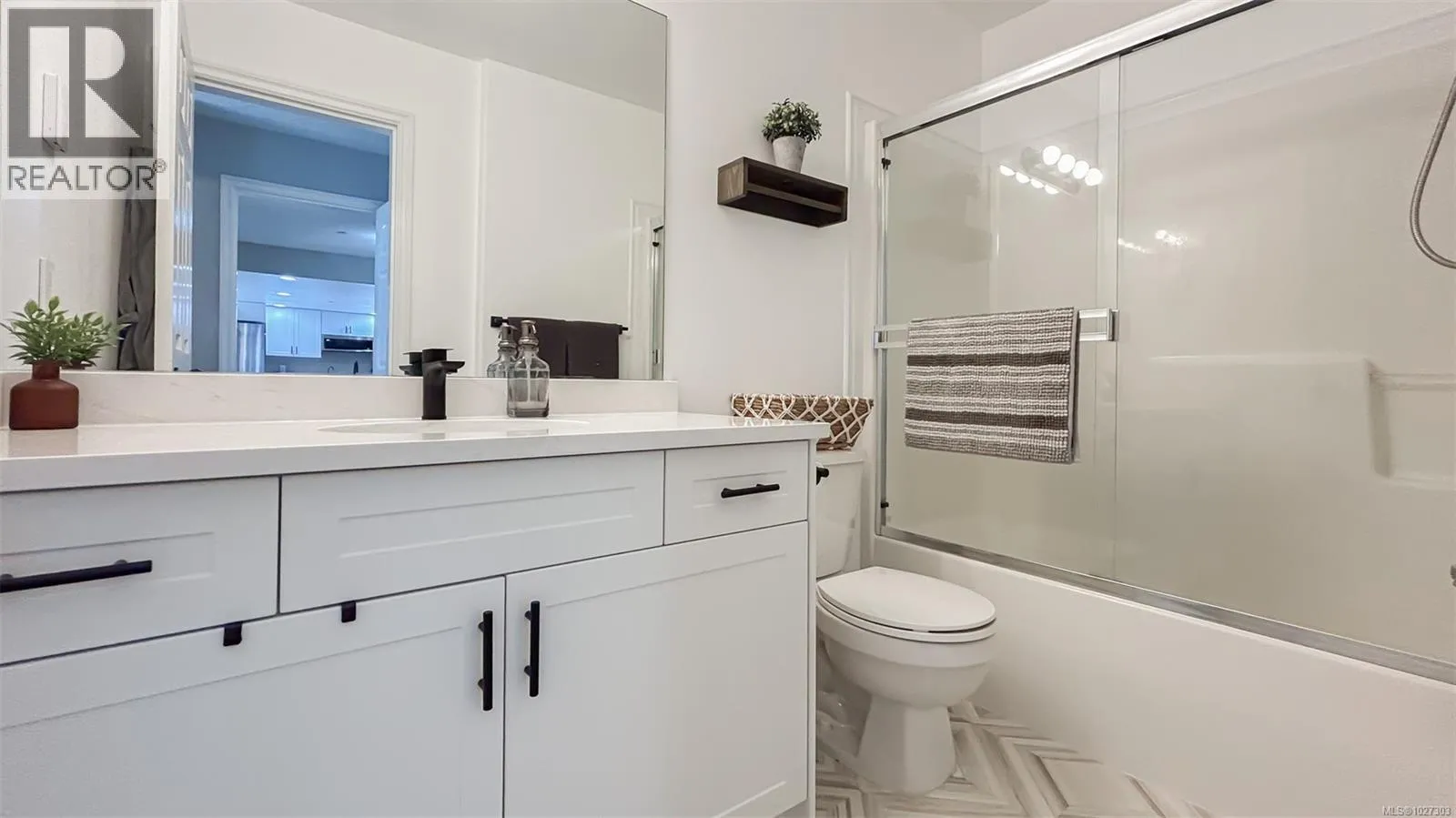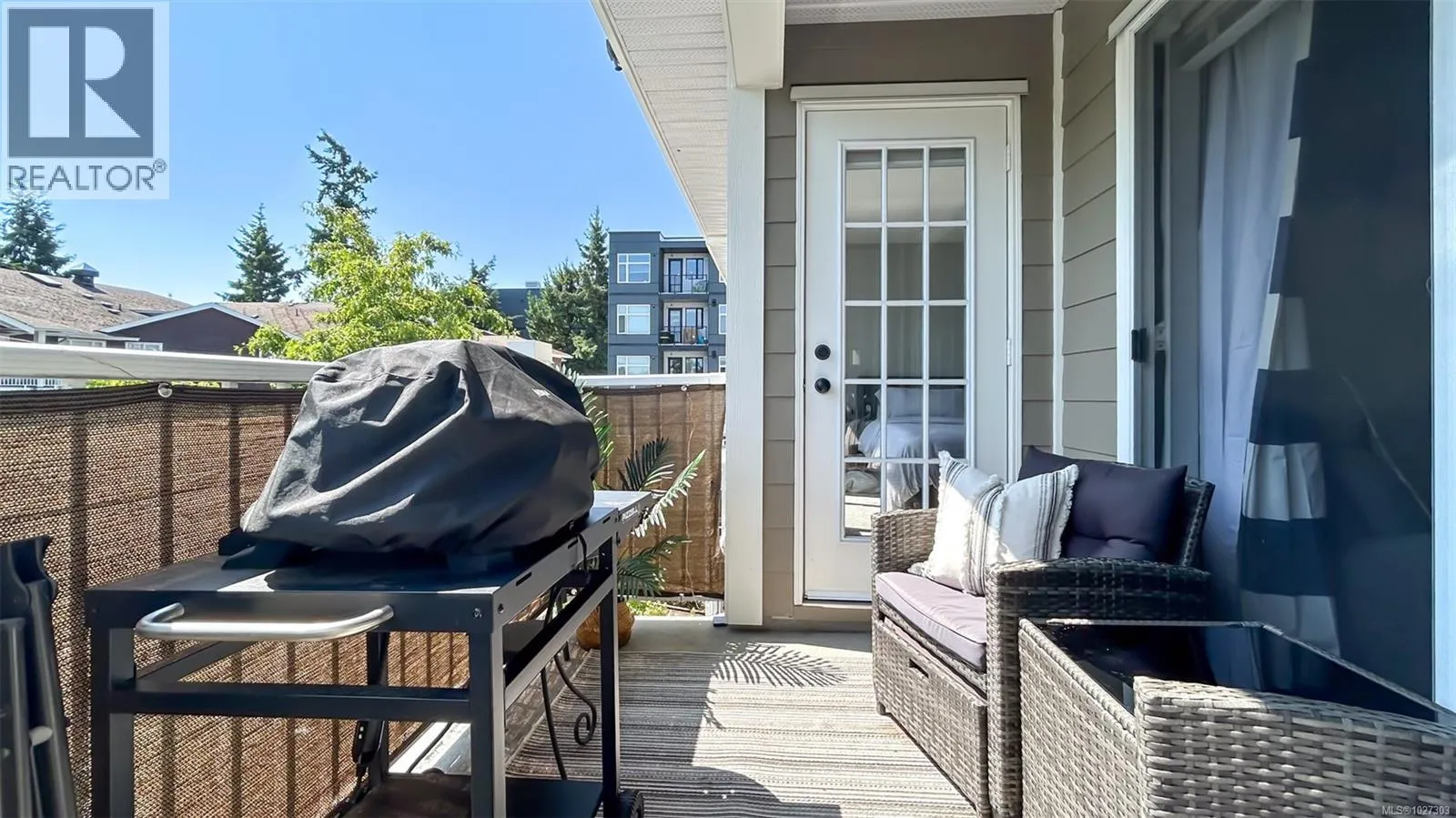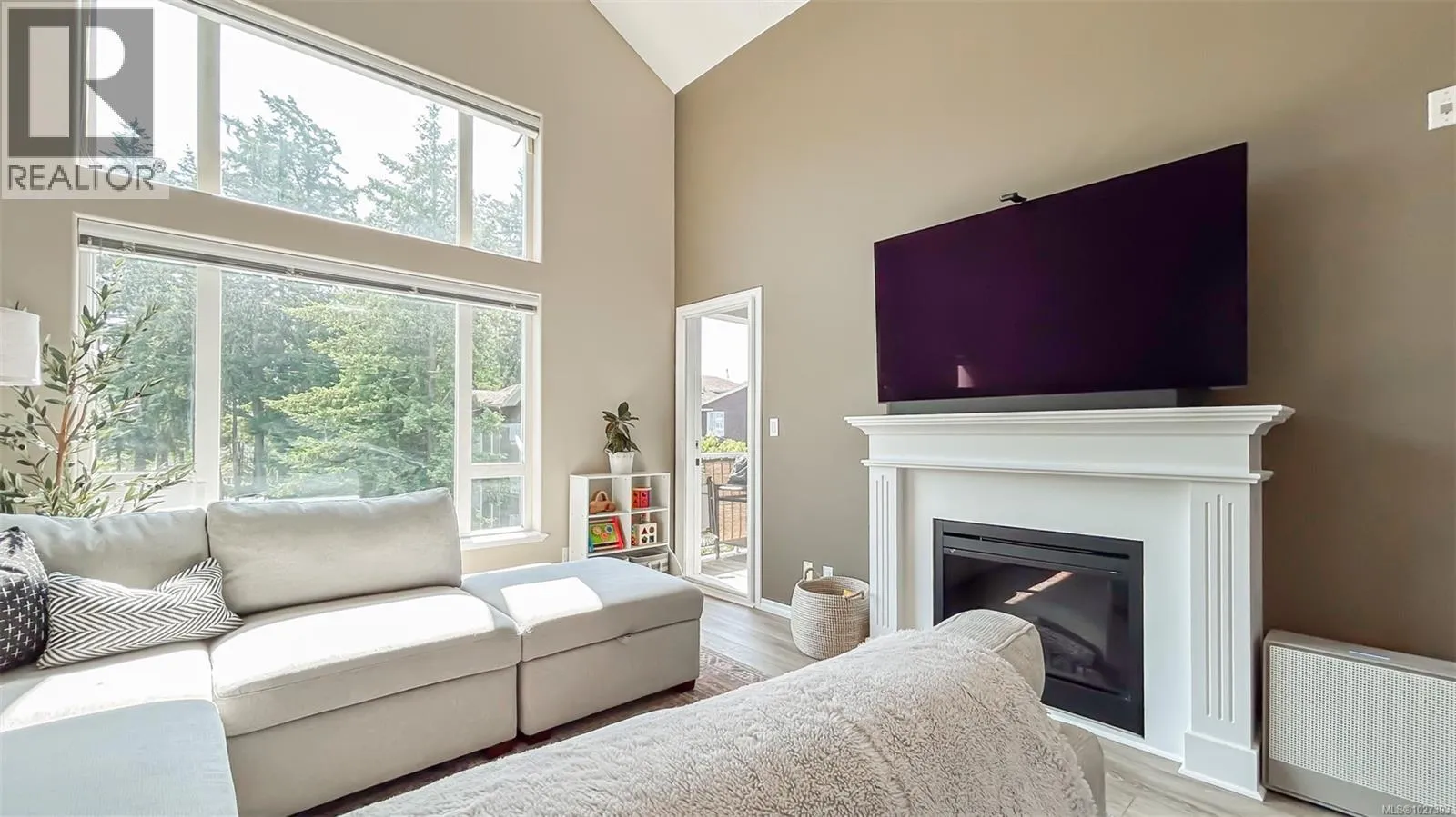 Spacious, beautifully updated 2-bed, 2-bathroom top-floor condo offers over 1,000 sqft of thoughtfully designed living space in the heart of Langford. 18-foot vaulted ceilings, bright open-concept, new flooring throughout combines style, comfort, and functionality. Newley renovated kitchen, elegant quartz countertops, brand-new stainless-steel appliances, and ample cabinetryâperfect for everyday living or entertaining. Cozy up by the fireplace in the living area, or step out onto your private balcony to enjoy your morning coffee. Bonus versatile loft space for a home office, reading nook, or guest area. In-suite laundry, a dedicated parking stall, and smart home upgrades Mysa thermostats and Govee smart lighting. This pet-friendly building is centrally located near shops, cafes, parks, and transit, making it ideal for professionals, couples, or small families. Donât miss the rare opportunity to own a bright, modern condo in one of Langfordâs most walkable and connected neighborhoods. (id:27476)