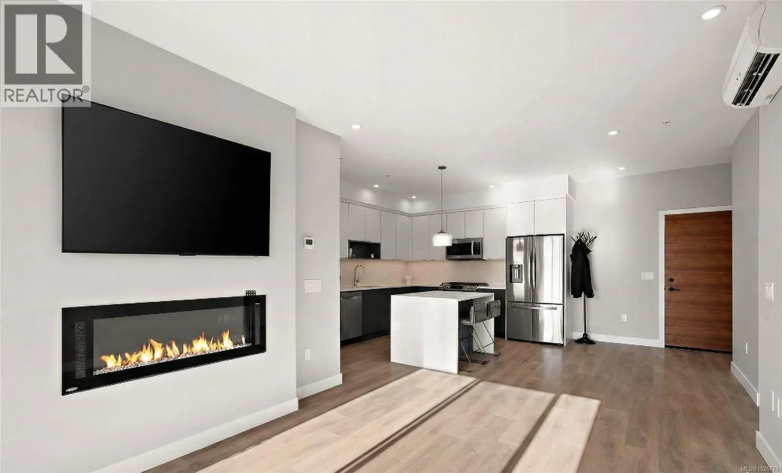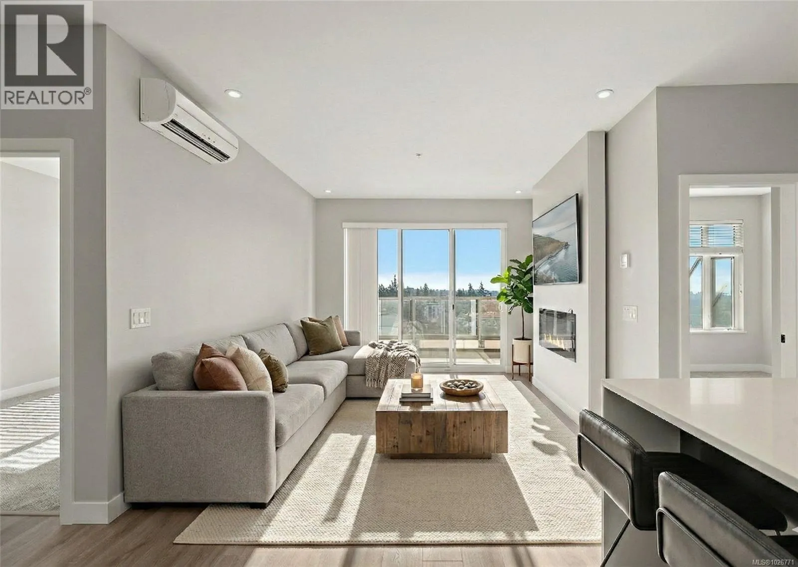 TWO parking stalls, TWO pets welcome, and THREE heat pump heads make this home a rare find. Welcome to Residence II, a top-floor retreat offering exquisite mountain views and abundant natural light throughout the day. The oversized southeast-facing balcony captures morning and afternoon sun, an ideal space for relaxation and outdoor living with panoramic scenery. Spacious layout anchored by a house-sized kitchen with gas range, quartz counters, generous cabinetry, and bright under-cabinet lighting, perfect for cooking and entertaining. Relax beside the elegant fireplace while enjoying views or step outside to your private balcony. Large bedroom windows and expansive glass enhance the bright, welcoming atmosphere. Individually controlled heating and cooling in bedrooms and the living space ensure year-round comfort. Centrally located minutes to Thetis Lake and Florence Lake, close to restaurants and all amenities in Langford. A standout condo blending space, luxury, and lifestyle. (id:27476)