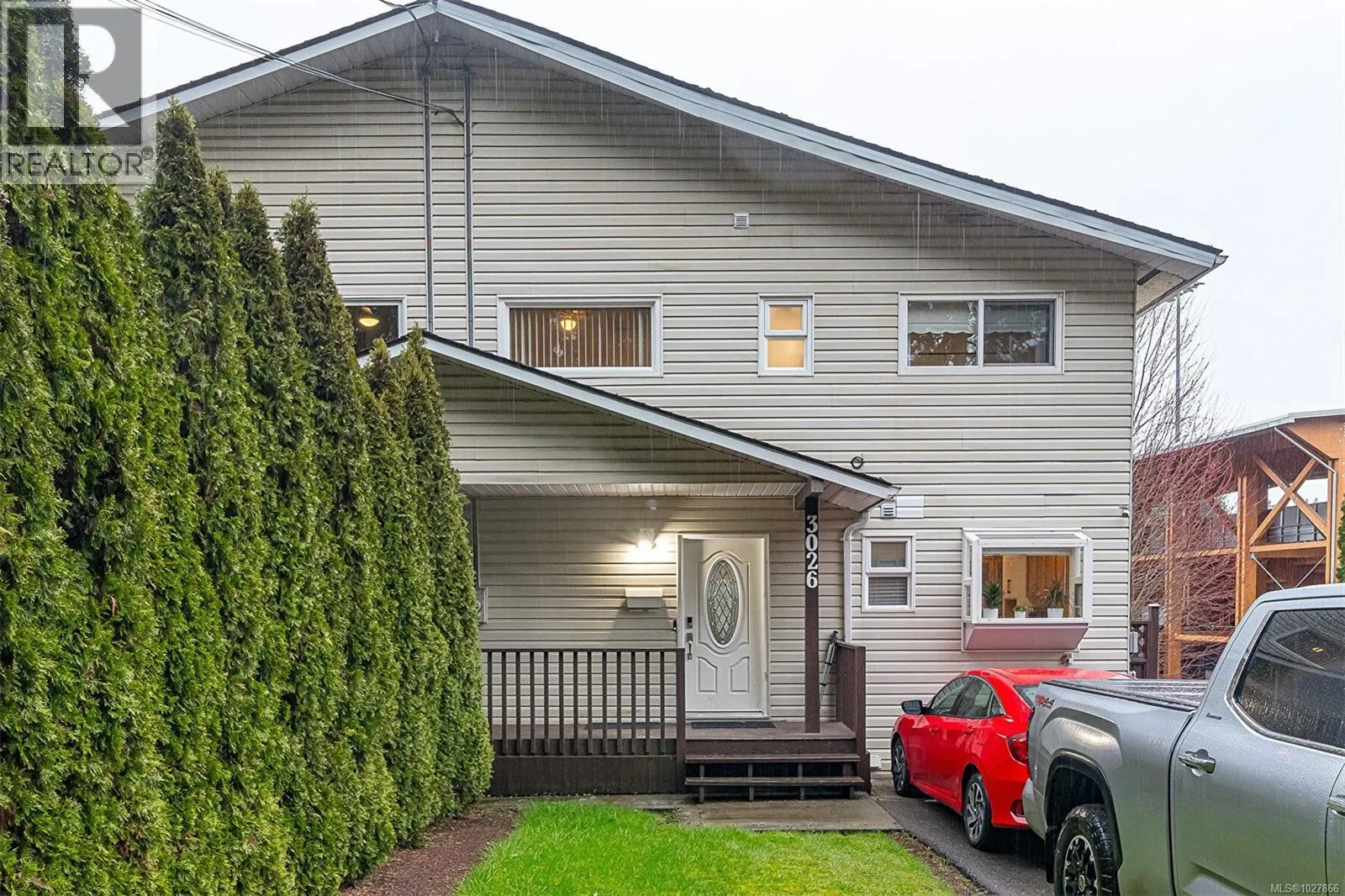 Westshore comfort, convenience and single-family charm with generous front and back yards. Perfect for first-time buyers! This move-in-ready half-duplex offers nearly 1,850 sq ft of comfortable living and a versatile one-bedroom in-law suite with separate entry and shared laundry, ideal for rental income, a home office, or multi-generational living. The two-level main home features a bright, sun-filled living room with an electric fireplace that flows into a formal dining area and a slider to a sunny deck with Starlight Stadium viewsâgreat for morning coffee or weekend BBQs. A skylit kitchen with wraparound counters provides plenty of workspace for cooking and storage. Upstairs, the roomy primary bedroom includes a generous closet, while an updated full bath and two additional bedrooms complete the level. Situated on a large 0.11-acre lot, the home offers a fully fenced backyard, a generous front yard, and parking for 6+ vehicles. The location is hard to beatâjust minutes from Glen Lake, Langford Lake, the Galloping Goose Trail, Westshore Mall, Belmont Market, restaurants, YMCA, Belmont High School, and Starlight Stadium. Easy access to transit and the highway makes commuting simple. A fantastic chance to own in one of the fastest-growing areas of Westshoreâbook your showing today! (id:27476)