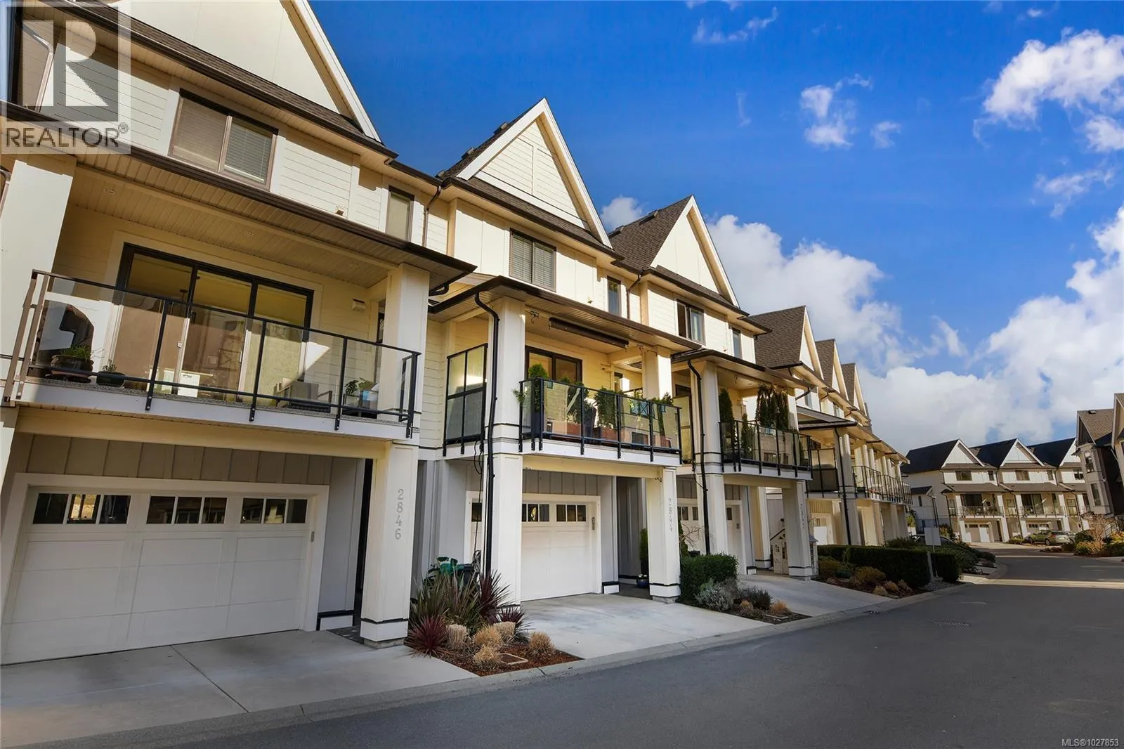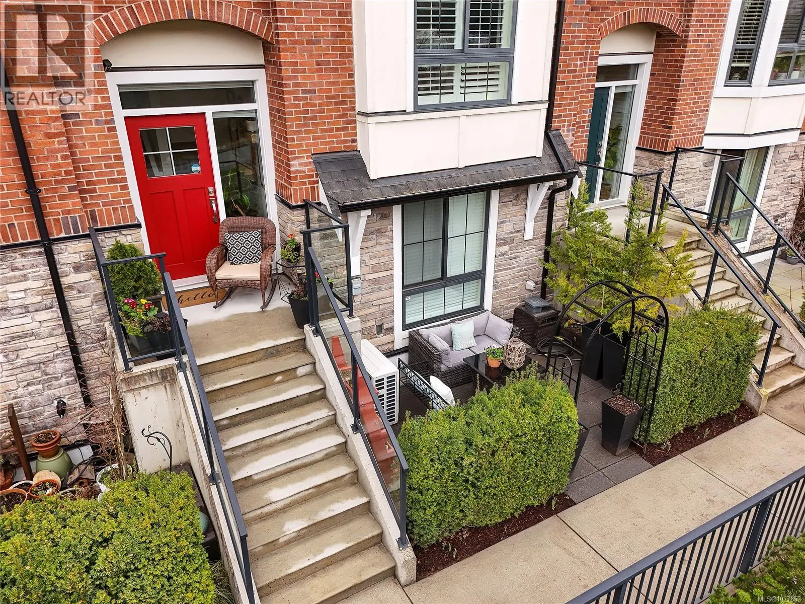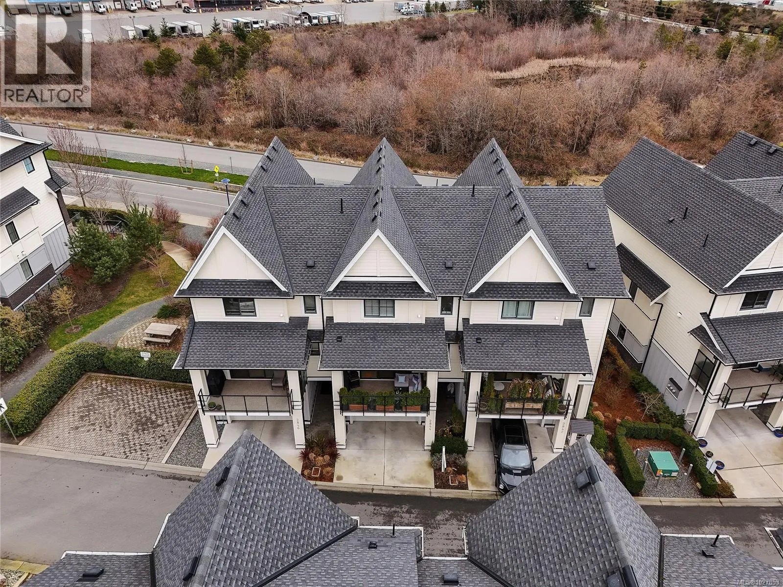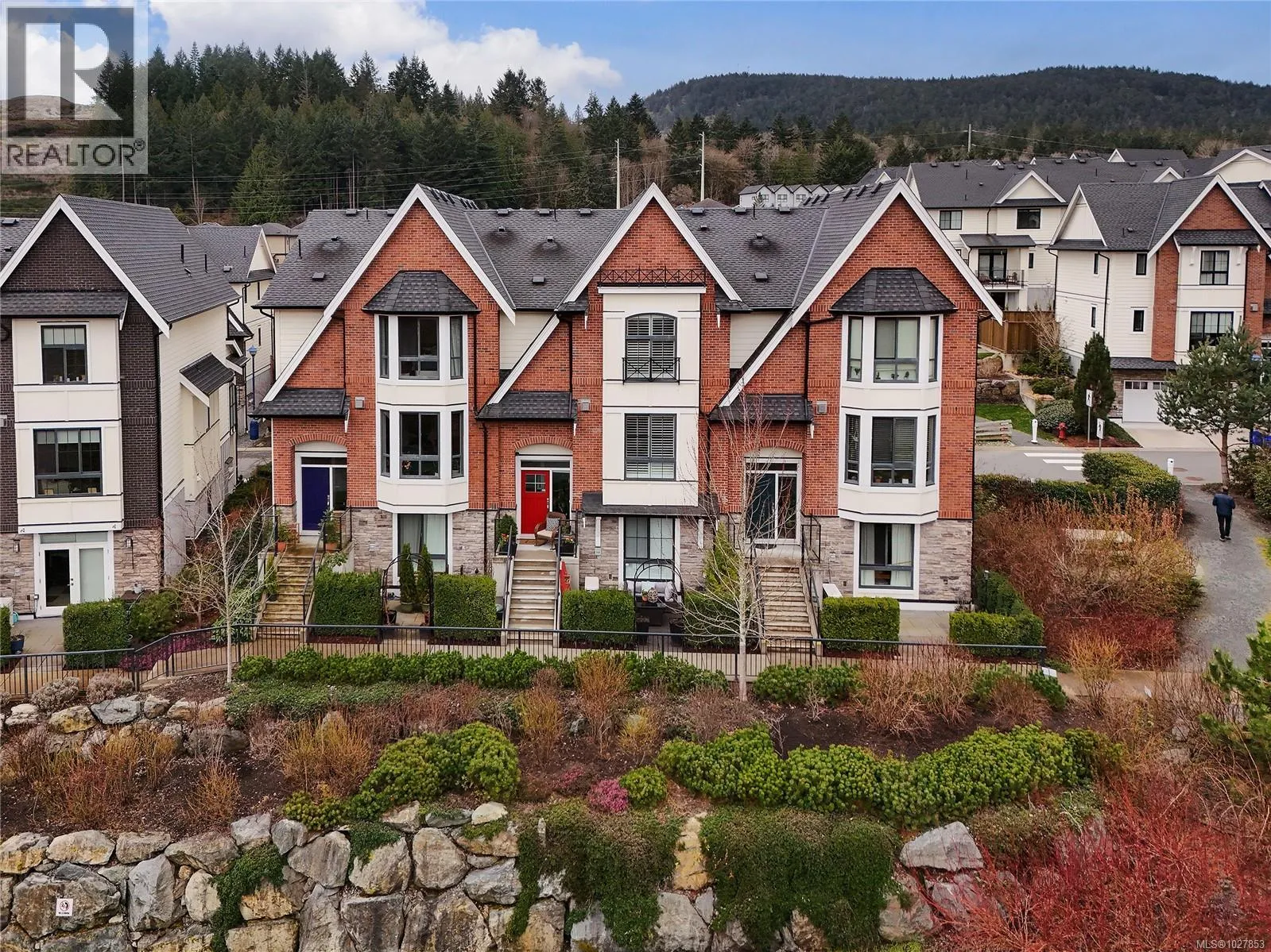 Beautifully appointed 4 bed, 3 bath townhome in The Brownstones at Langford Lake in sought-after Kettle Creek! The main floor features a bright open-concept layout with a spacious dining area, chef-inspired kitchen with quartz counters, shaker cabinetry, stainless appliances, gas range, and large island, and a comfortable living room anchored by a cozy gas fireplace. Step out to the spacious South facing balcony with a gas connection ready for family barbecues. Upstairs offers 3 bedrooms and 2 bathrooms, including a spacious primary retreat with a 12.5-ft vaulted ceiling, custom walk-through closet, and double-sink ensuite with a large walk-in shower. Two additional generous bedrooms and a full bathroom complete the upper level. Downstairs features a versatile bedroom or home office/family room. Enjoy your morning coffee on the East facing patio with views toward Skirt Mountain. Oversized 1-car garage with a workshop area and plenty of storage with room for a second vehicle in the driveway. Custom blinds and shutters, built-in vacuum, heat pump with A/C for year around comfort. Located in a vibrant Langford neighbourhood close to parks, trails, schools, shopping, and everyday amenities. (id:27476)