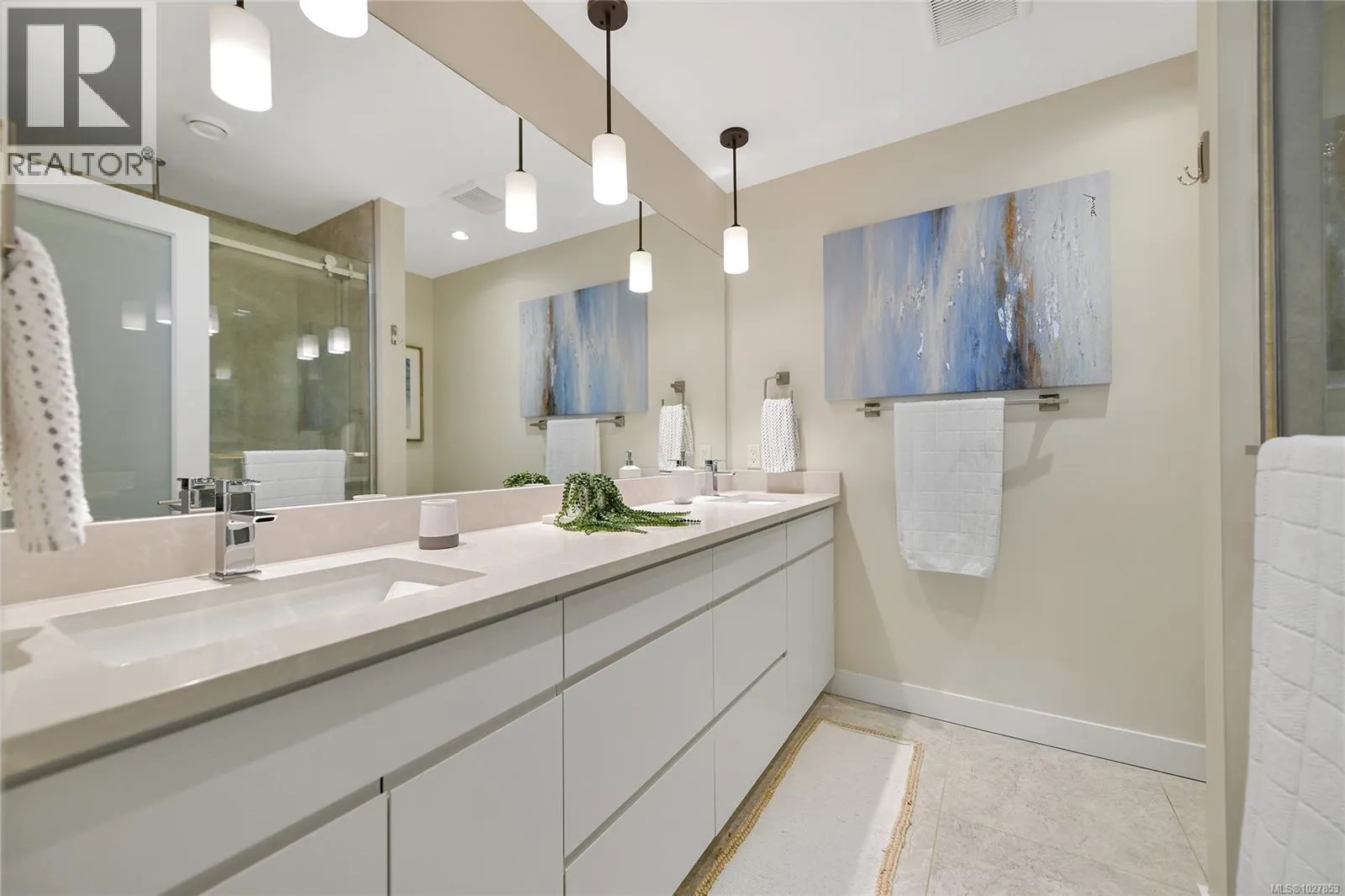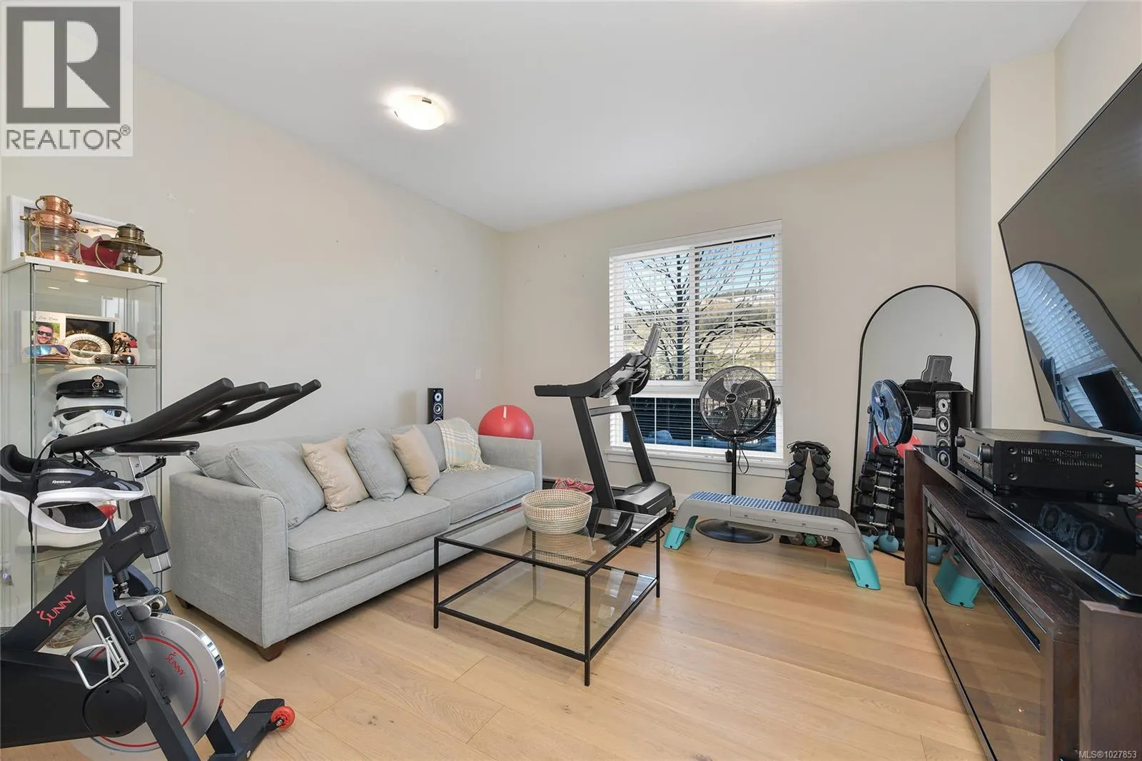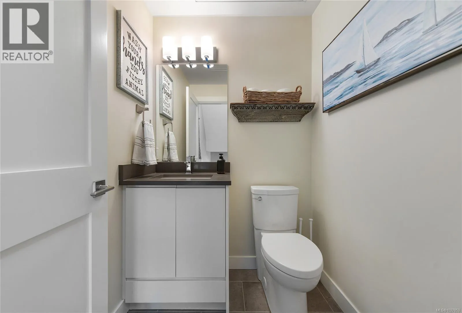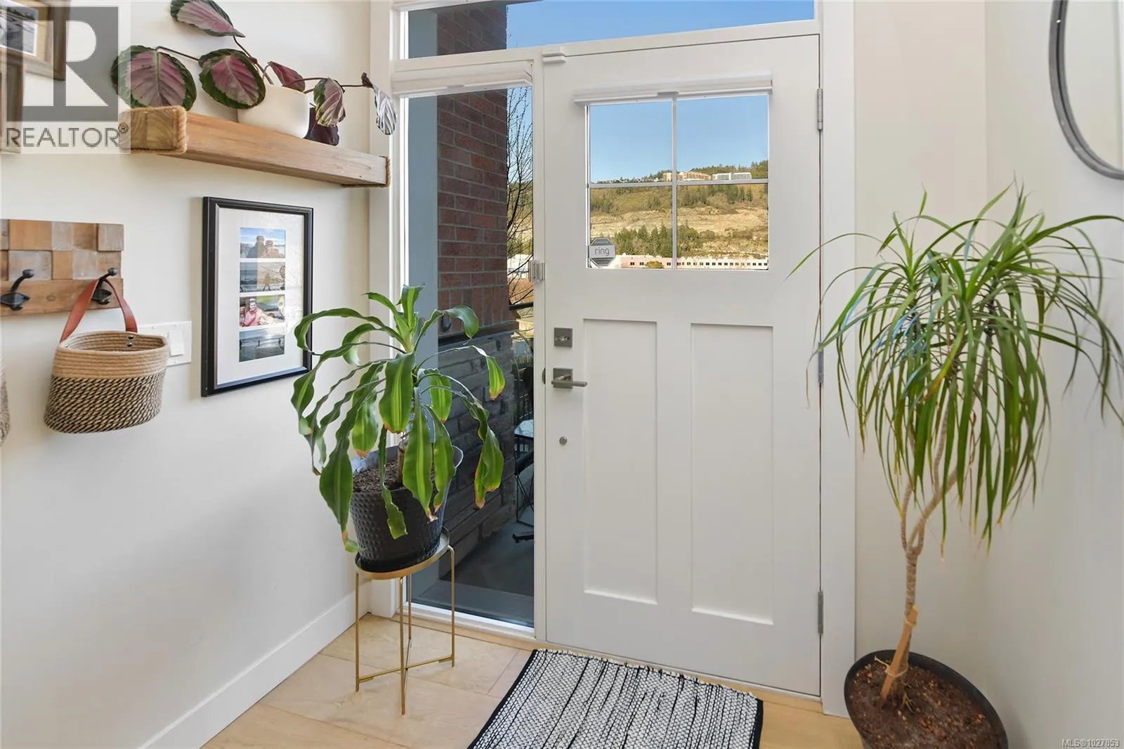 Beautifully appointed 4 bed, 3 bath townhome in The Brownstones at Langford Lake in sought-after Kettle Creek! The main floor features a bright open-concept layout with a spacious dining area, chef-inspired kitchen with quartz counters, shaker cabinetry, stainless appliances, gas range, and large island, and a comfortable living room anchored by a cozy gas fireplace. Step out to the spacious South facing balcony with a gas connection ready for family barbecues. Upstairs offers 3 bedrooms and 2 bathrooms, including a spacious primary retreat with a 12.5-ft vaulted ceiling, custom walk-through closet, and double-sink ensuite with a large walk-in shower. Two additional generous bedrooms and a full bathroom complete the upper level. Downstairs features a versatile bedroom or home office/family room. Enjoy your morning coffee on the East facing patio with views toward Skirt Mountain. Oversized 1-car garage with a workshop area and plenty of storage with room for a second vehicle in the driveway. Custom blinds and shutters, built-in vacuum, heat pump with A/C for year around comfort. Located in a vibrant Langford neighbourhood close to parks, trails, schools, shopping, and everyday amenities. (id:27476)