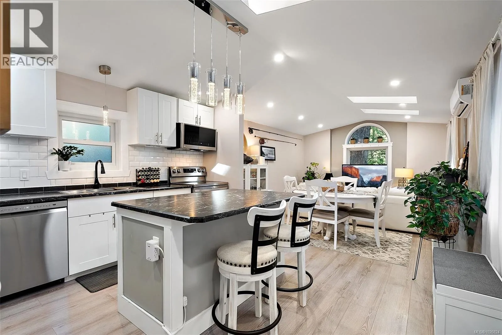 CALLING ALL GARDENERS AND PET LOVERS! Skip the condo lifestyle and enjoy the space and privacy. Outdoor living offered by this beautifully updated 2 BED, 2 BATH home in a WELL-RUN 55+ COMMUNITY, dogs and cats welcome! COMPLETELY RENOVATED IN 2023, this home is turn key, features a modern UPDATED KITCHEN with open floor plan. A SEPARATE LAUNDRY ROOM, HEAT-PUMP year-round comfort, and ample STORAGE. Step outside to your own SUN-DRENCHED GARDEN OASIS where youâll find WATERMELONS, STRAWBERRIES, APPLES, TOMATOES, PUMPKINS, CUCUMBERS AND MORE growing right at home. Relax on the large SUNNY DECK while your furry companions enjoy the FULLY FENCED YARD. Residents of Hidden Valley also enjoy DIRECT ACCESS TO FLORENCE LAKE through the complex perfect for SWIMMING, PADDLING, lake side walks. Just minutes away are the conveniences of MILLSTREAM VILLAGE & COSTCO. A fantastic opportunity to DOWNSIZE without compromising garden space, in one of Langfordâs most desirable manufactured home communities. (id:27476)