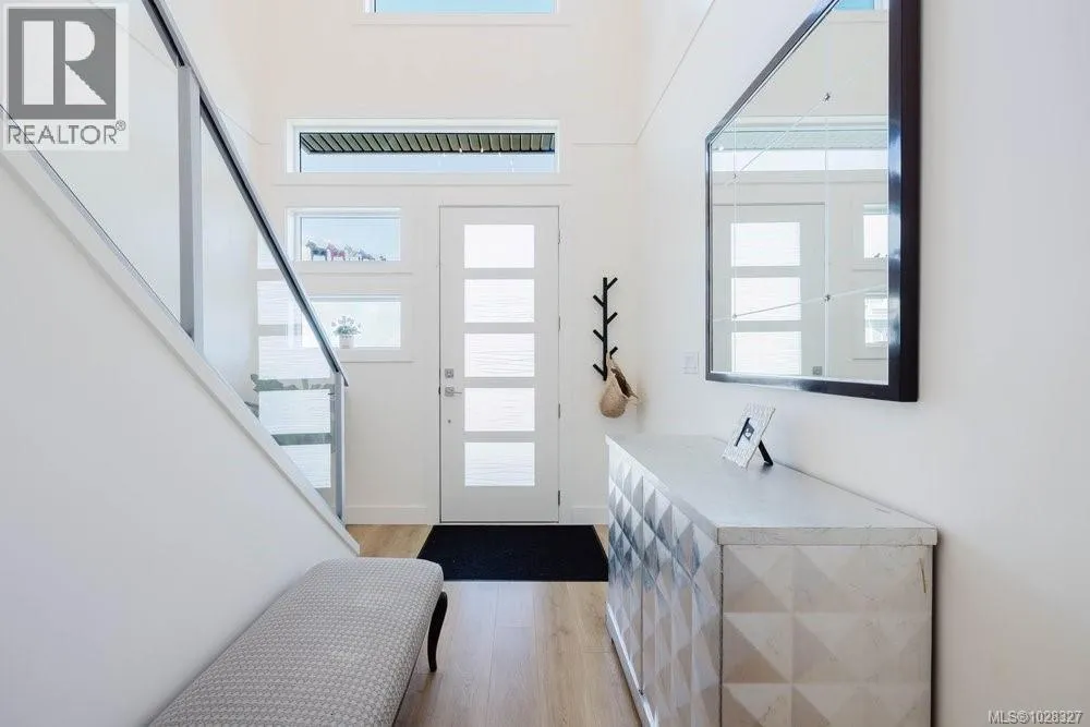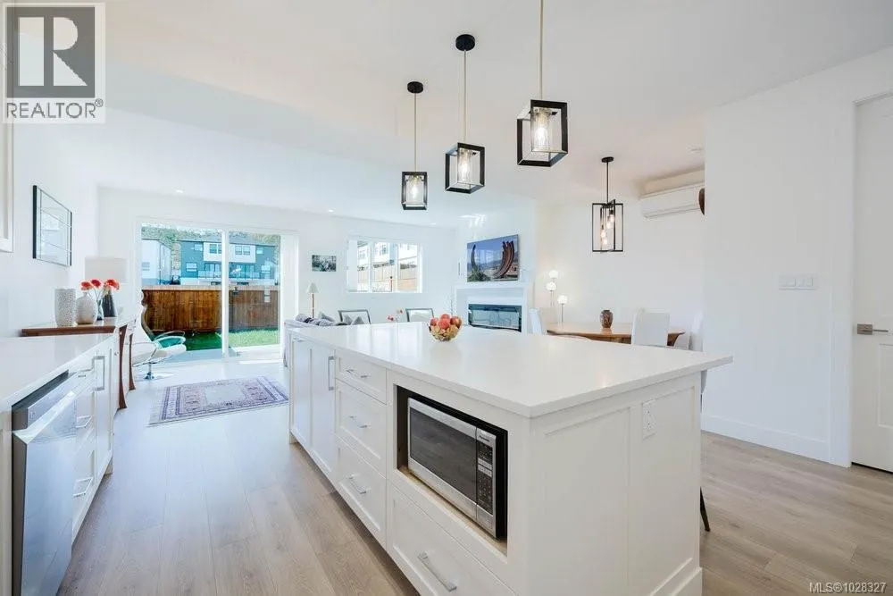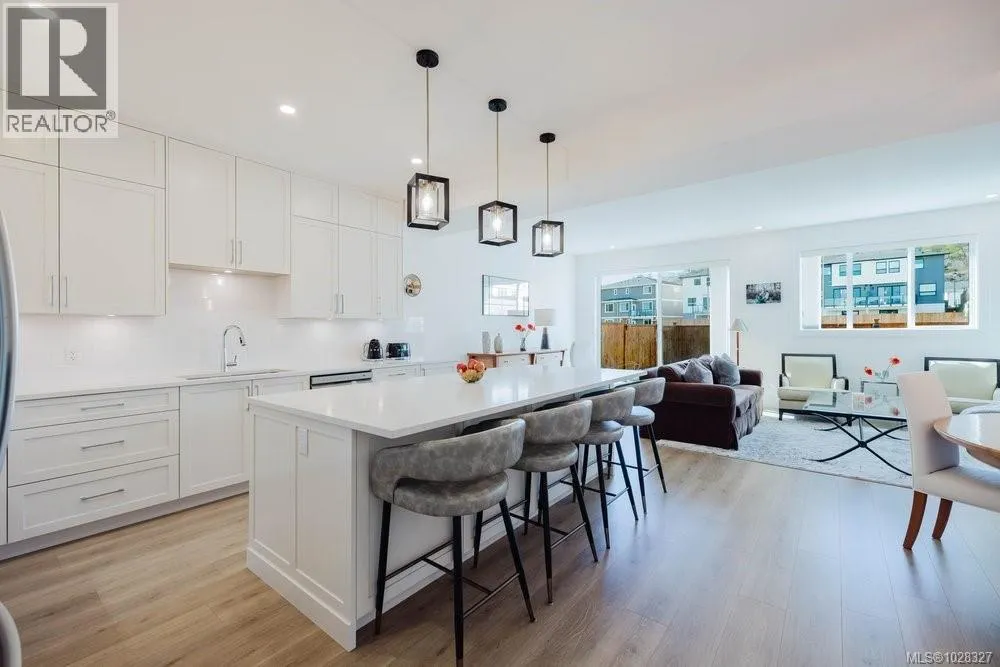 Almost new with no GST, no strata fees, and a new home warranty still in place for peace of mind! Bright, sunny, and beautifully maintained, this 3-year-young half duplex in the sought-after Southpoint neighbourhood of Bear Mountain offers 3 bedrooms and 3 bathroomsâan excellent opportunity for a young family, downsizers, or anyone looking to enter the market under $1 million in a nearly new home. The welcoming entry features a vaulted ceiling that creates a bright and spacious first impression. The main level offers an inviting open-concept layout centered around a stunning oversized island with quartz countertops and a maple kitchen, complemented by designer cabinetry, designer colours, and stylish feature walls. Wood-type flooring throughout the home adds warmth while providing easy, low-maintenance living. The living area is anchored by a cozy electric fireplace, creating the perfect place to relax or entertain. Ductless heat pumps provide efficient heating and cooling year-round. Step outside to a fully fenced backyard and patio with gas BBQ outlet, offering a safe and private outdoor space thatâs perfect for kids and pets as well as casual outdoor gatherings. Upstairs you'll find three spacious bedrooms, including a bright primary suite with heated tile floors in the ensuite and double side-by-side âhis and hersâ walk-in closets. Each bedroom offers excellent natural light and comfortable living space. Built Green Certified and complete with landscaping and irrigation, this home is truly move-in ready. Located in a great central Langford location with a daycare around the corner, easy highway access, and on a city bus route. Just minutes to Bear Mountainâs golf, resort amenities, trails, and recreation. A fantastic opportunity to own a nearly new home in a vibrant and convenient community. (id:27476)