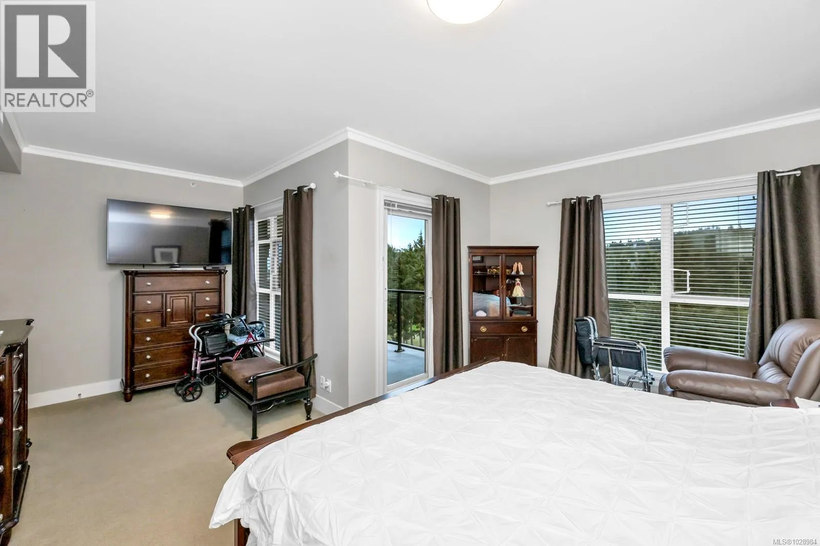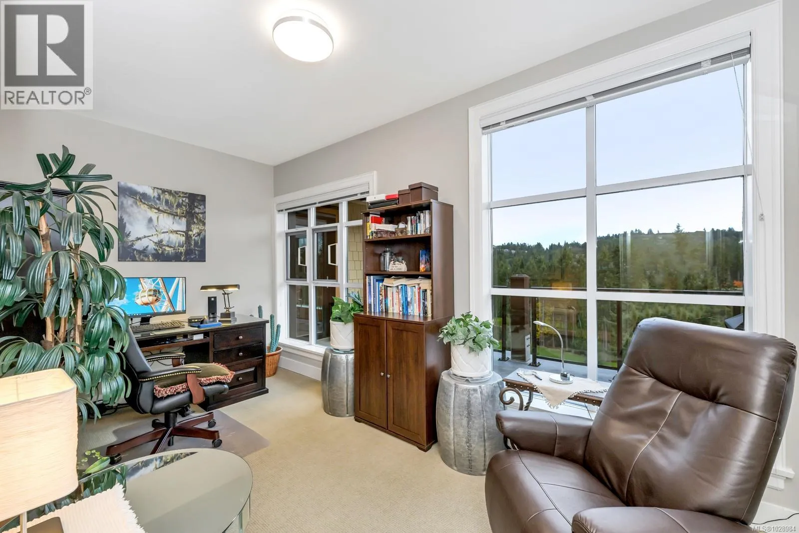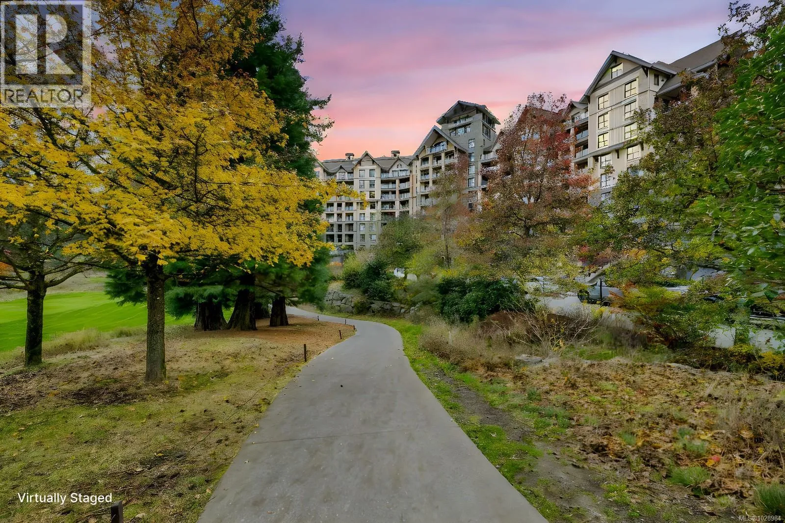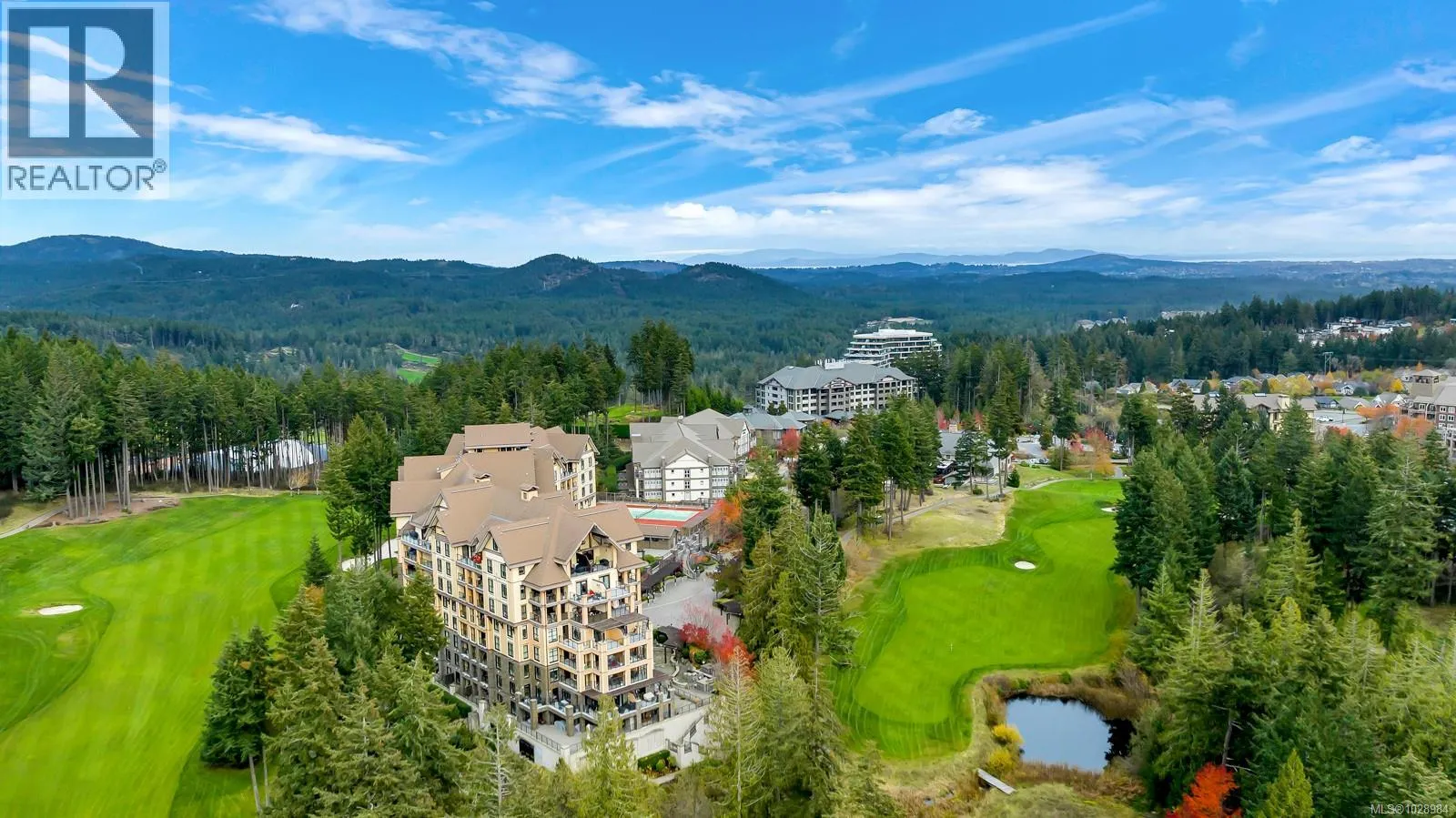 Rare fully furnished Bear Mountain penthouse with breathtaking panoramic views. Perched high above the landscape in the prestigious Bear Mountain community, this fully furnished 2,100 SqFt penthouse residence offers spectacular panoramic views and true resort-style living. From the 8th floor, soaring lofted ceilings and expansive windows showcase breathtaking vistas that stretch for miles. Beautiful walnut flooring, an exceptional chefâs kitchen with high-end appliances, gas fireplace, heat pump, and upgraded LED lighting highlight the impeccable quality throughout. A striking loft-style bonus space with its own 3-piece bath offers ideal flexibility for guests, office, or private retreat. Two generous decks capture both morning and evening sun, creating perfect spaces to relax or entertain. Set within the sought-after Bear Mountain community, enjoy golf at a Jack Nicklaus designed course, hiking the renowned trails of Mount Finlayson, and the restaurants and cafés of Bear Mountain Village just minutes away. Nearby shopping at Millstream Village, Costco, Walmart and Belmont Market provides everyday convenience, while quick highway access makes commuting to Downtown Victoria simple and efficient. Residents enjoy luxury building amenities including concierge services, theatre room, steam shower, sauna, fitness centre, and elegant entertainment spaces. The unit also includes two of the closest parking stalls to the elevator and the largest storage locker in the building located steps from the elevator. A rare opportunity to own one of Bear Mountainâs most impressive penthouse offerings. (id:27476)