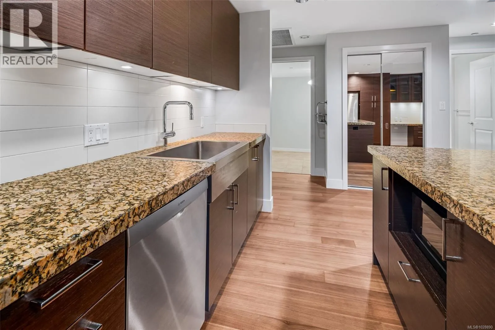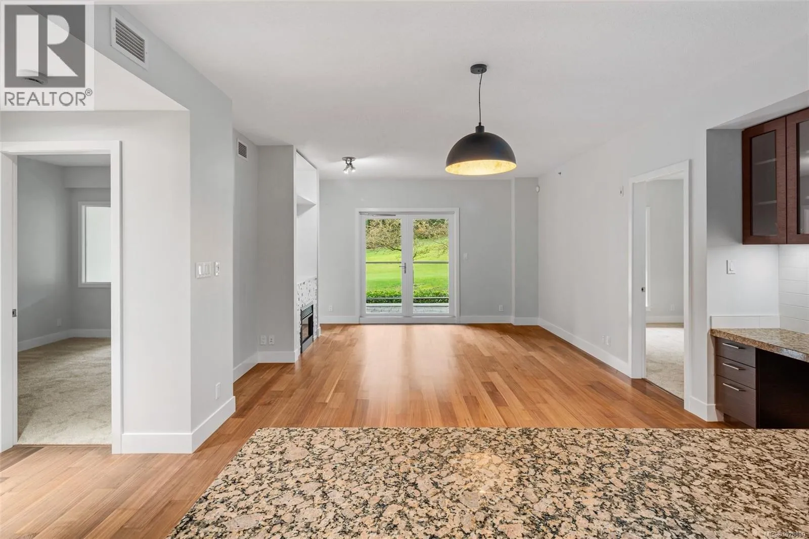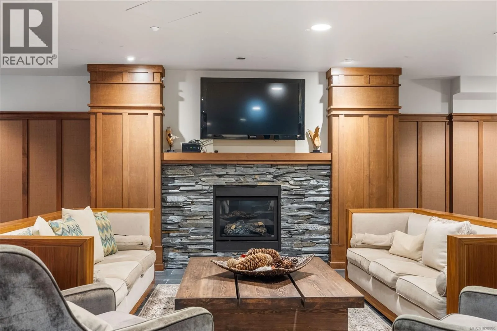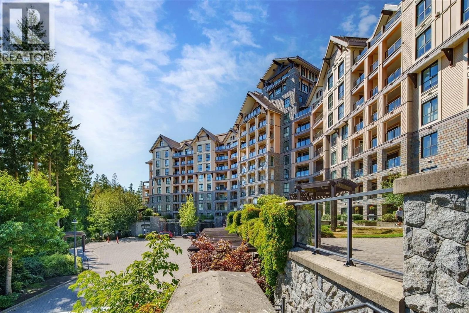 Welcome to Finlayson Reach, a beautifully updated 2bed/2bath + Den condo in the heart of Bear Mountain Resort Community. This sought-after layout offers open concept living with 9â ceilings, new flooring throughout, fresh paint, high-end SS appliances, a large island and gas range. The primary bedroom features a walk-in closet & spacious ensuite with heated floors, double sinks & a large shower. The oversized den really feels like a 3rd bedroom or office and overlooks the 1st fairway of Bear Mountain Resort's world-renowned Mountain Course. Unit includes a full-size in-suite laundry room with storage & sink, wet bar, brand-new, just-replaced high-efficiency heat pump for heating & cooling, storage locker, and one parking stall. Enjoy golf course & greenway views from your quiet covered deck, complete with a gas BBQ hookup. Building amenities include a gym, sauna, steam room, theatre, lounge & car wash. Pet-friendly, rentals OK & steps to world-class golf, dining, tennis, hiking & more. (id:27476)