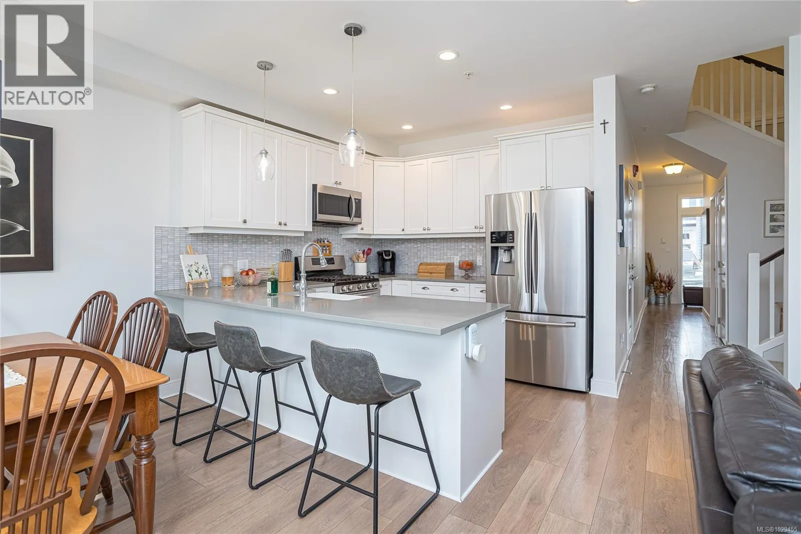 Welome to Hawthorne Townhomes on Katieâs Pond. This beautifully designed 3-level home offers over 2,000 sq ft with 3 bed, 3 bath, + flex space, & a huge family room â ideal for flexible living. Tucked away on a quiet cul-de-sac with no thru traffic, it blends privacy with style. The main floor showcases a gourmet kitchen with quartz countertops, high-gloss cabinetry, upgraded stainless steel appliances & 9' ceilings, flowing seamlessly into open dining & living spaces with access to the rear south facing deck with views to Katieâs Pond. Upstairs features 3 bedrooms inc a spacious Primary retreat with walk-in closet and ensuite, 2 good size bedrooms, one with vaulted ceilings, main bath, & laundry room. The walk-out lower level includes a family room and bonus/den/storage space or possibly 4th bed â perfect for guests or... â plus access to a fenced backyard backing onto Katieâs Pond and scenic trails. Single garage + driveway parking for two. Shows like new! Come see for yourself. (id:27476)