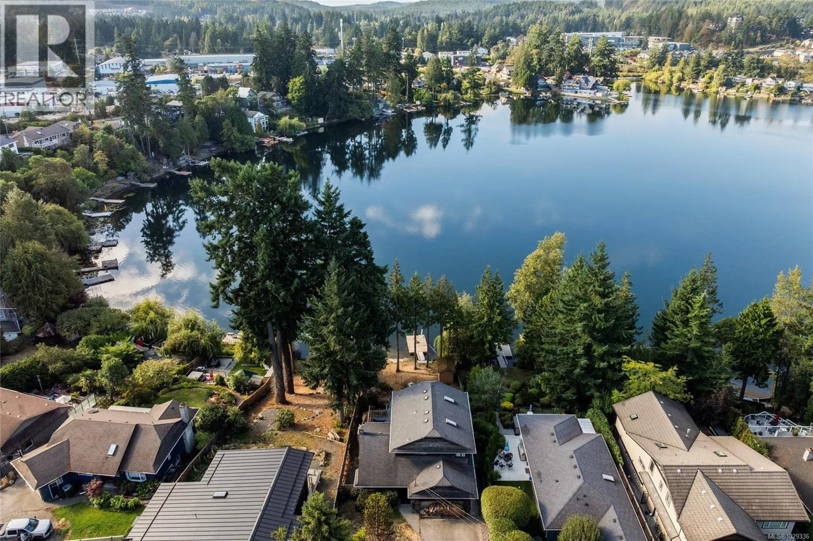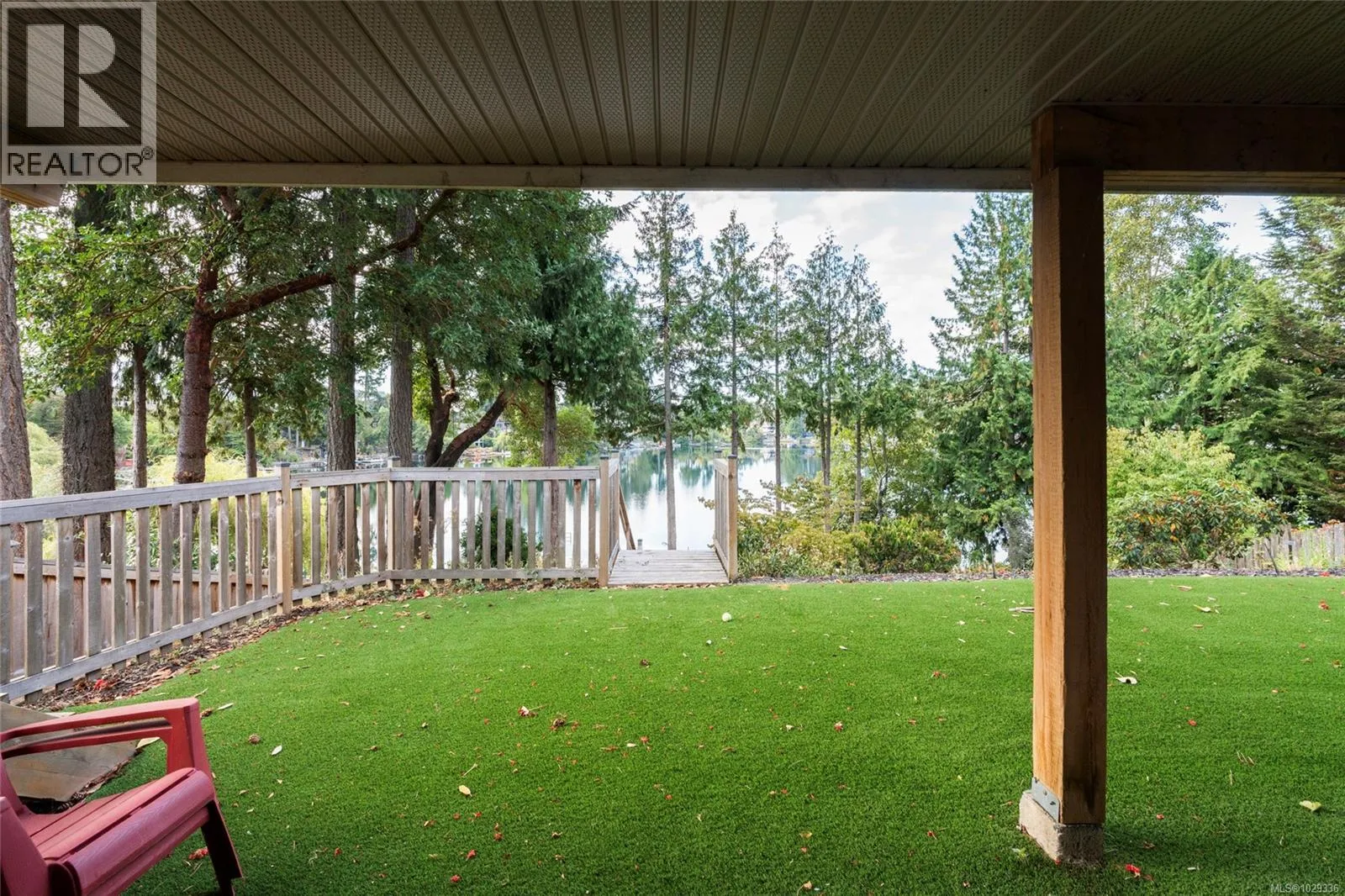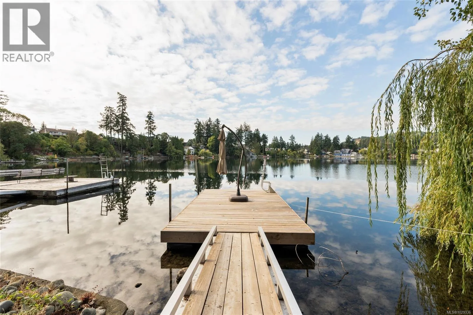 Escape to the lake with this rare opportunity. Nestled on the coveted side of Langford Lake w/ south-facing exposure at the end of a quiet cul-de-sac, this exceptional 5BED,3BATH home(including 2ED suite)offers 3,367 sqft of living space on an 11,630 sqft lot. Enjoy direct water access from the landscaped, 3-tiered backyardâcomplete w/irrigation, storage cabana for your water toys & private, updated dock where you can swim, paddle, or take in breathtaking sunsets. Inside, the main level features a cozy living room w/wood-burning fireplace, a bright kitchen w SS appliances, ample counter space & cabinetry & eating area that opens to patio w/ seamless glass railingsâperfect for morning coffee. Retreat to the spacious upper-level primary suite (427 sqft) w/walk-in closet, sitting area, private balcony & ensuite bathroom. Two additional bedrooms, a flexible rec room complete the home, while the spacious 2BED suite w/shared laundry provides flexibility for extended family or rental income. (id:27476)