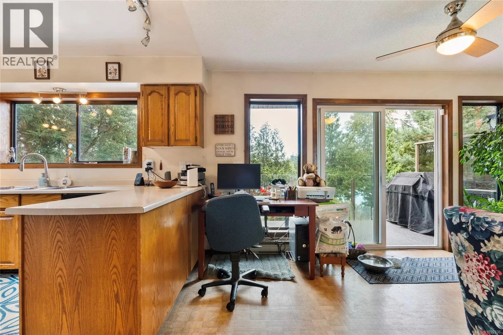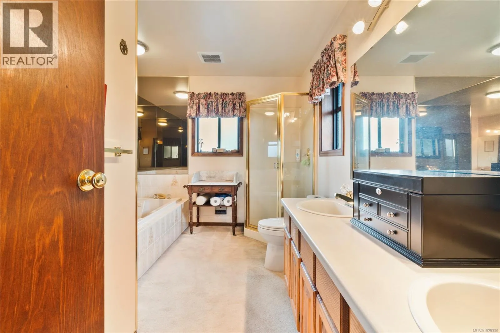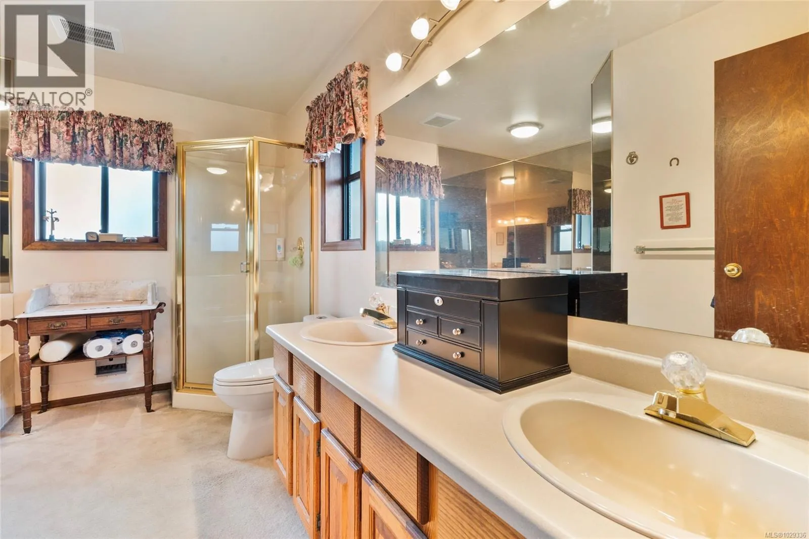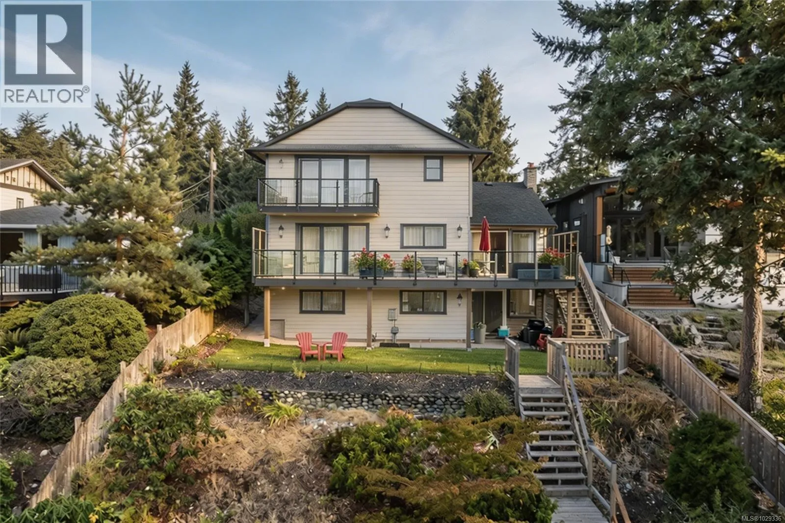 Escape to the lake with this rare opportunity. Nestled on the coveted side of Langford Lake w/ south-facing exposure at the end of a quiet cul-de-sac, this exceptional 5BED,3BATH home(including 2ED suite)offers 3,367 sqft of living space on an 11,630 sqft lot. Enjoy direct water access from the landscaped, 3-tiered backyardâcomplete w/irrigation, storage cabana for your water toys & private, updated dock where you can swim, paddle, or take in breathtaking sunsets. Inside, the main level features a cozy living room w/wood-burning fireplace, a bright kitchen w SS appliances, ample counter space & cabinetry & eating area that opens to patio w/ seamless glass railingsâperfect for morning coffee. Retreat to the spacious upper-level primary suite (427 sqft) w/walk-in closet, sitting area, private balcony & ensuite bathroom. Two additional bedrooms, a flexible rec room complete the home, while the spacious 2BED suite w/shared laundry provides flexibility for extended family or rental income. (id:27476)